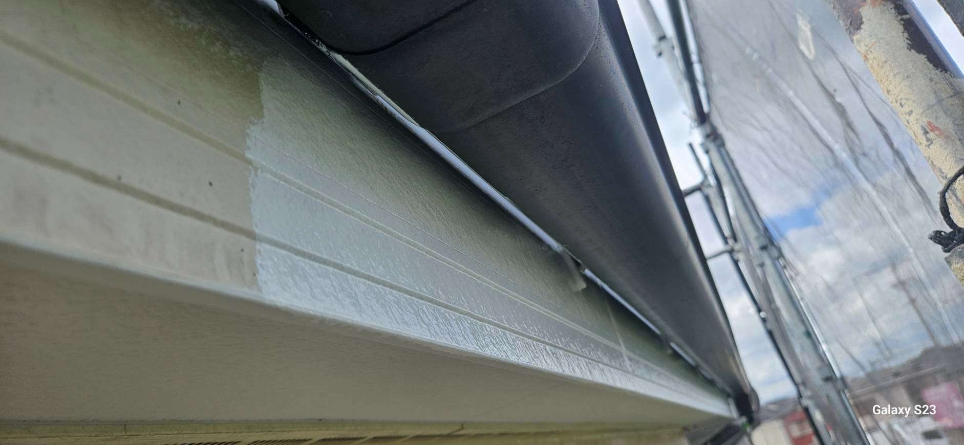 破風板・鼻隠し板上塗り1回目塗装作業