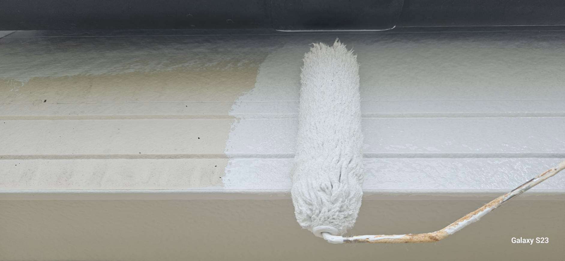 破風板・鼻隠し板上塗り2回目塗装作業