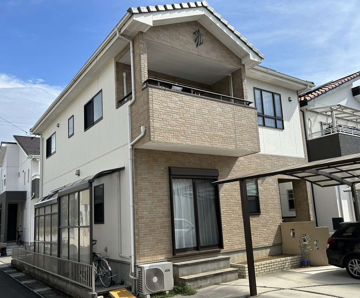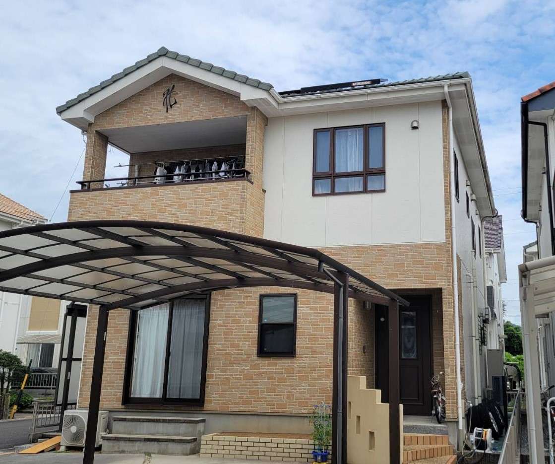 名古屋市名東区 K様邸 外壁塗り替え工事 洗浄作業が終わり、今日は養生作業です! 洗浄作...