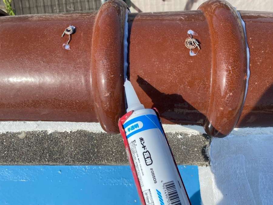 千種区、T様邸の昨日の作業内容は、昨日に続き屋根漆喰作業の瓦止めシーリング作業と
