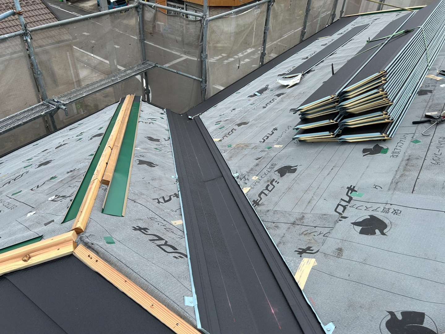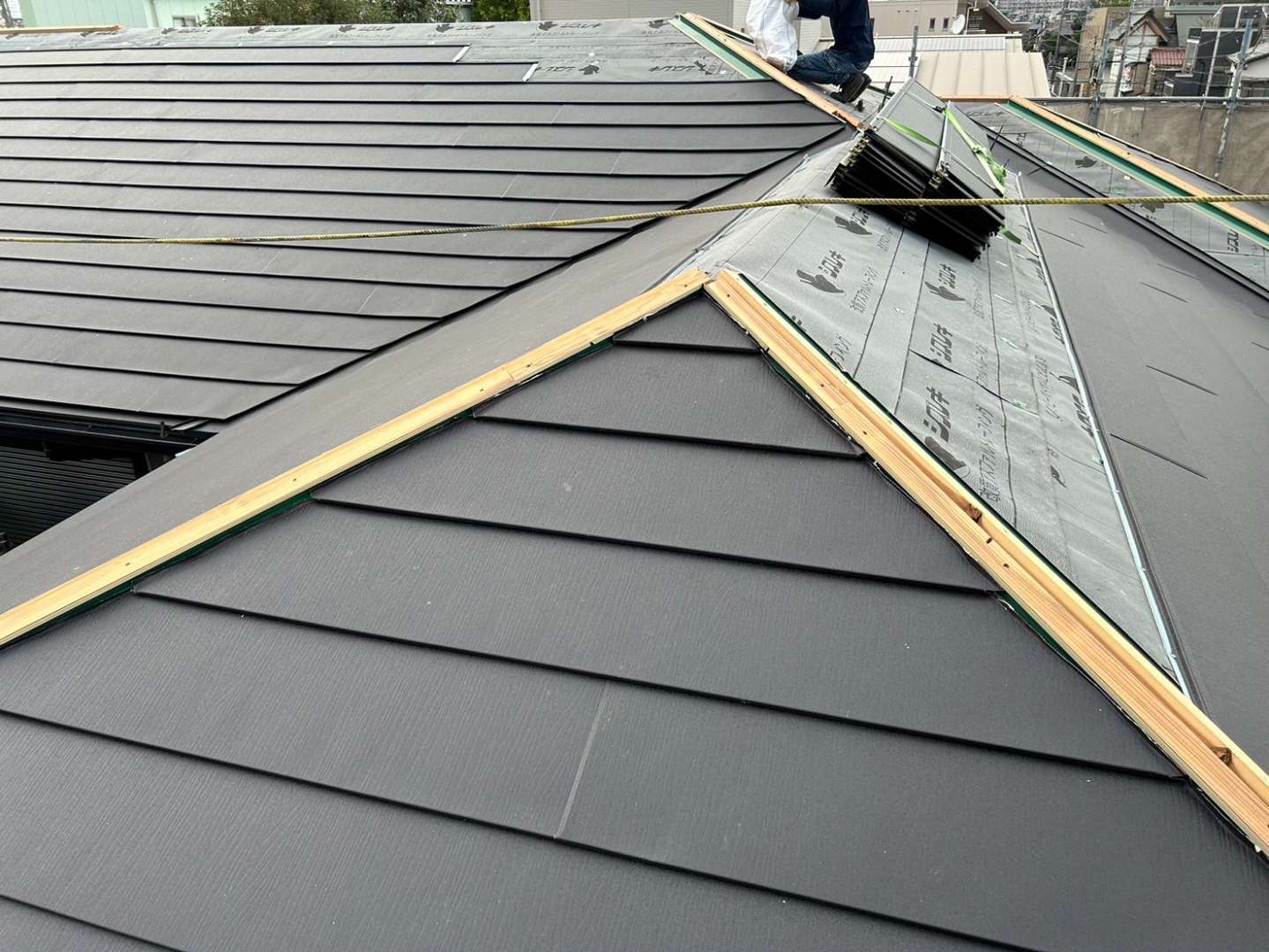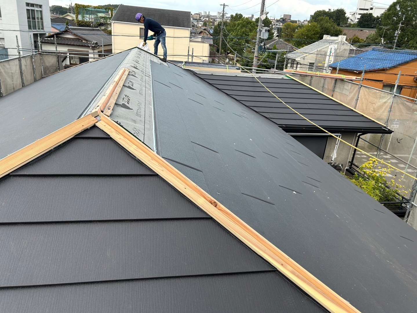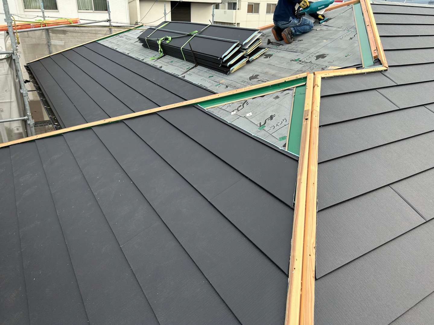 千種区のT様邸の昨日の作業内容は、屋根カバー工法の屋根貼り替え作業を行っていました。