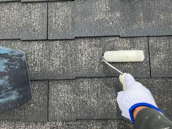 名古屋市瑞穂区のY様邸の昨日の作業内容は、外壁の浮き補修作業・養生作業・屋根の下塗り塗装作業を行っていました。