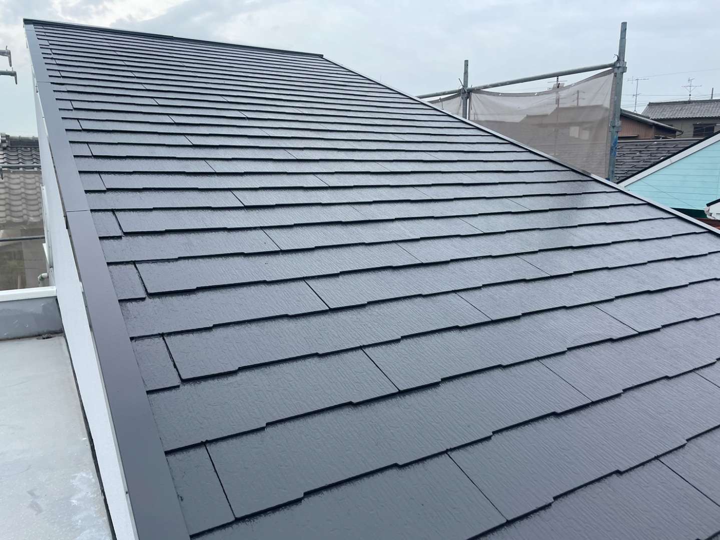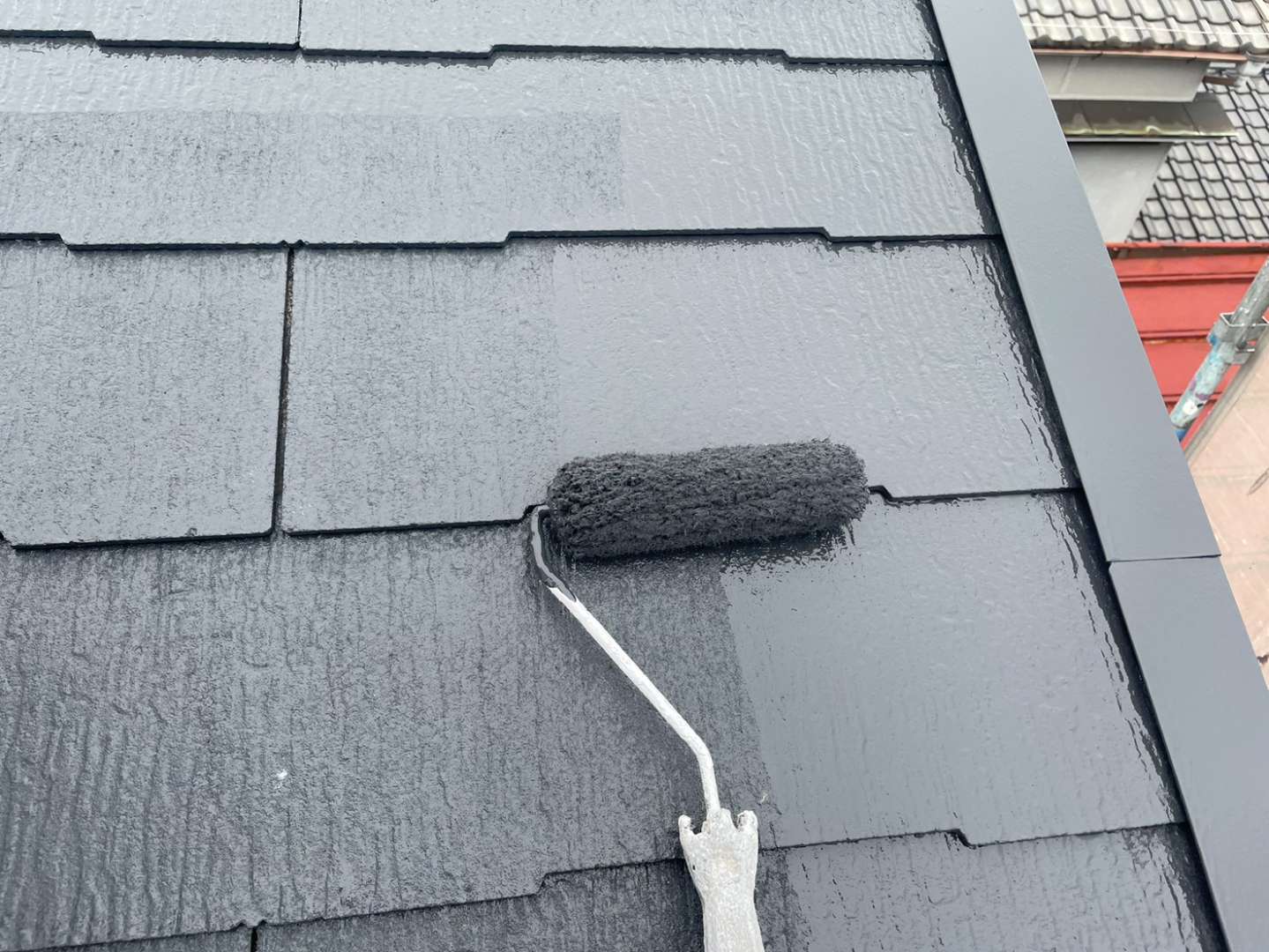 瑞穂区Y様邸の昨日の作業内容は、外壁の上塗り塗装、屋根上塗り塗装作業を行っています。
