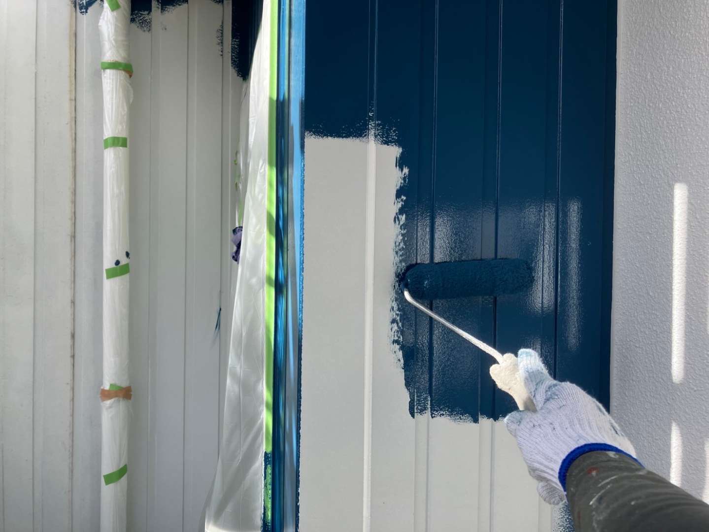瑞穂区、Y様邸の昨日の作業内容は、色替え部の中塗り・上塗り塗装作業でした。