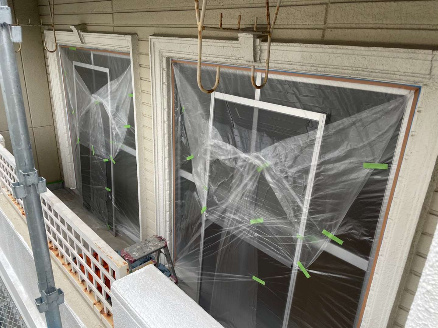 今日も引き続き、ベランダ面他2面の下塗り塗装作業予定です。