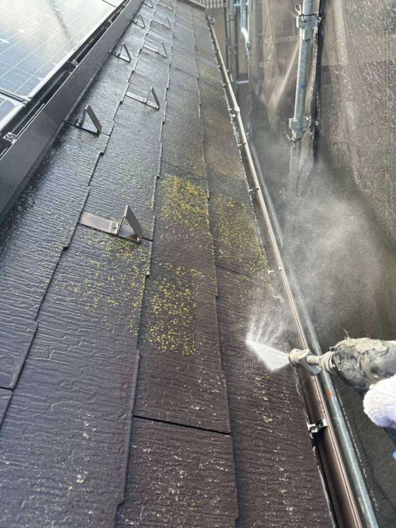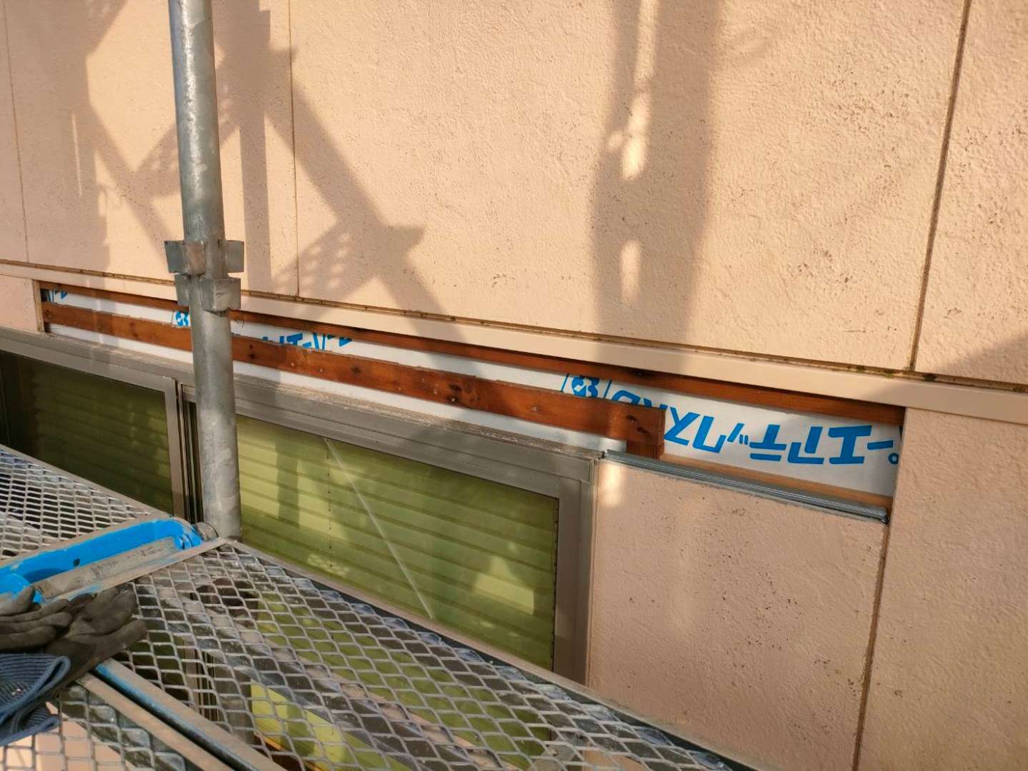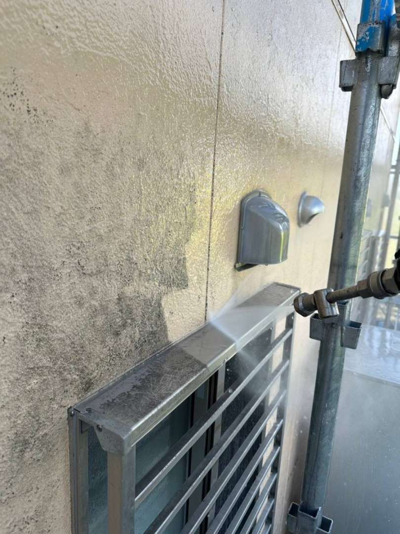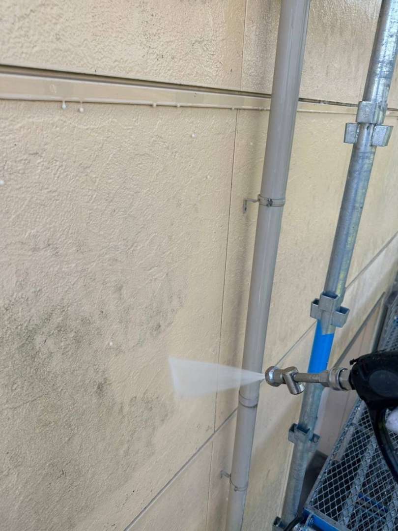 昨日の作業で、足場組立・洗浄・外壁の補修作業まで完了しています。