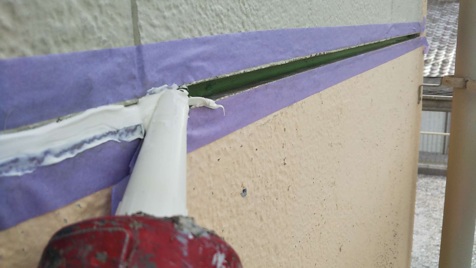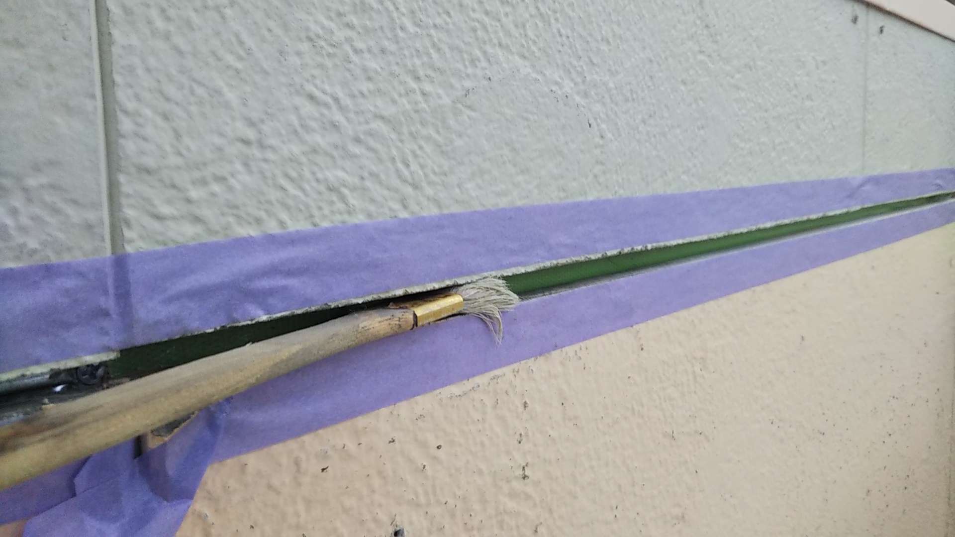 大垣市のN様邸の昨日の作業内容は、外壁の補修作業の割れ・亀裂部のコーキング作業を行っていました。