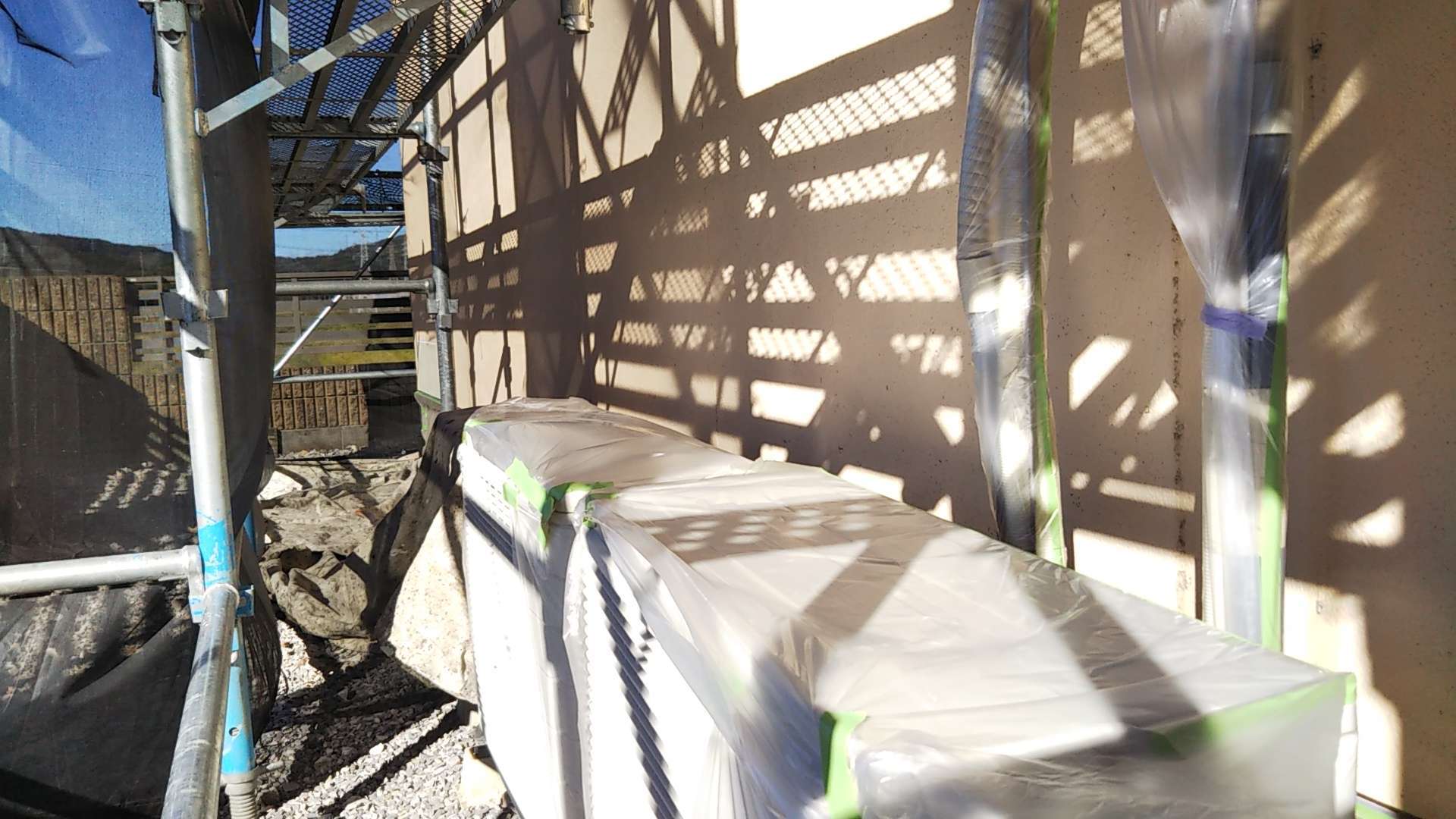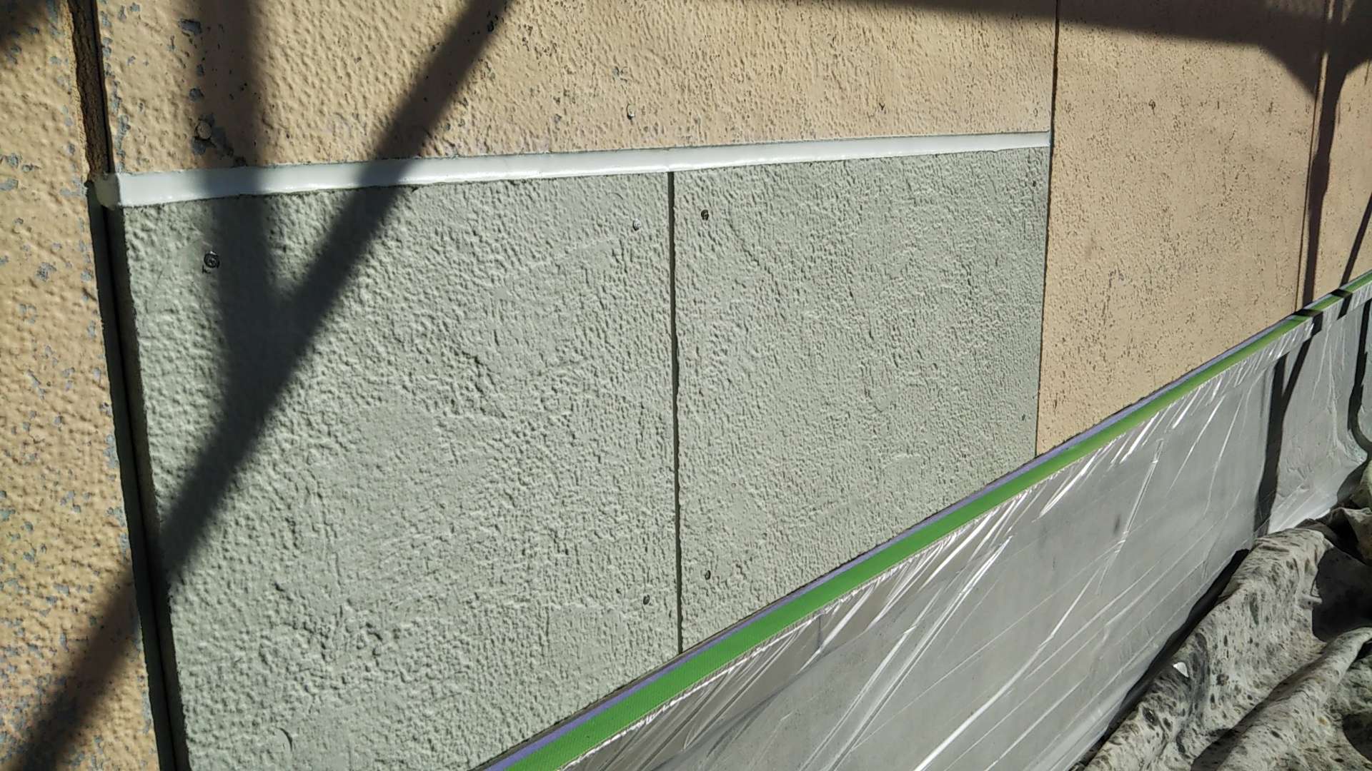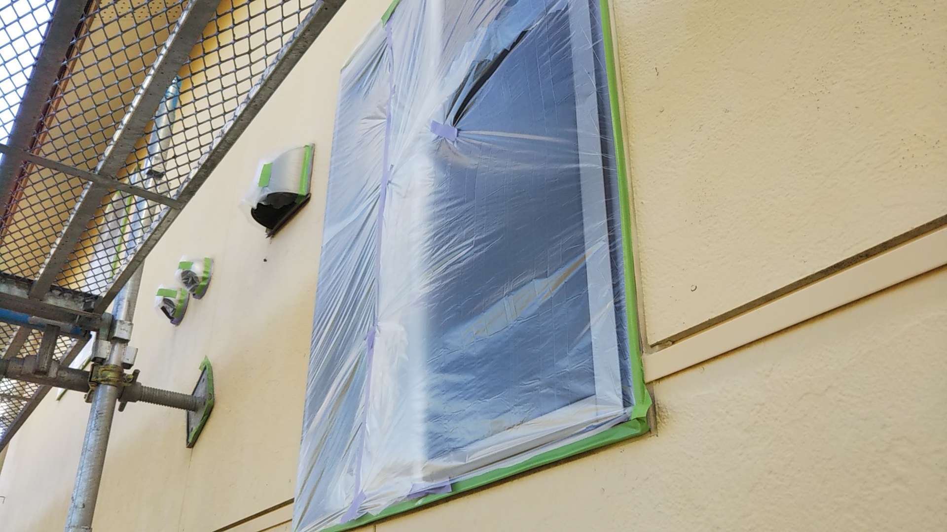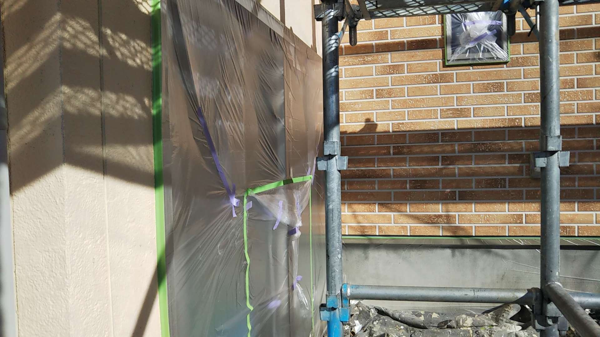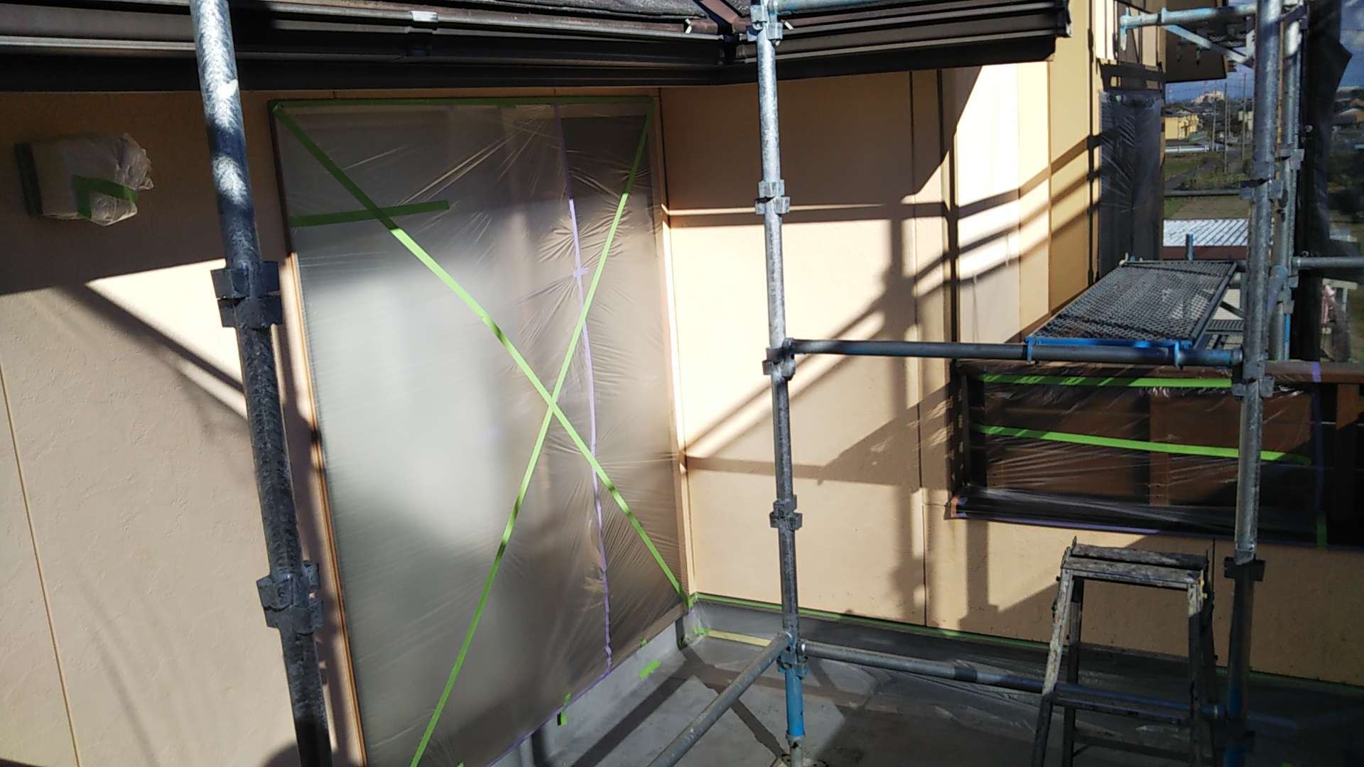 岐阜県大垣市のN様邸の昨日の作業内容は、養生作業・外壁の下塗り塗装を行っていました。