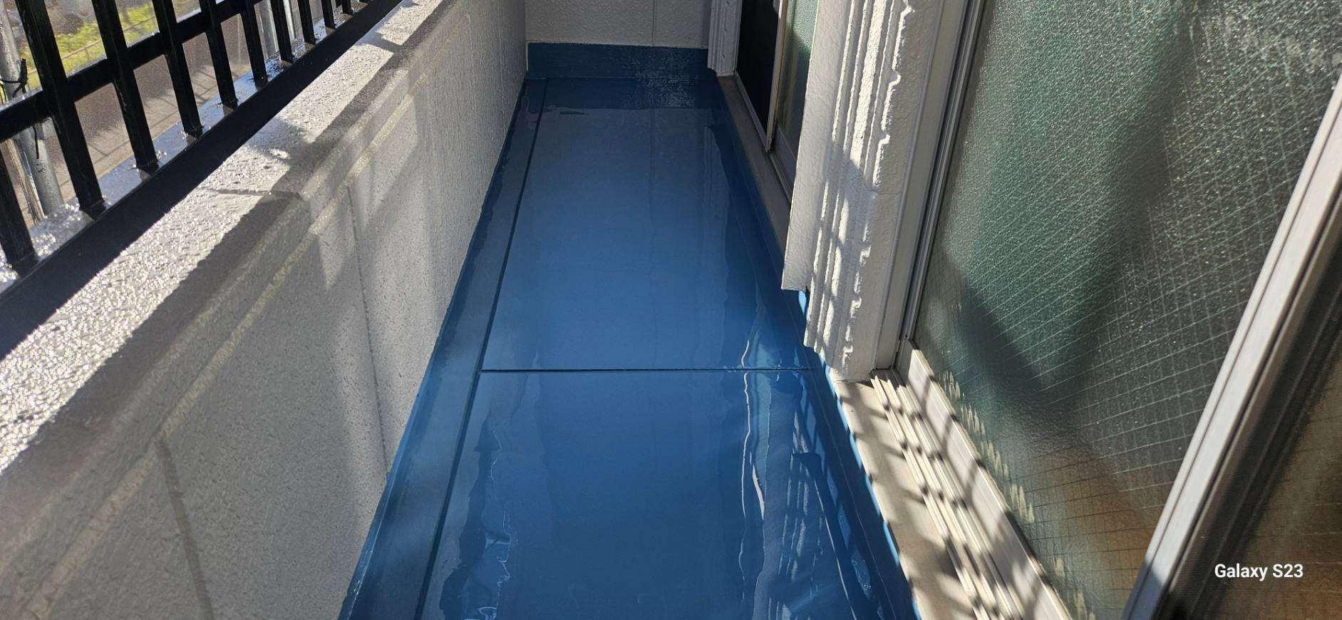 名古屋市名東区のAマンション様の昨日までの作業内容は、ベランダ防水作業の立上り部ウレタン樹脂2層目塗装・平場部ウレタン樹脂2層目塗装とフェンス上劣化部のコーキング、パテ補修作業を行っていました。