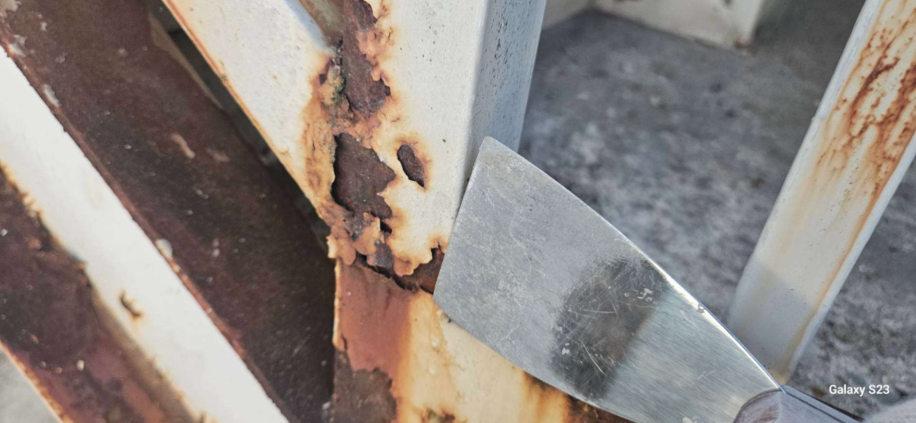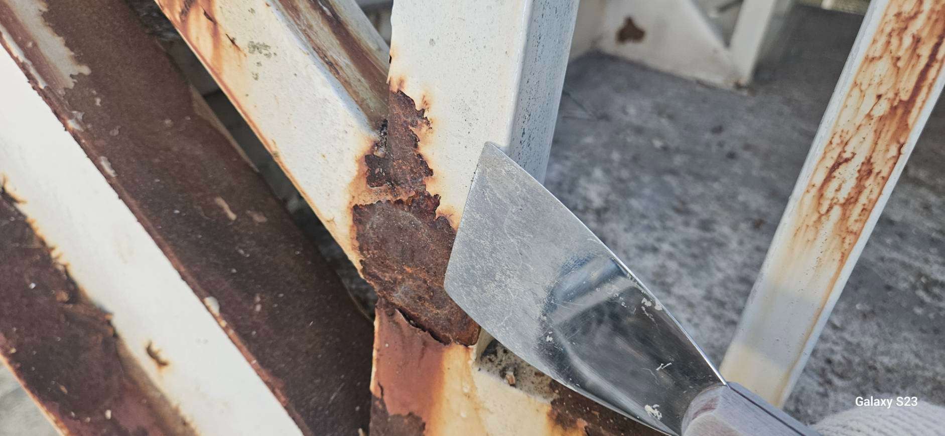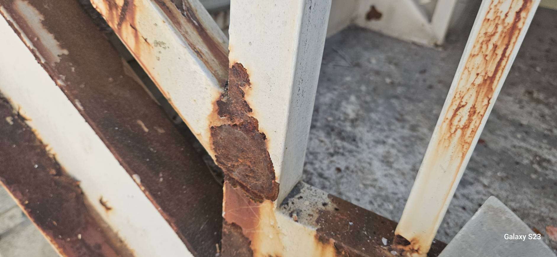 今日の作業は、引き続き鉄部階段部のケレン作業予定です。