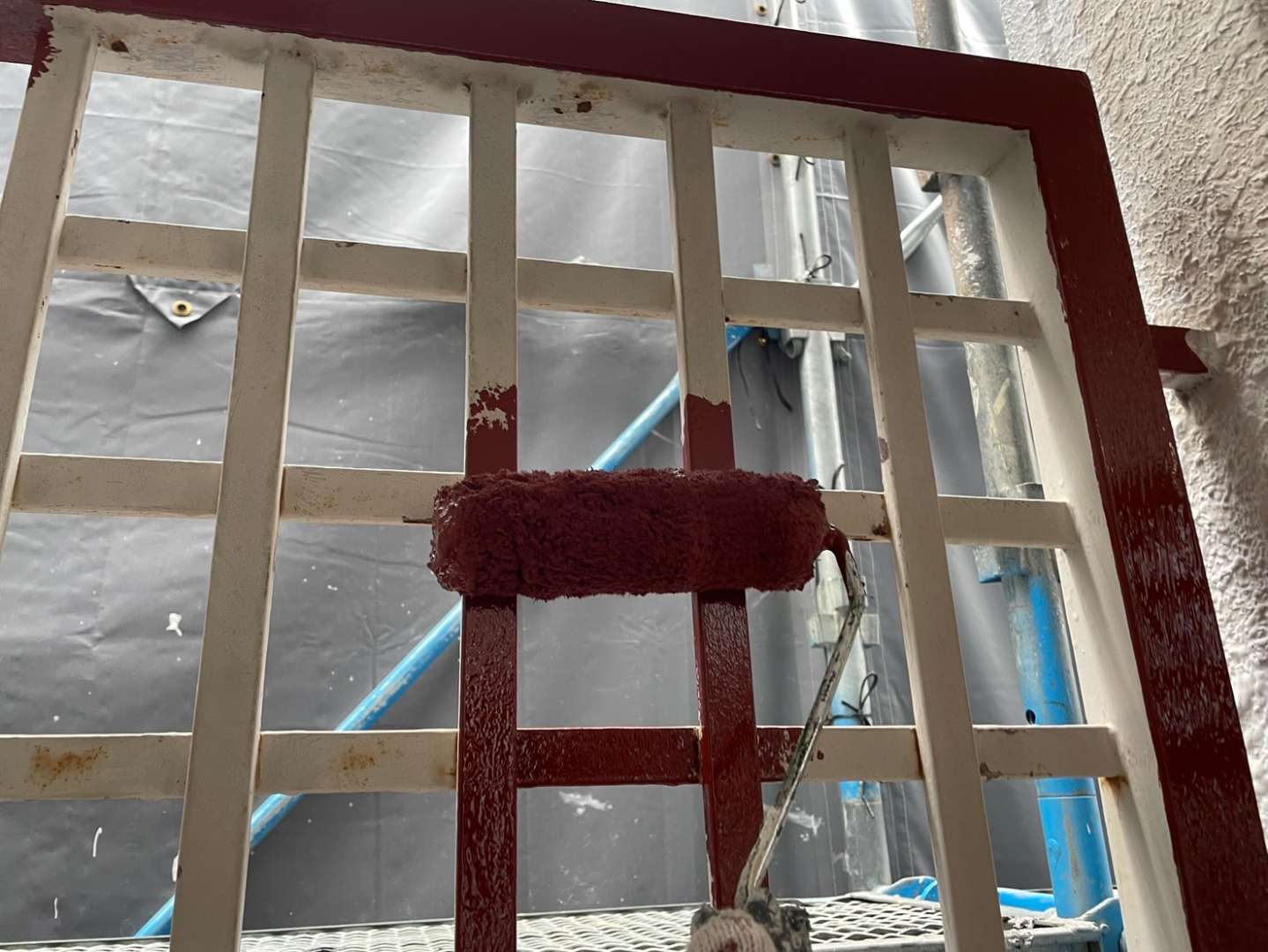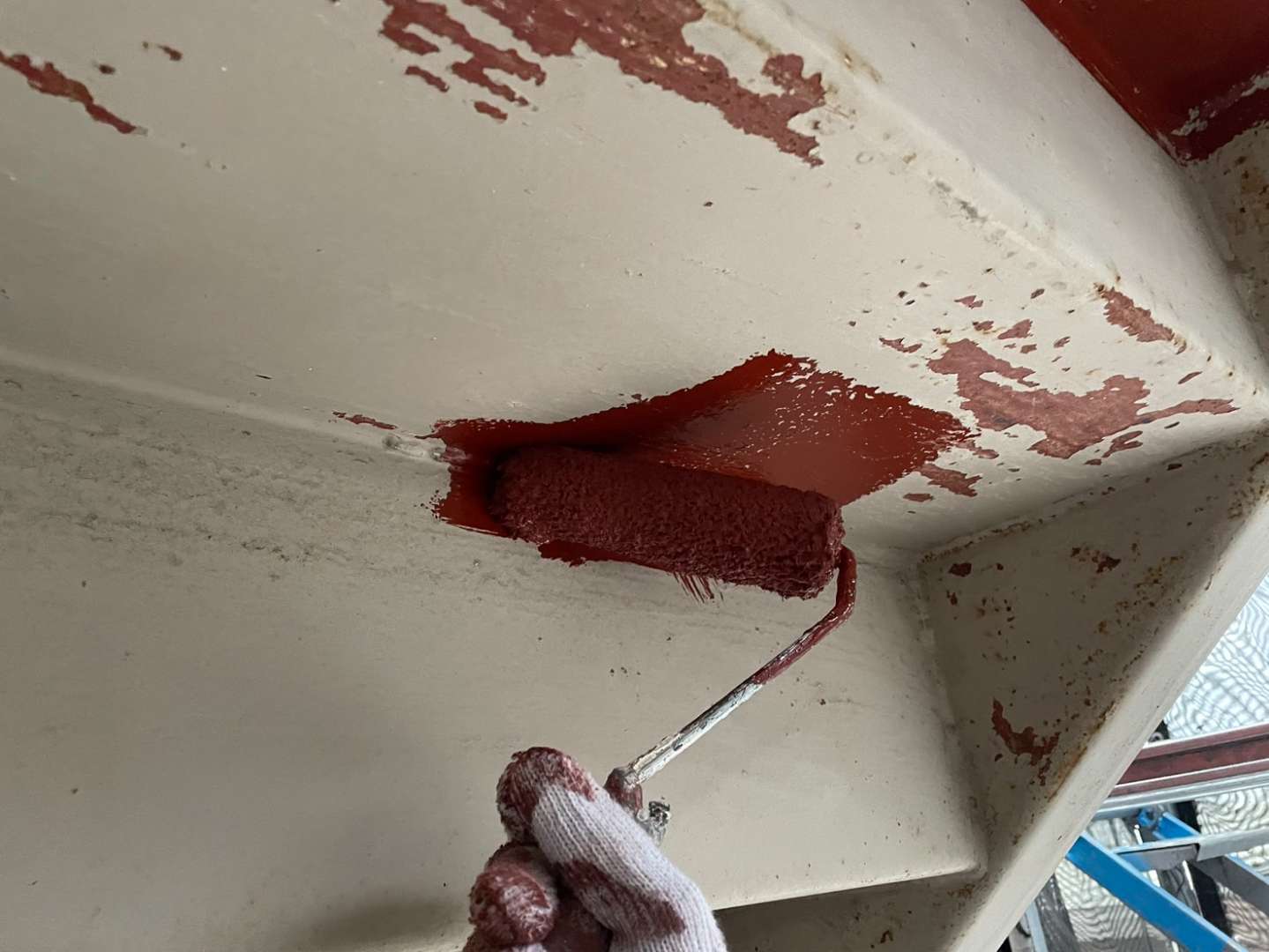 ケレン・錆止め塗装作業と北面の下塗り塗装作業を行っていました。