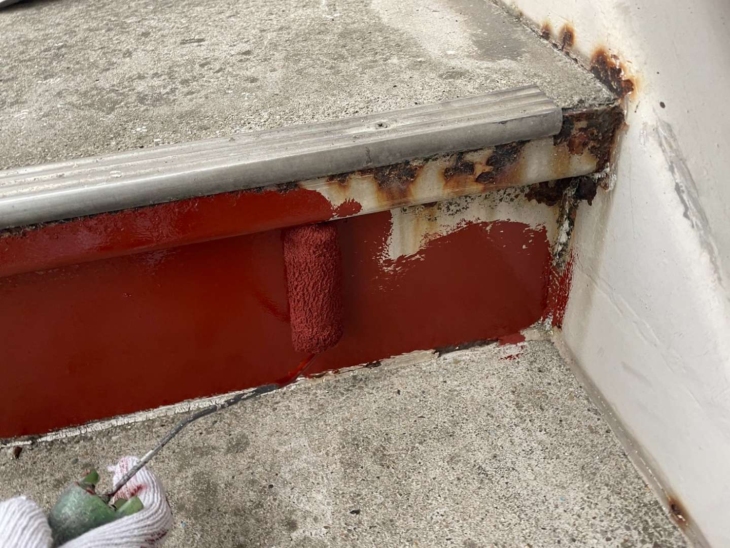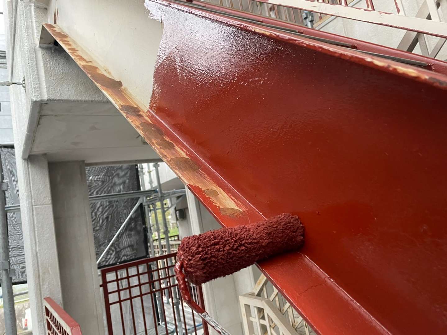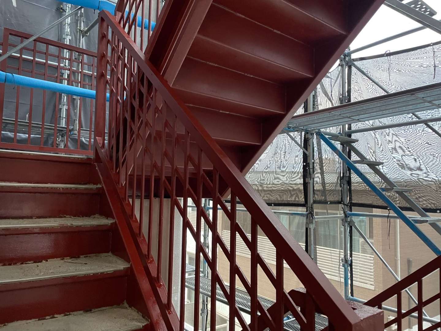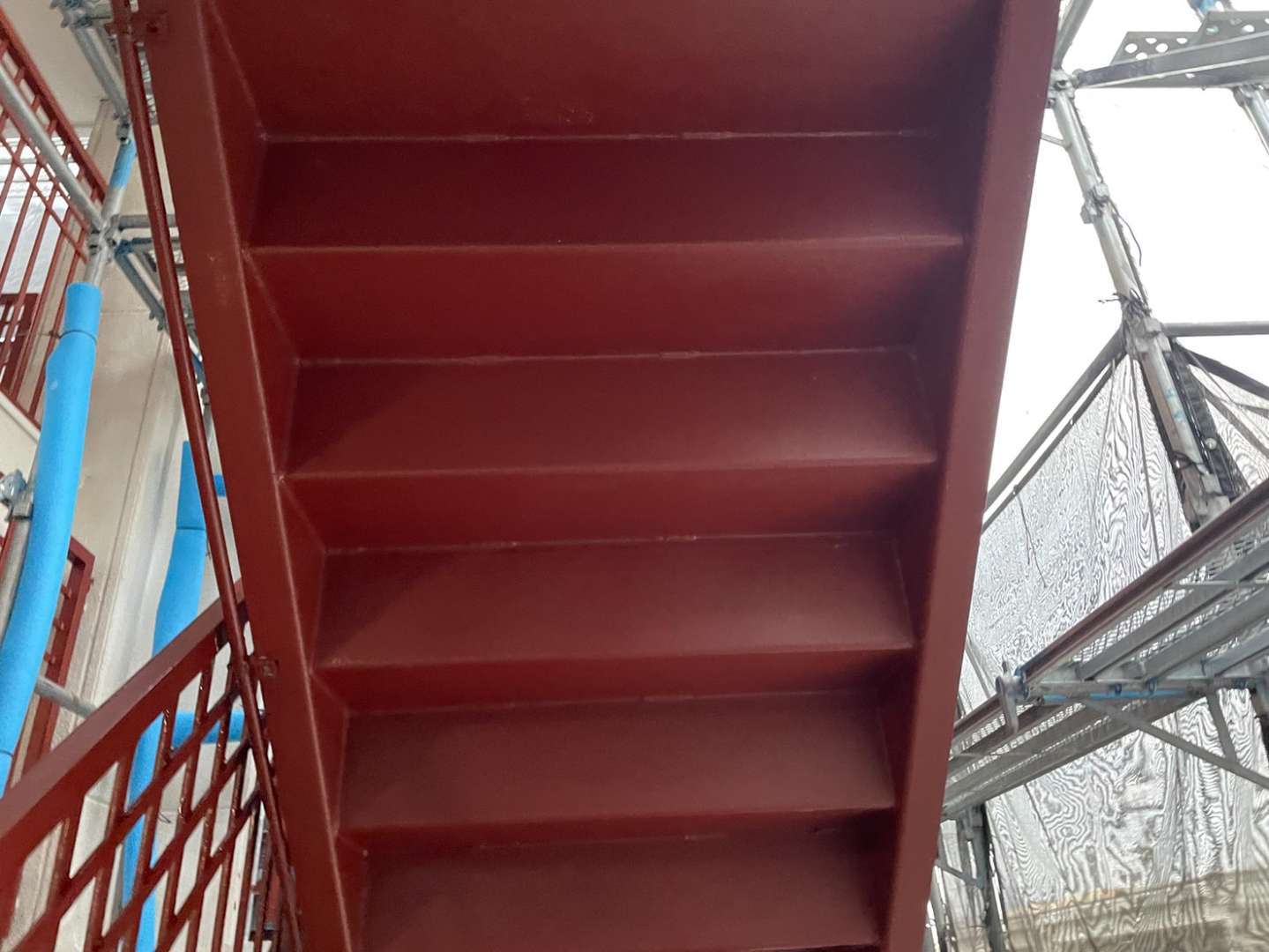 名古屋市名東区のAマンション様の昨日の作業内容は、鉄部階段手摺り塗装作業の