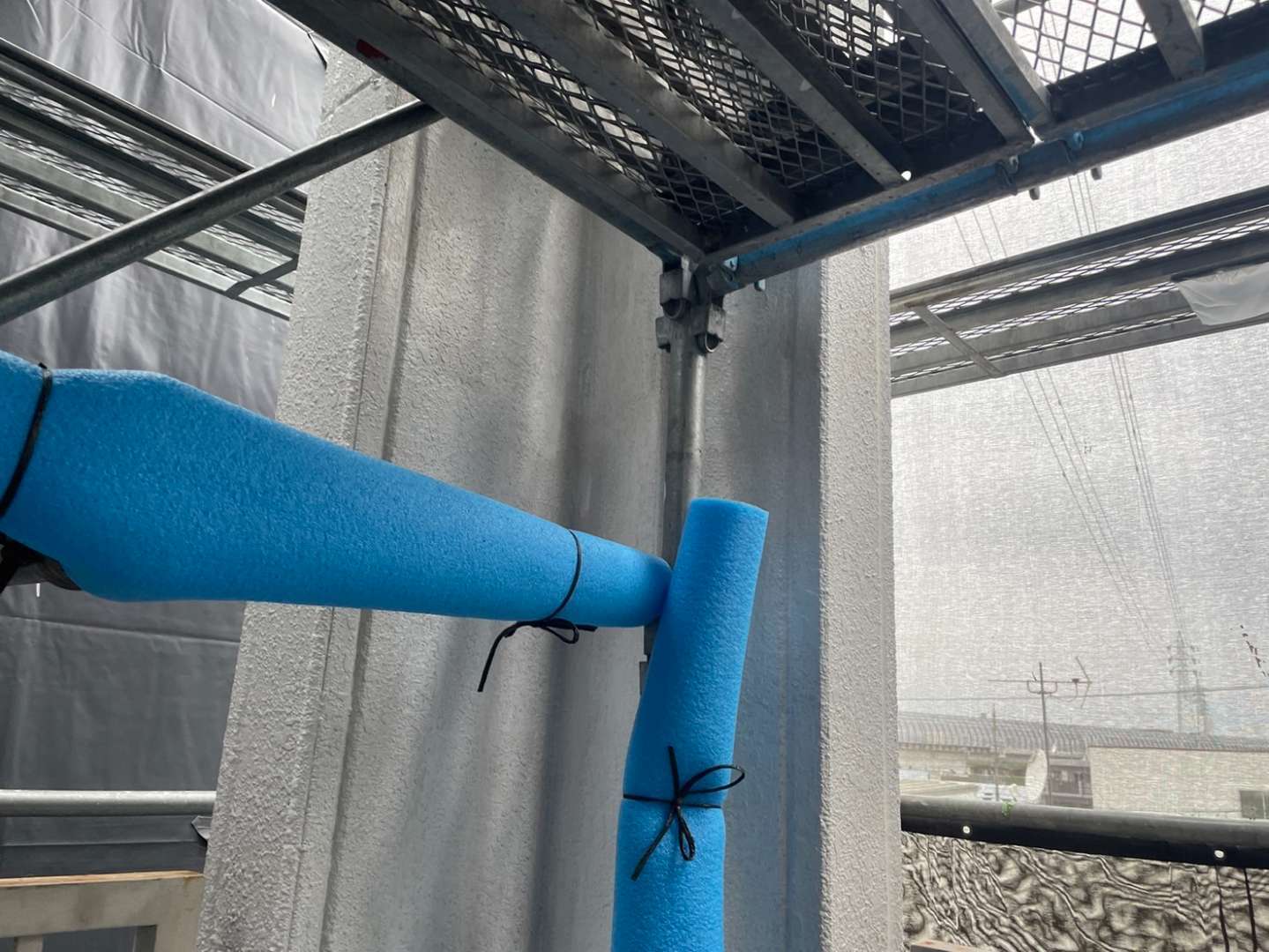 今日の作業は、鉄部階段・手摺りの塗装作業と北面の塗装作業予定です。