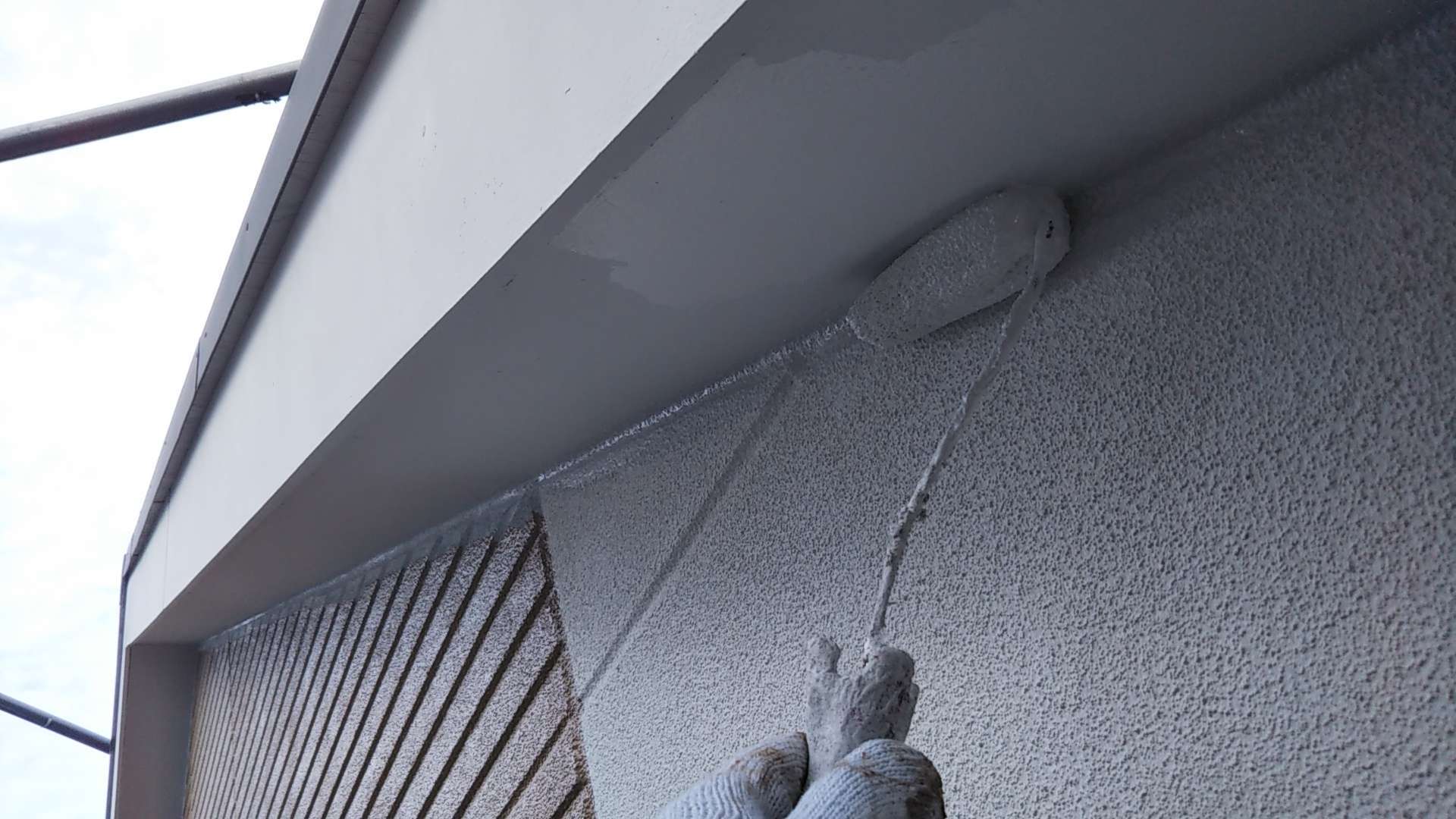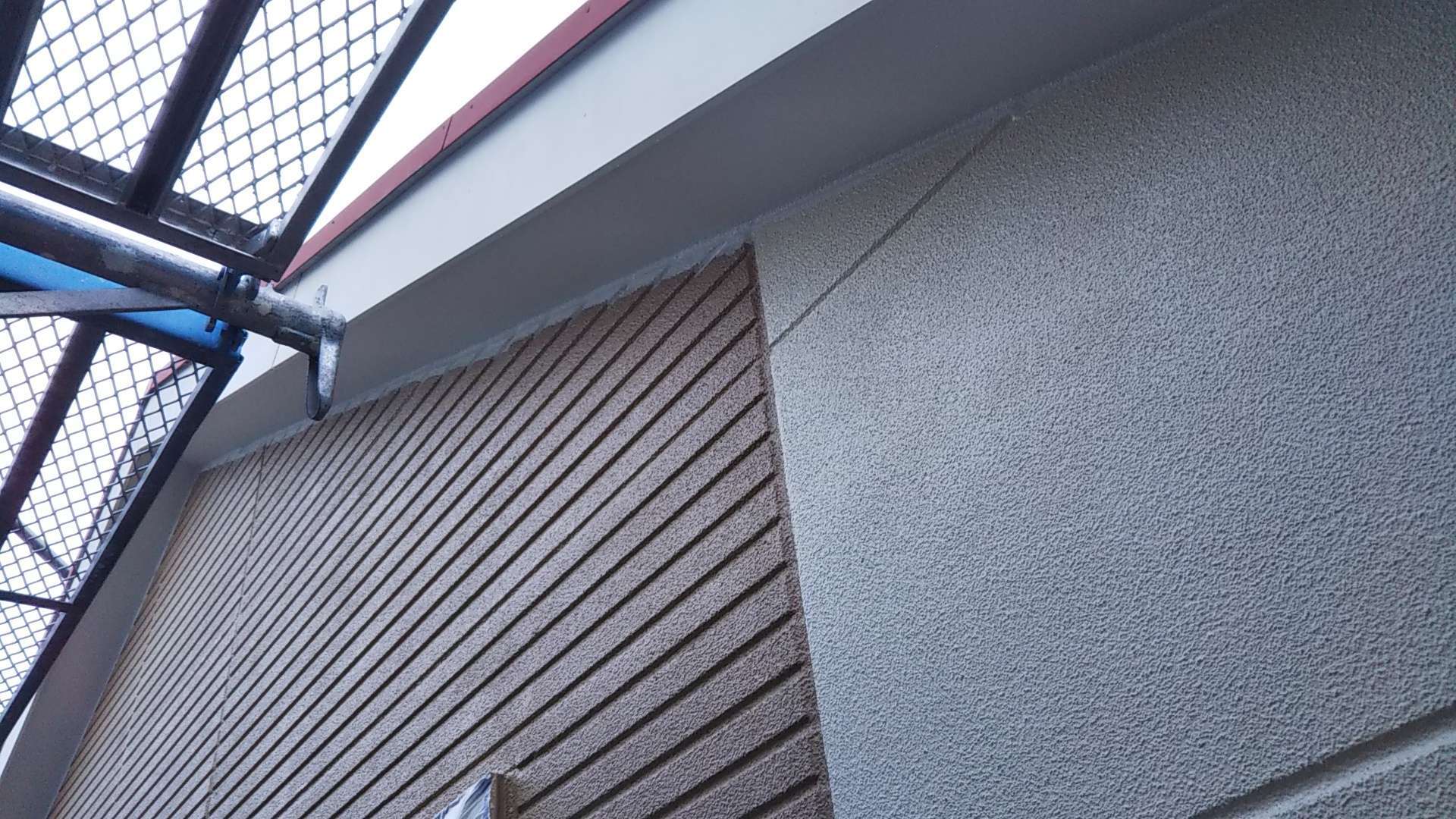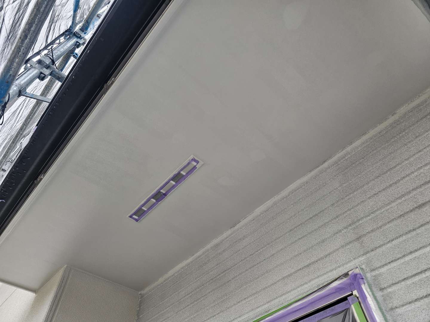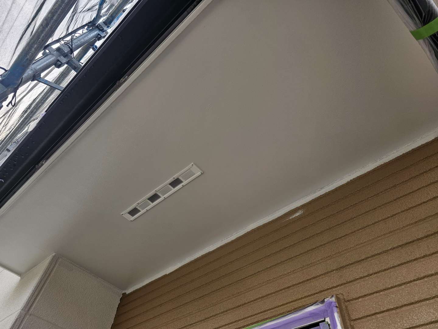 名古屋市北区M様邸の昨日の作業内容は、軒天1回目、2回目塗装作業、外壁の中塗り塗装作業を行っています。