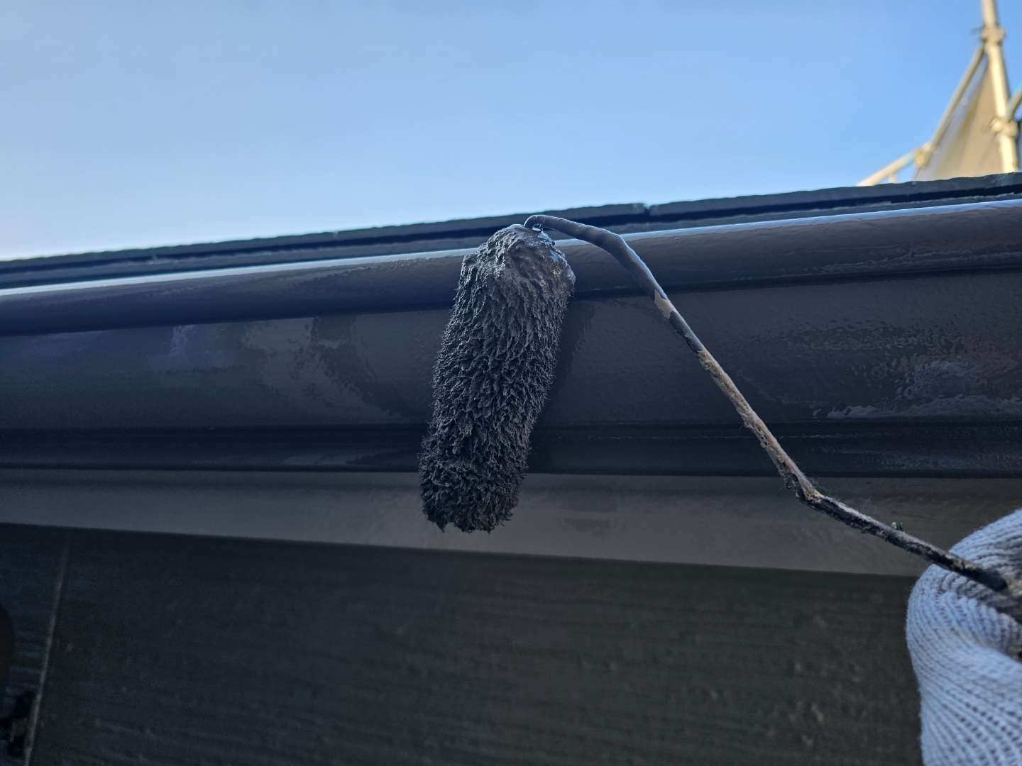 雨樋上塗り2回目塗装作業
