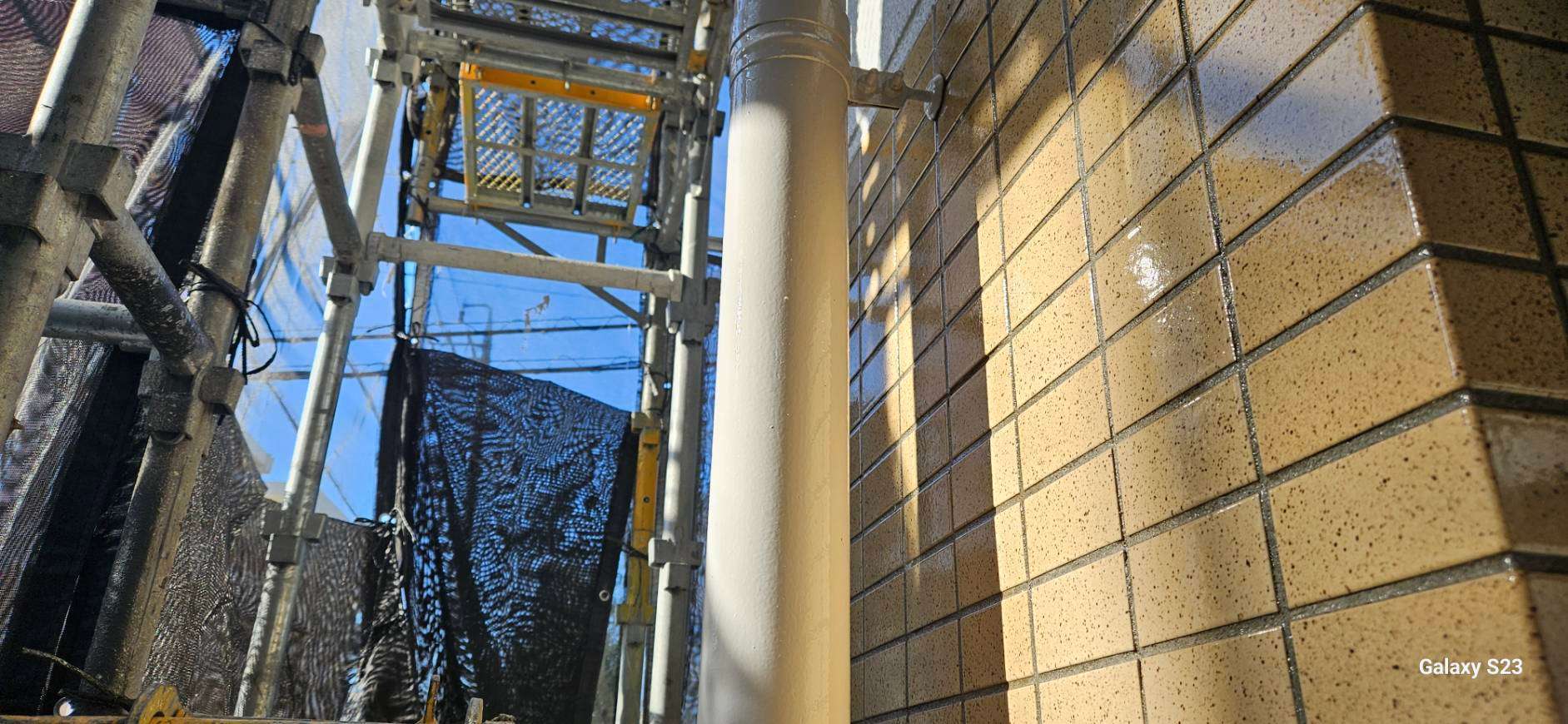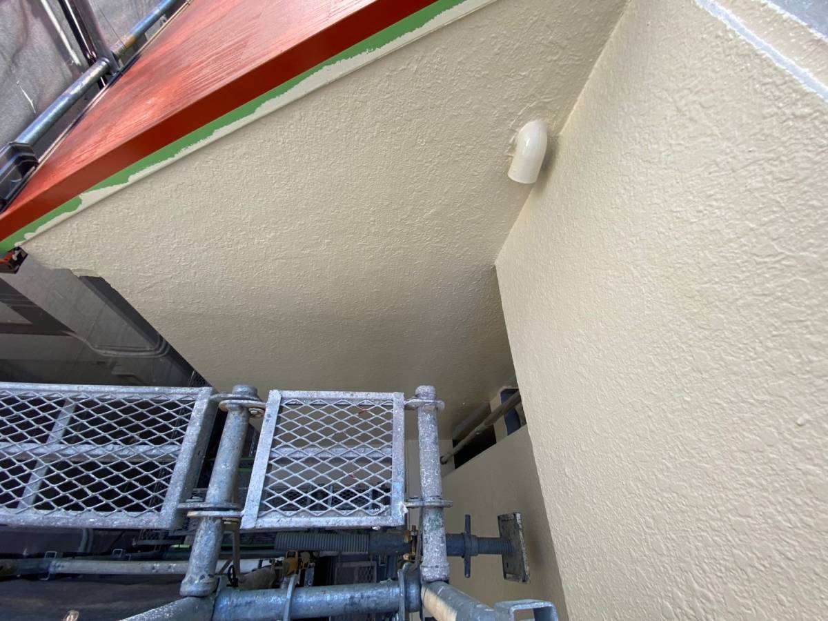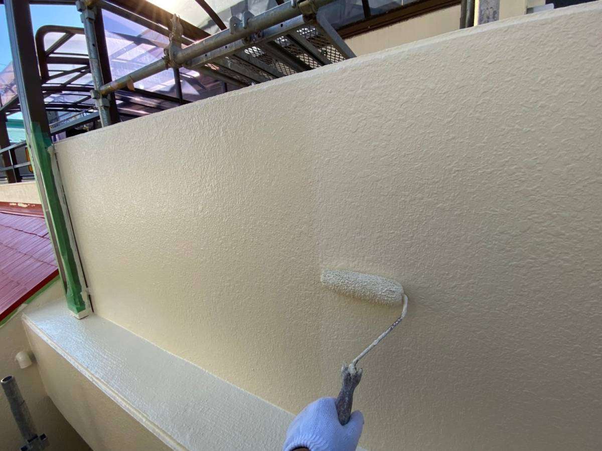 名古屋市名東区のYマンション様の昨日の作業内容は、南西面の付帯部上塗り1回目・2回目塗装・屋根の上塗り塗装・東面の外壁中塗り、上塗り塗装・手摺りの補修作業を行っていました。