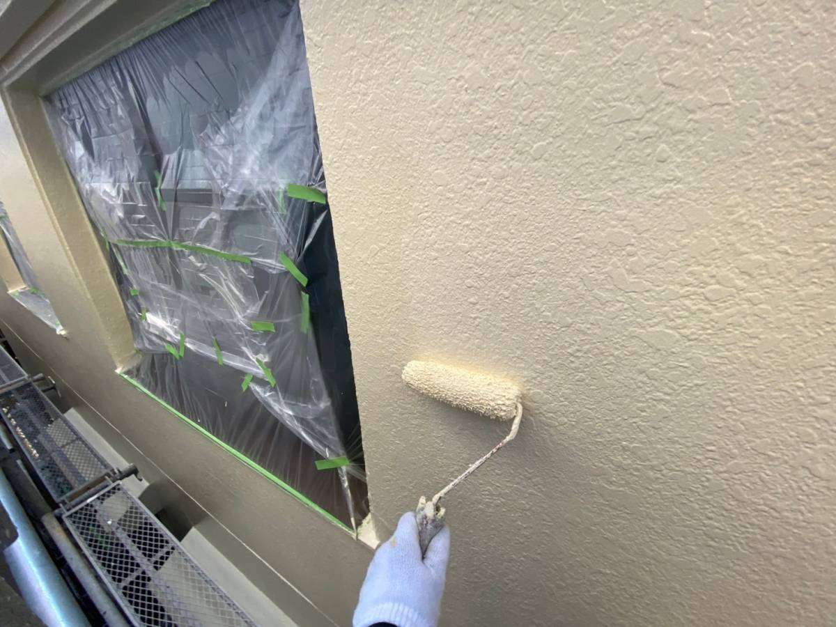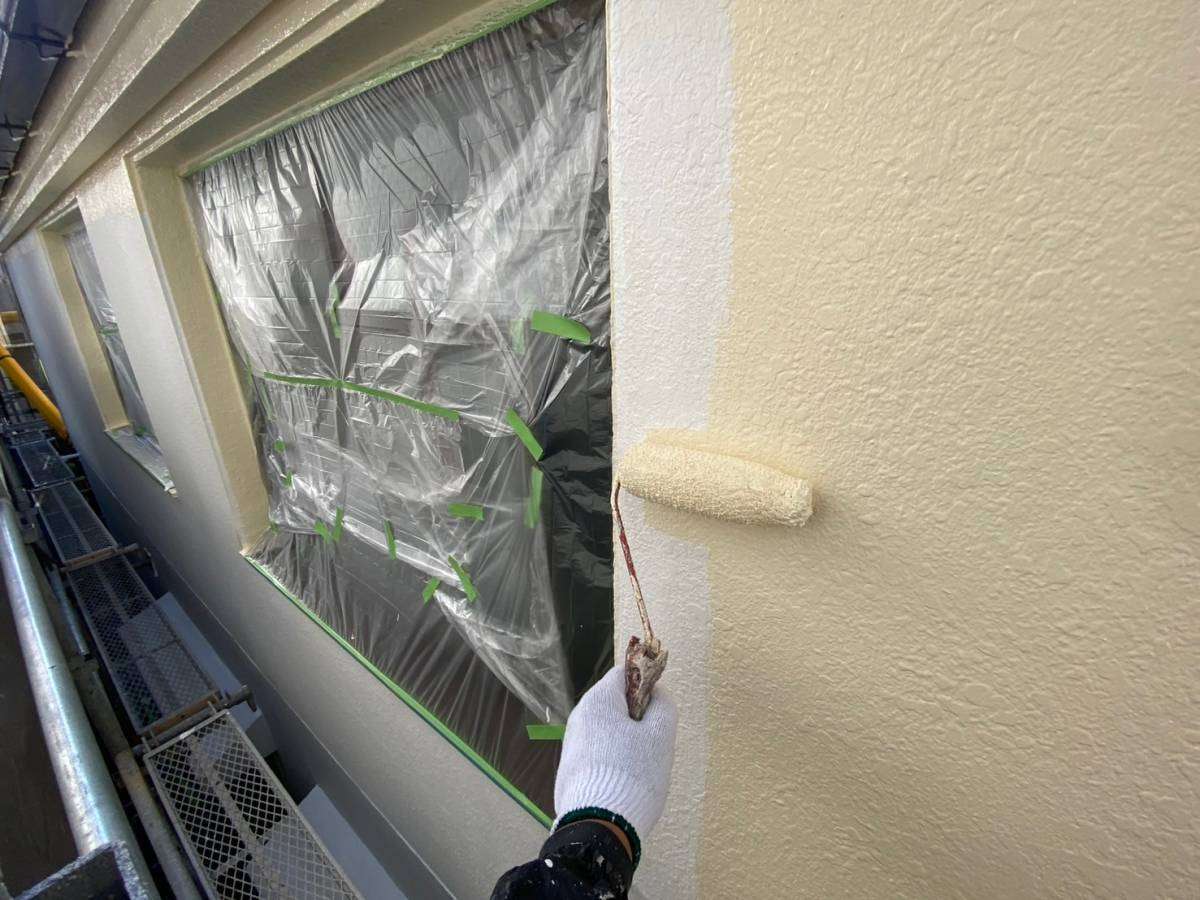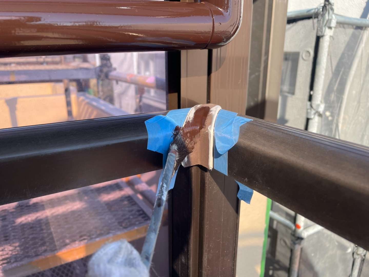 名古屋市名東区のYマンション様の昨日の作業内容は、南西面の付帯部上塗り1回目・2回目塗装・屋根の上塗り塗装・東面の外壁中塗り、上塗り塗装・手摺りの補修作業を行っていました。