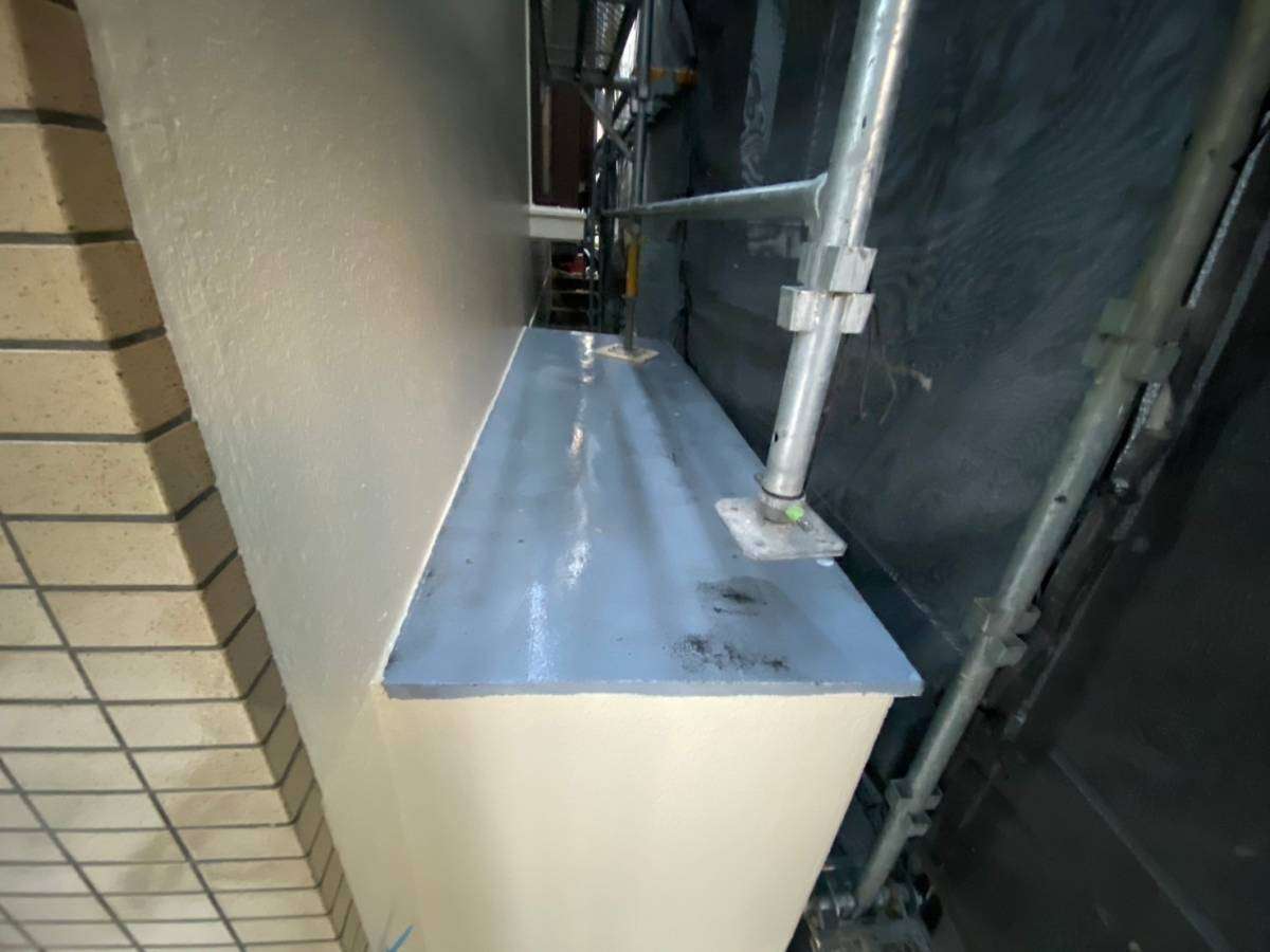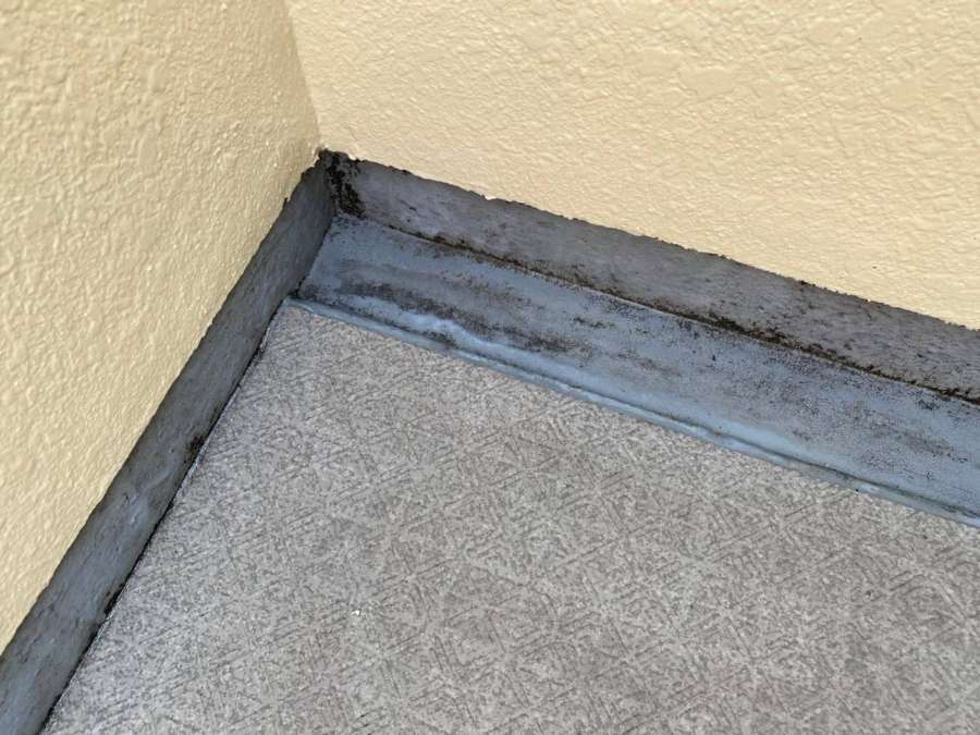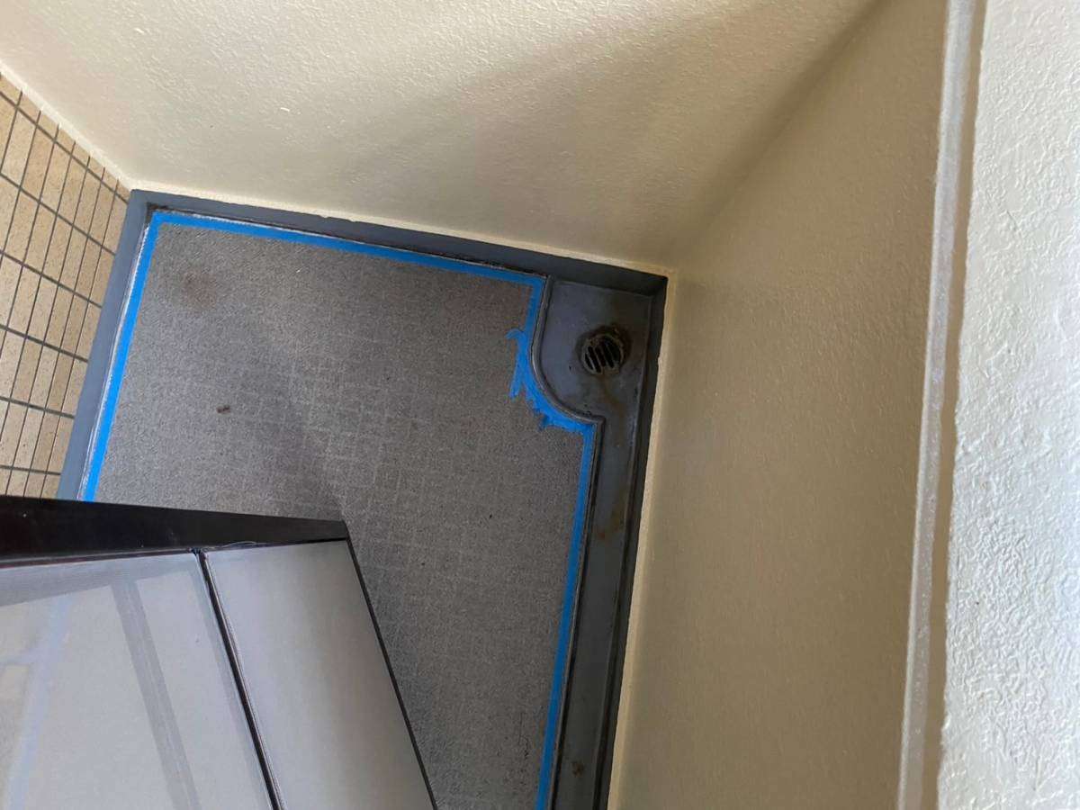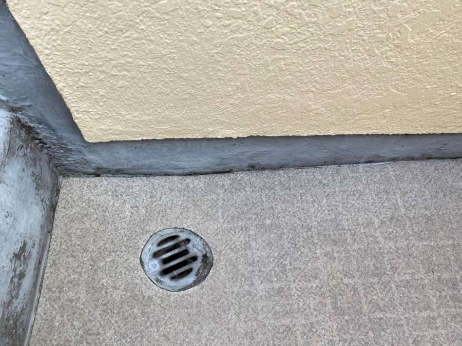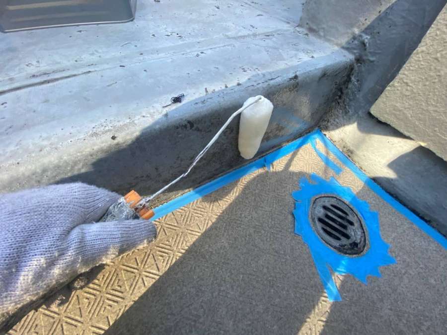 名古屋市名東区、Yマンション様の昨日の作業内容は、前日に続きコーキング(シーリング)作業の旧シーリング材撤去・ベランダの立ち上がり部、側溝部・床のトップコート塗装作業でプライマー塗装を行っていました。