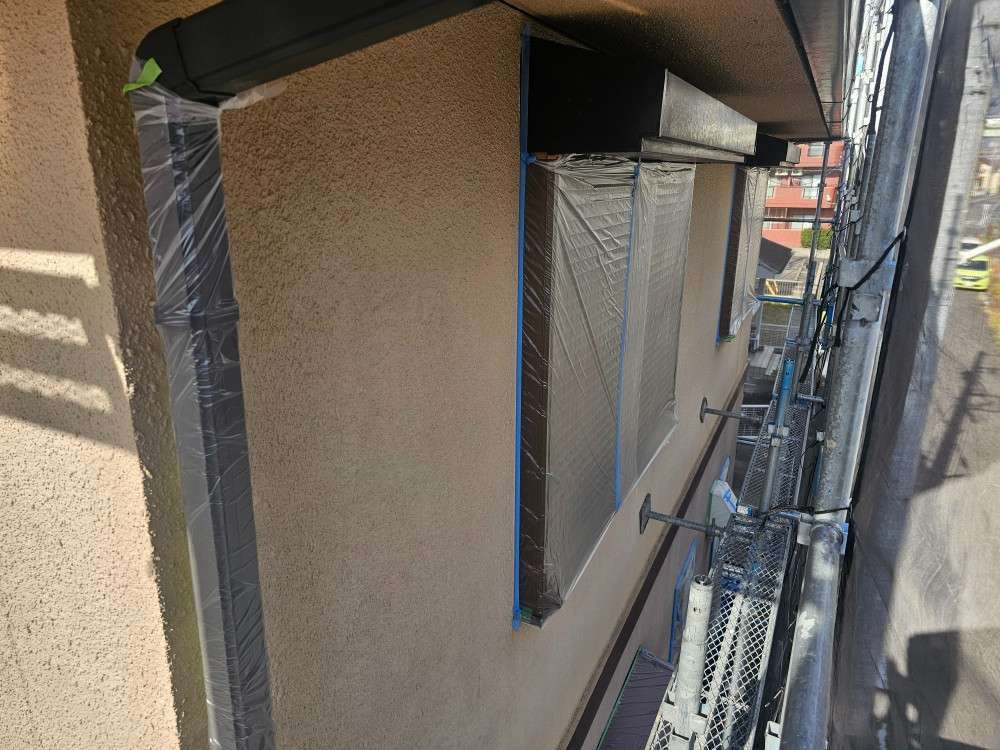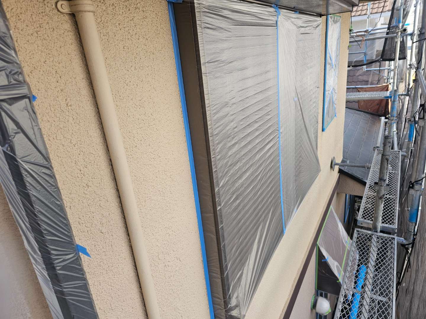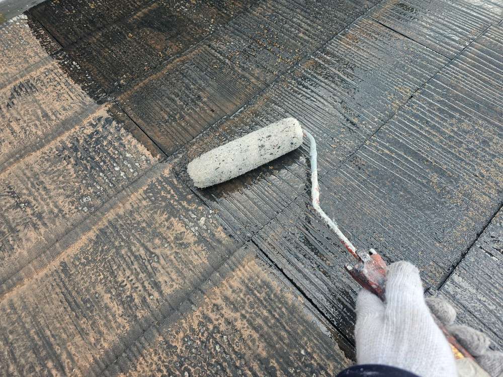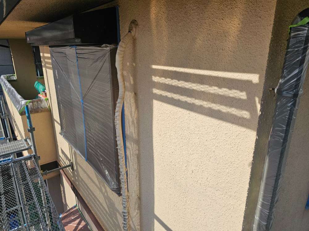 春日井市I様邸の昨日の作業内容は、非塗装部の養生作業と屋根の下塗り塗装作業を行っていました。