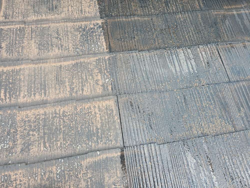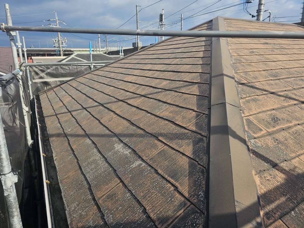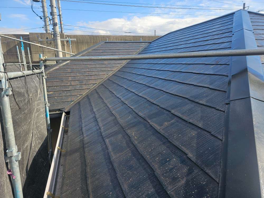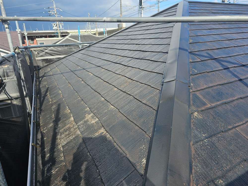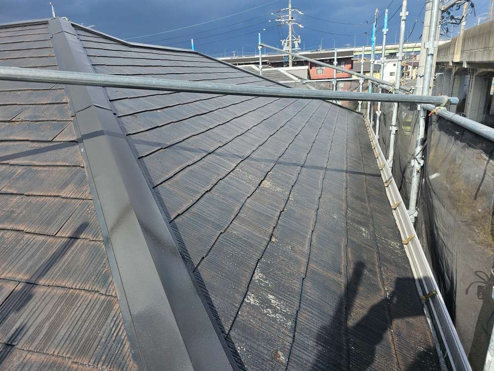 春日井市I様邸の昨日の作業内容は、非塗装部の養生作業と屋根の下塗り塗装作業を行っていました。