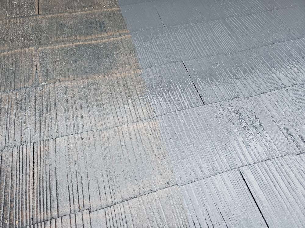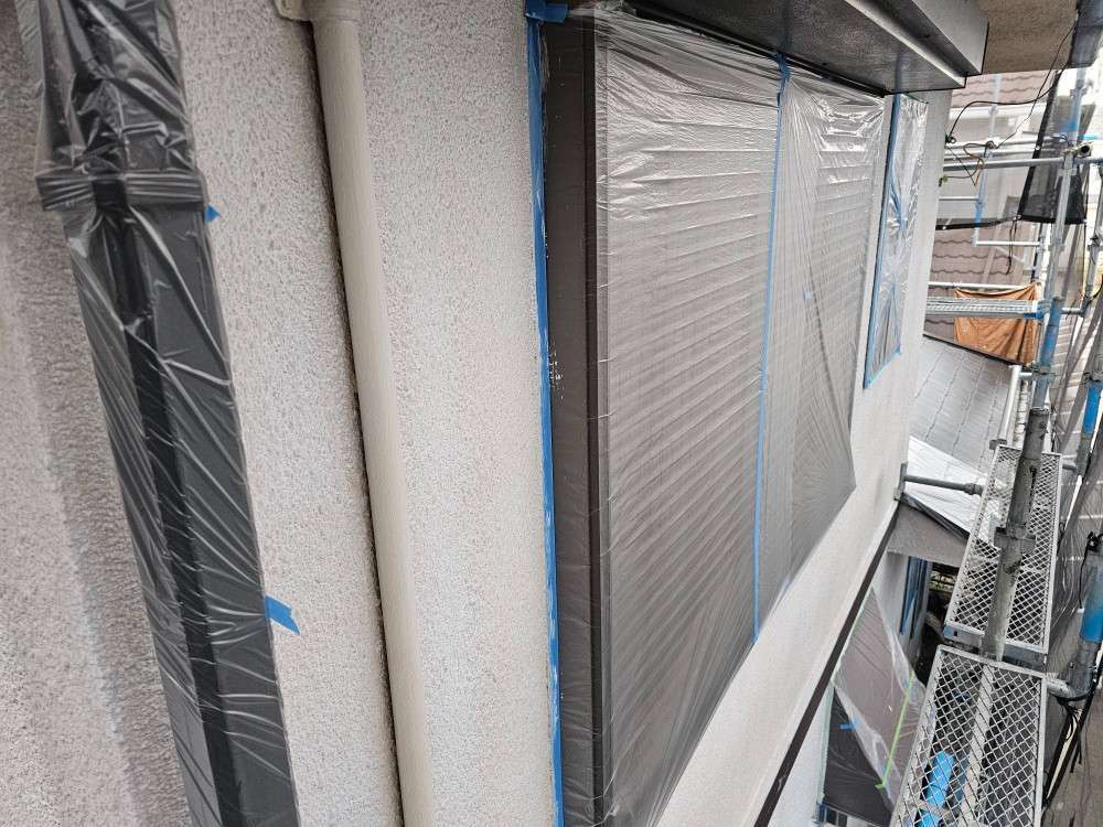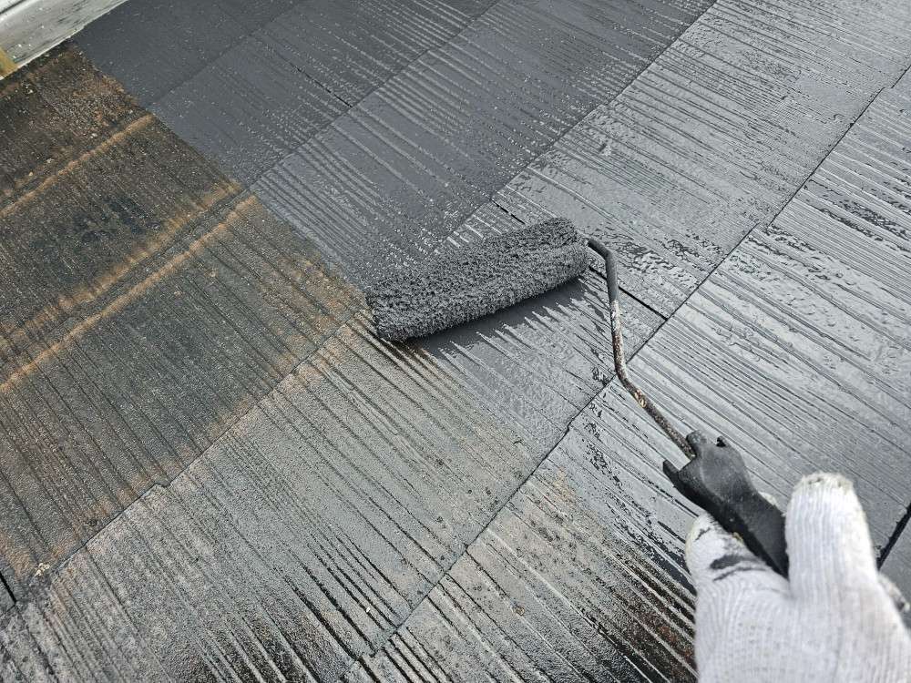 7日、土曜日の作業内容は、外壁の下塗り塗装・屋根の中塗り塗装作業を行っていました。