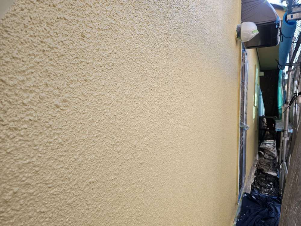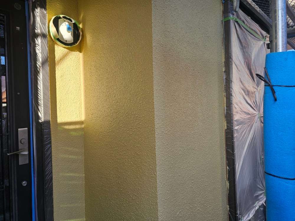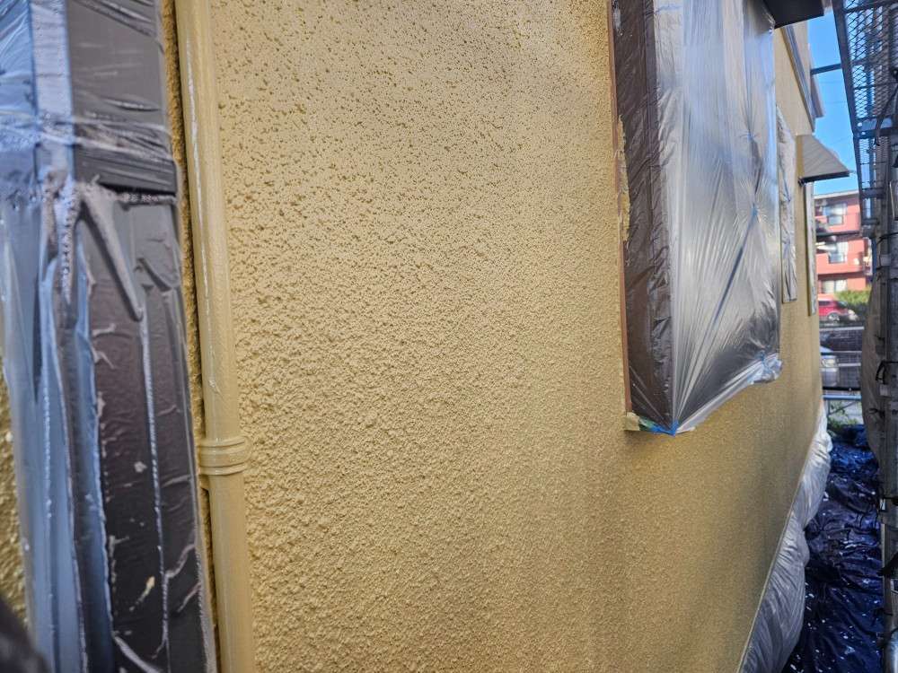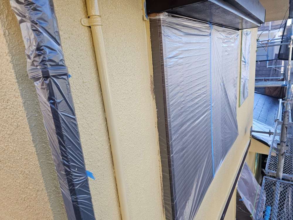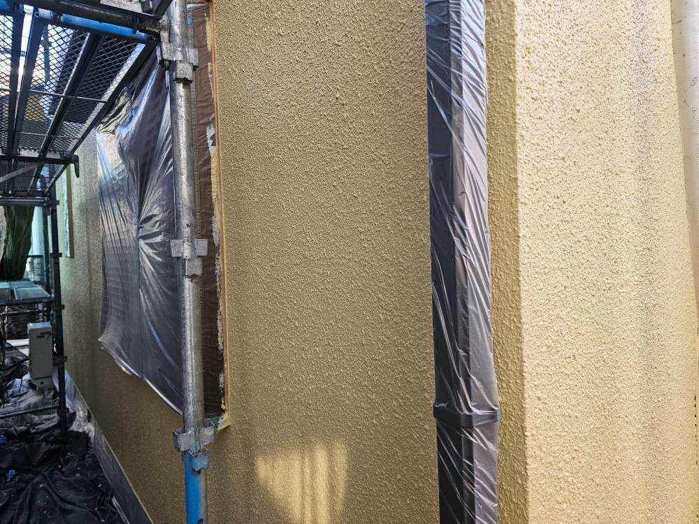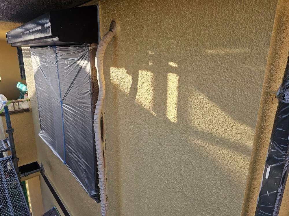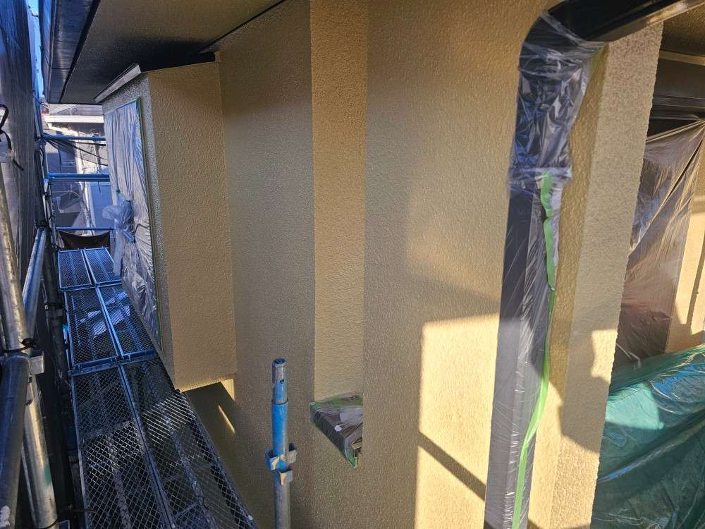 春日井市のI様邸の昨日の作業内容は、軒天1回目塗装・外壁の中塗り塗装・付帯部塗装で