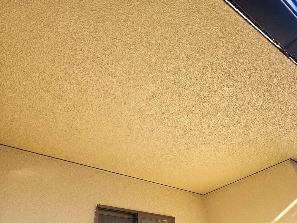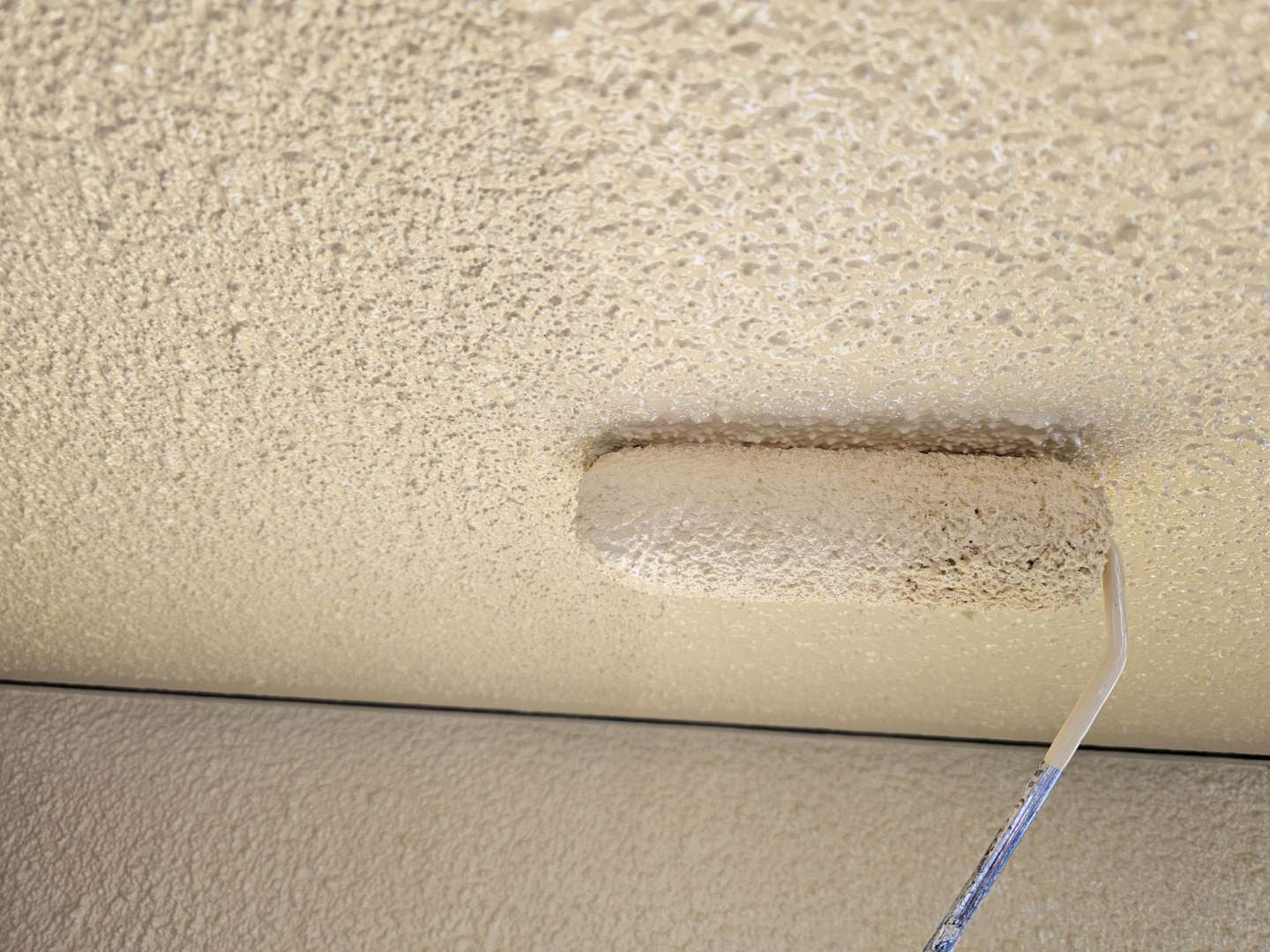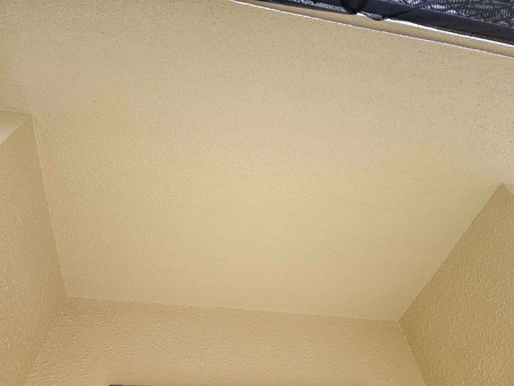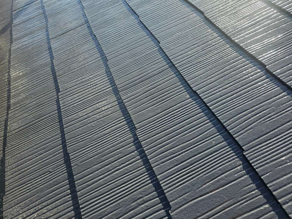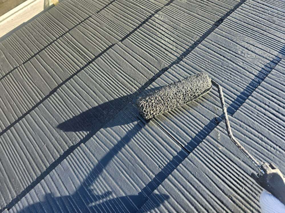 春日井市のI様邸の昨日の作業内容は、屋根の上塗り塗装・軒天の2回目塗装作業を