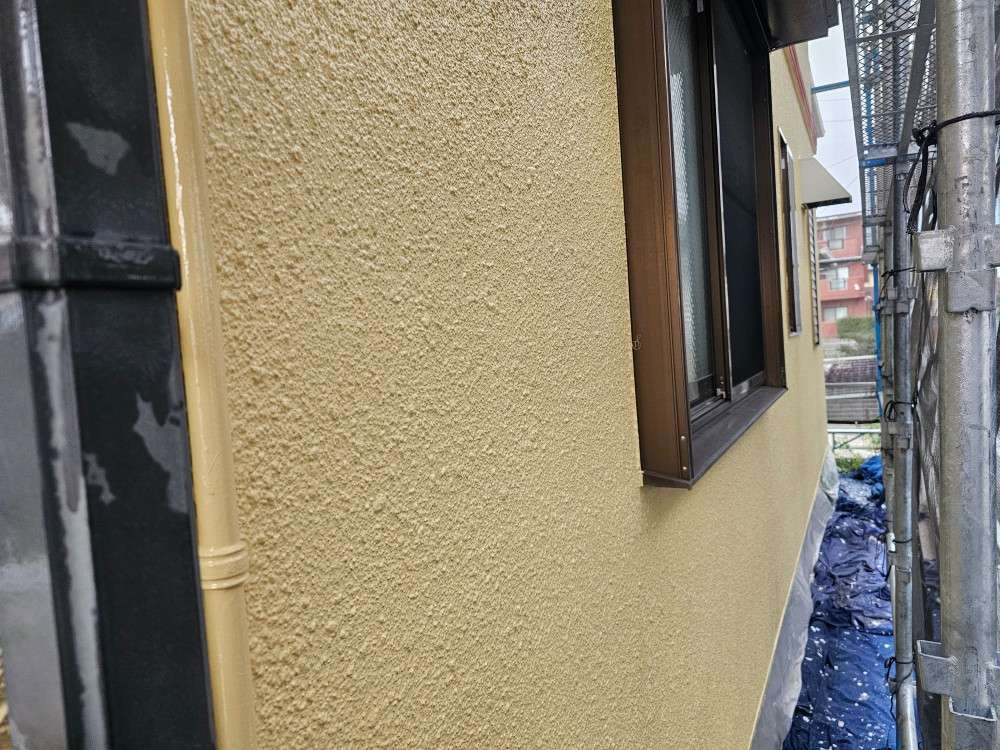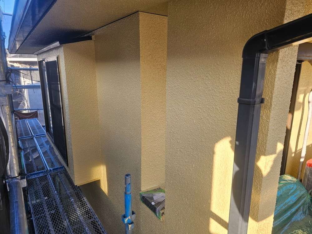 春日井市のI様邸の昨日までの作業内容は、外壁の上塗り塗装・付帯部塗装作業で