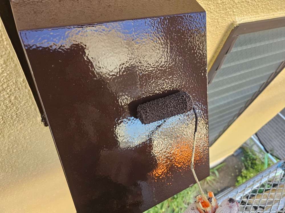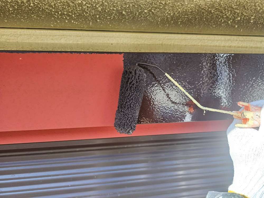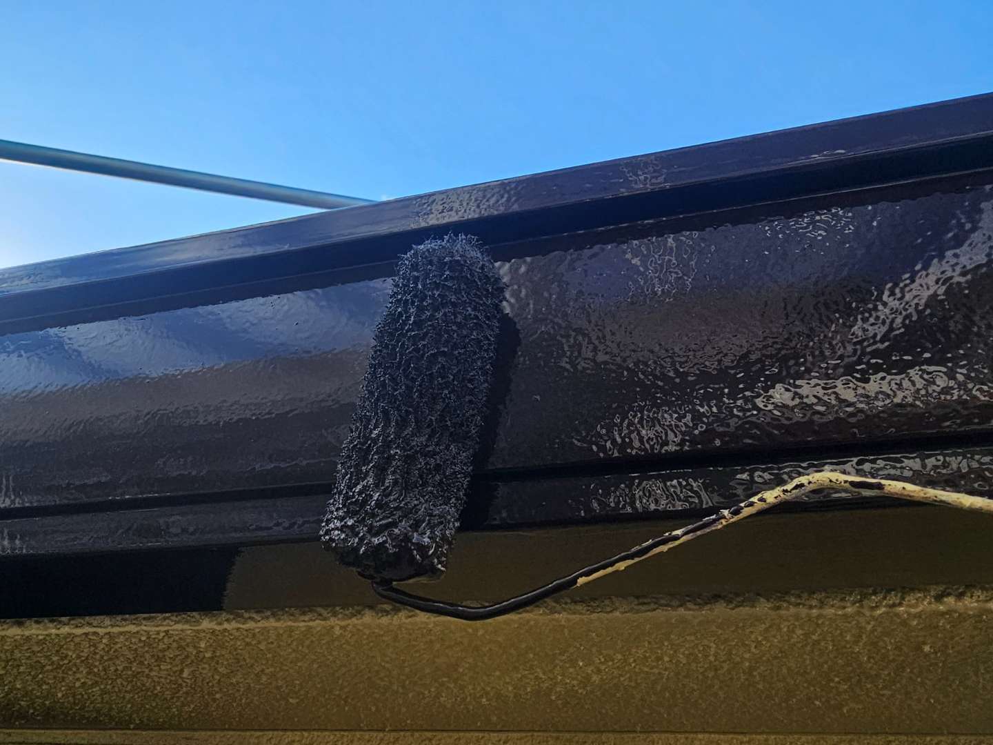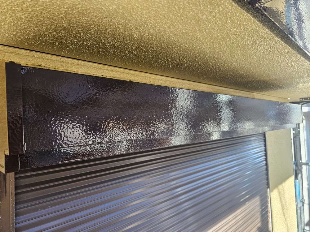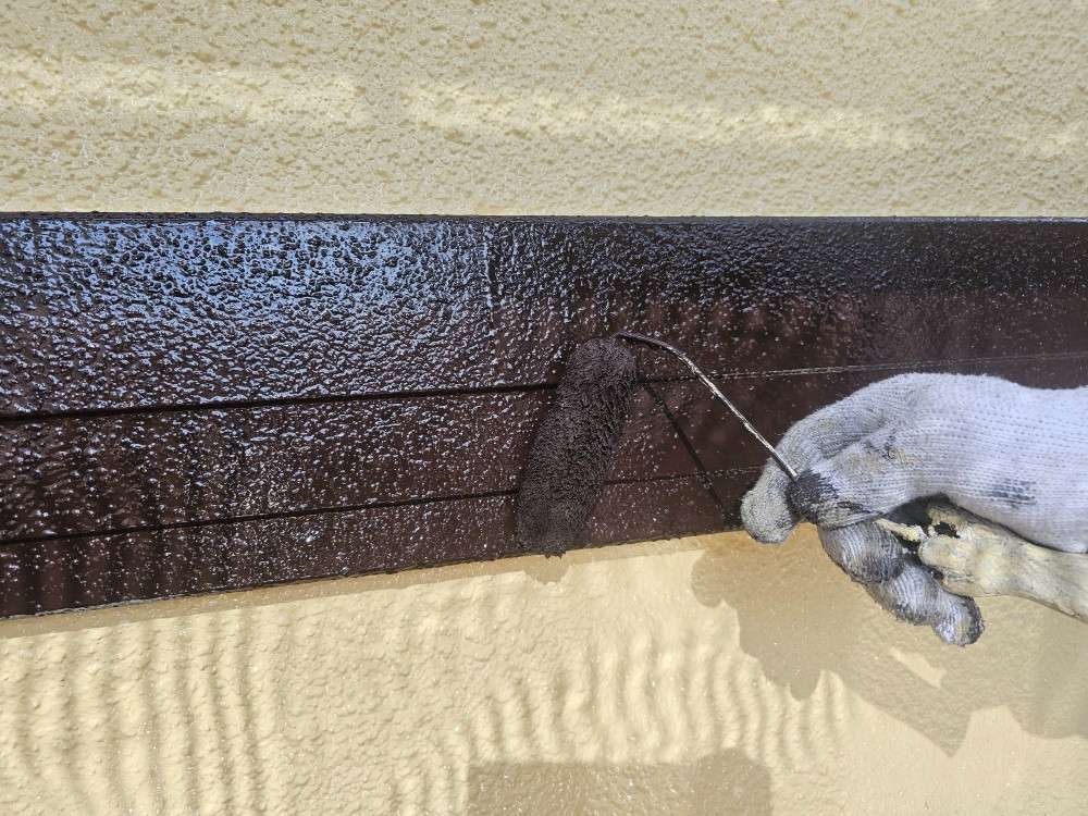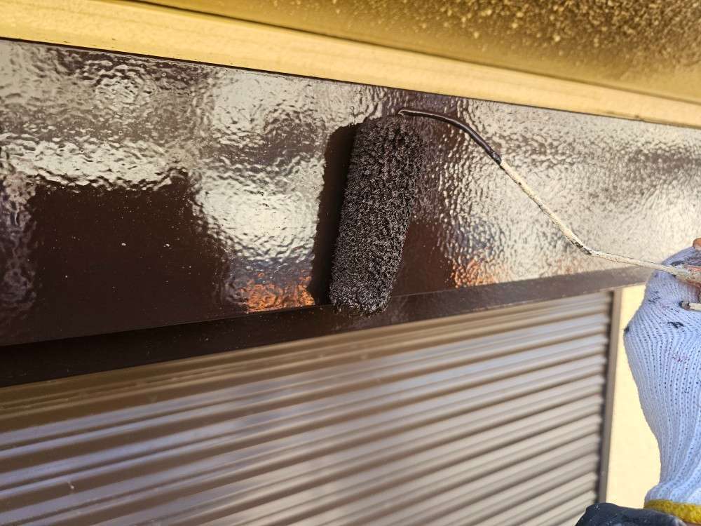 横樋・帯板・換気フード・シャッターボックスの上塗り1回目・2回目塗装作業と