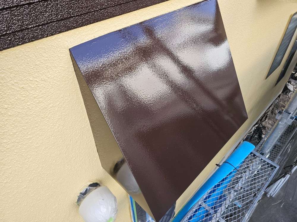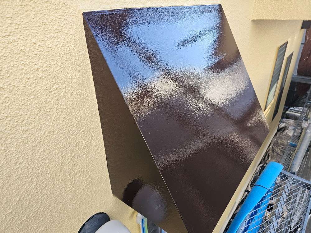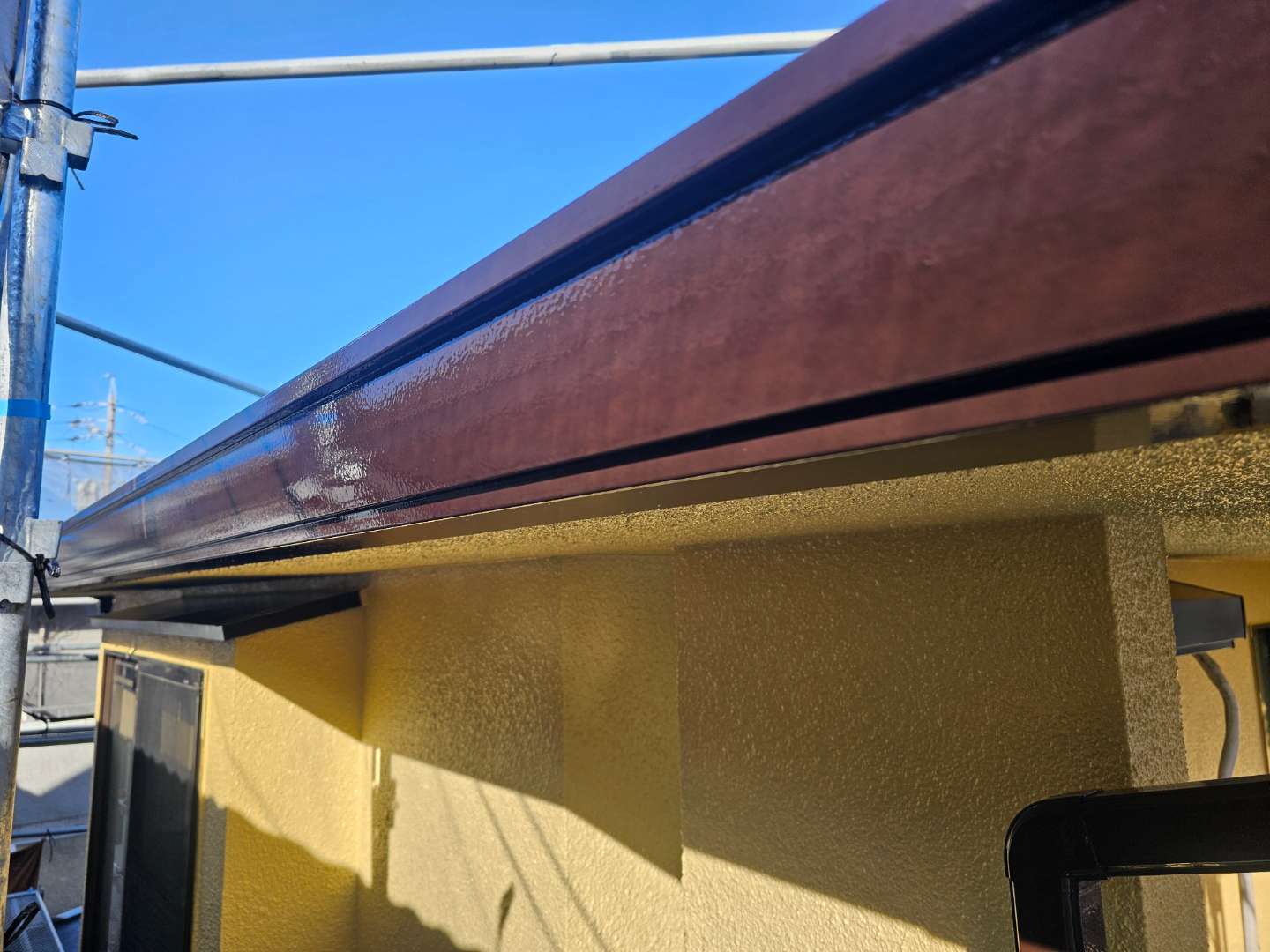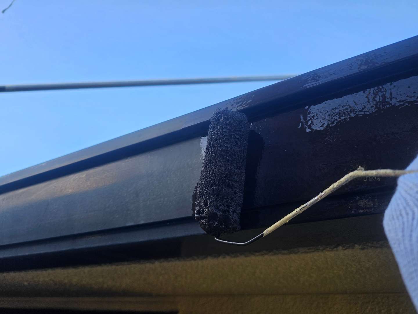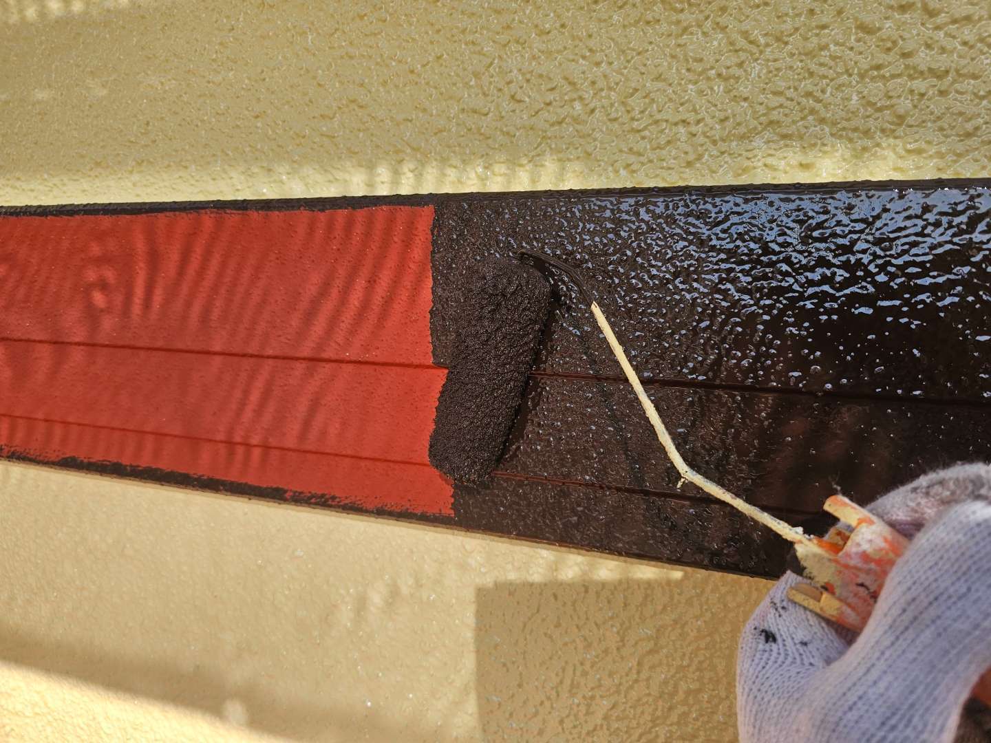 横樋・帯板・換気フード・シャッターボックスの上塗り1回目・2回目塗装作業と
