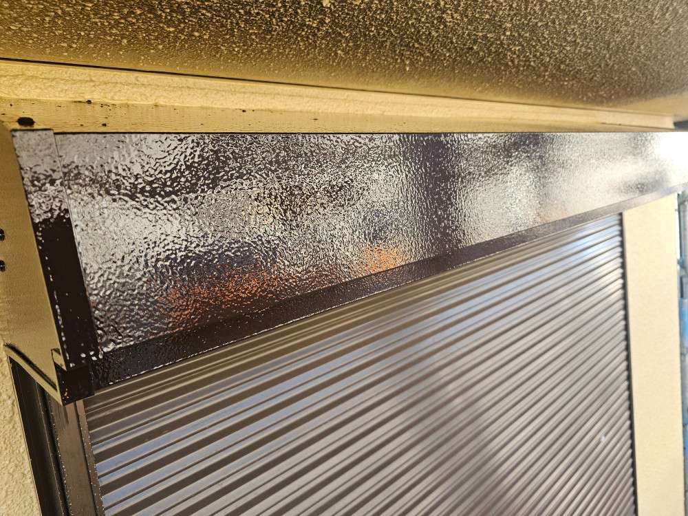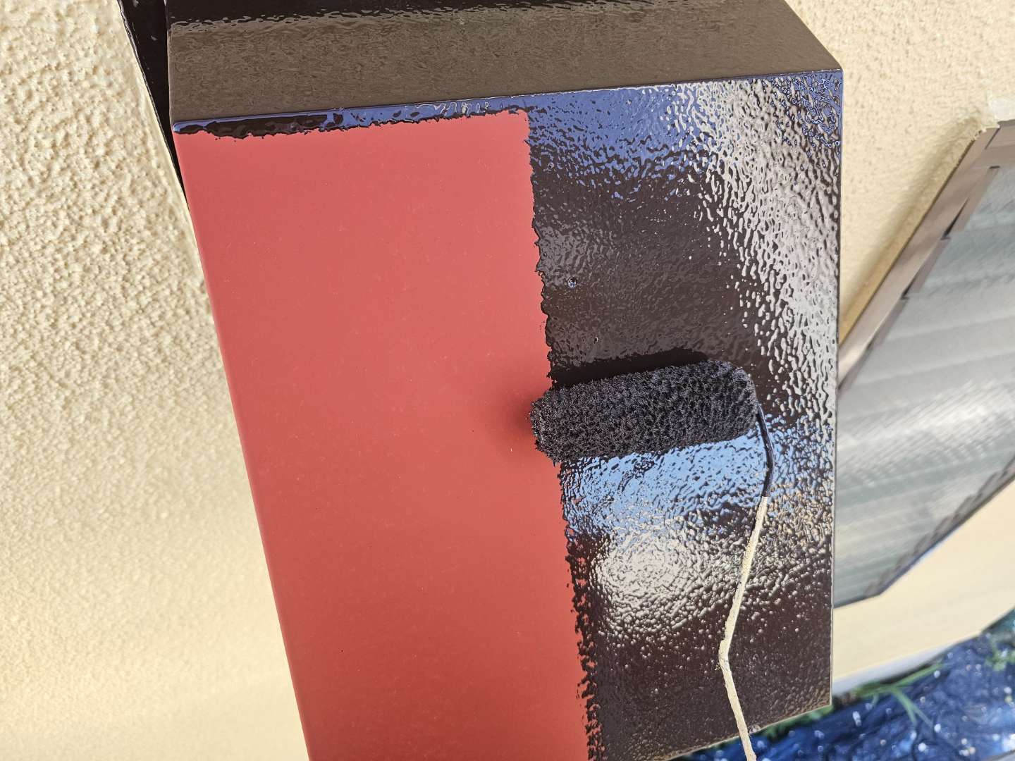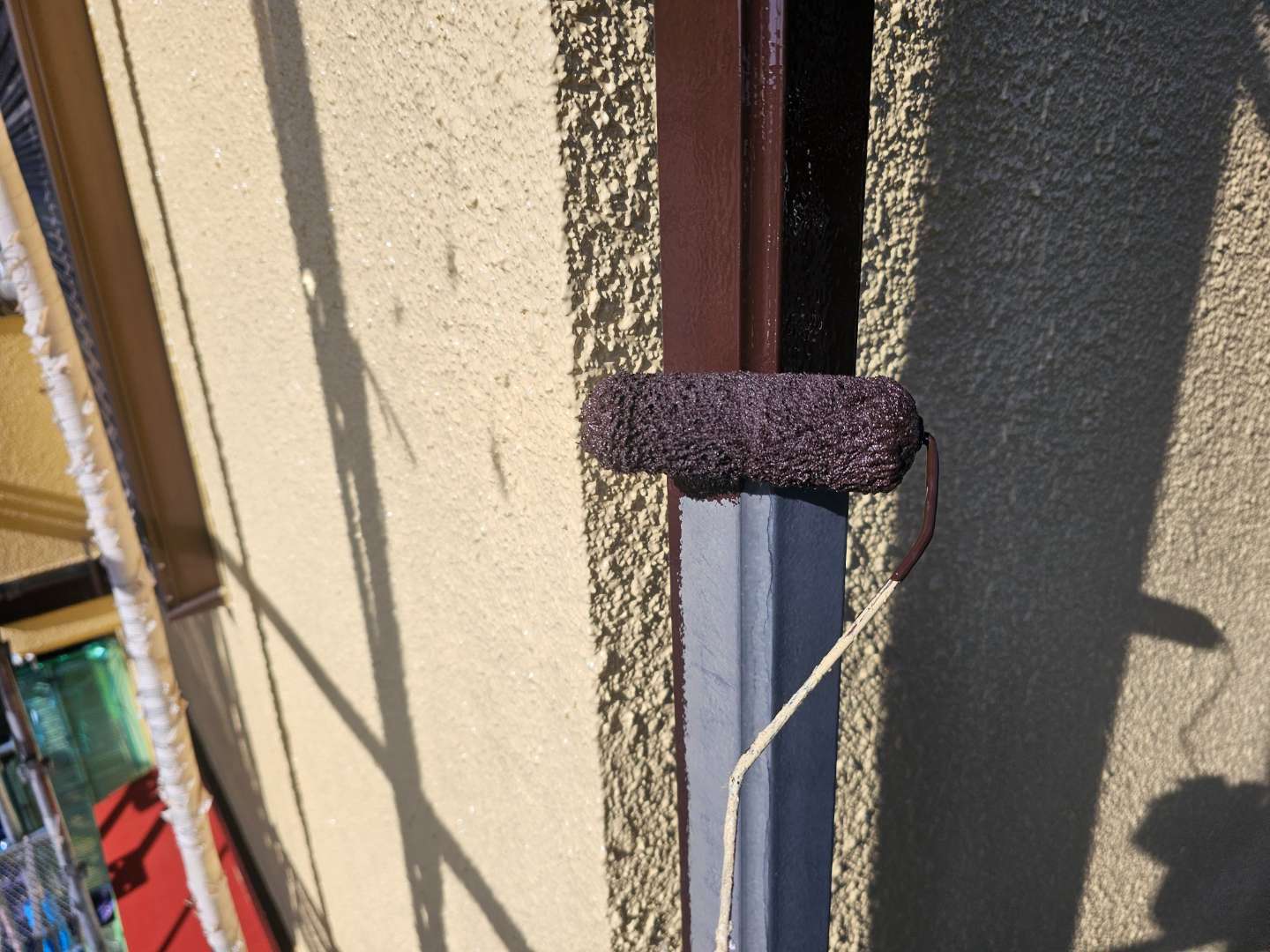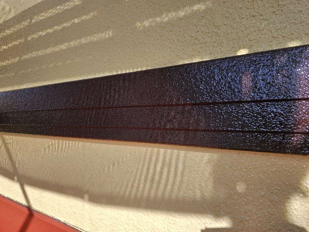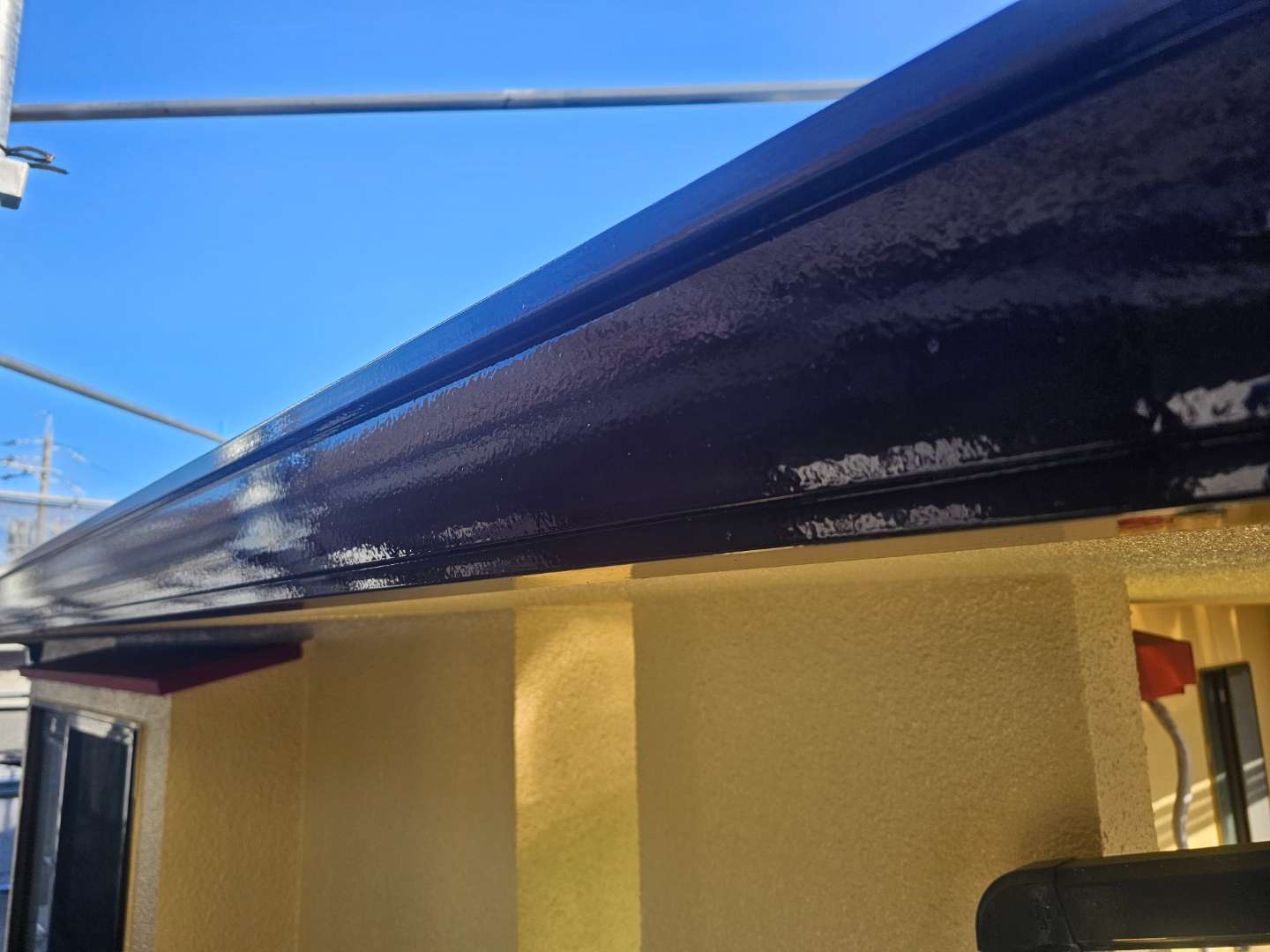 横樋・帯板・換気フード・シャッターボックスの上塗り1回目・2回目塗装作業と