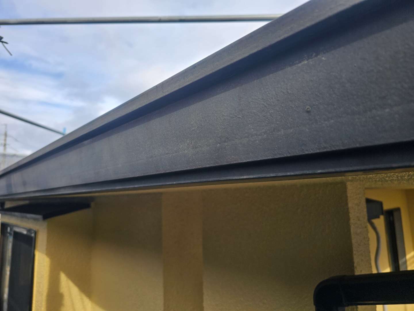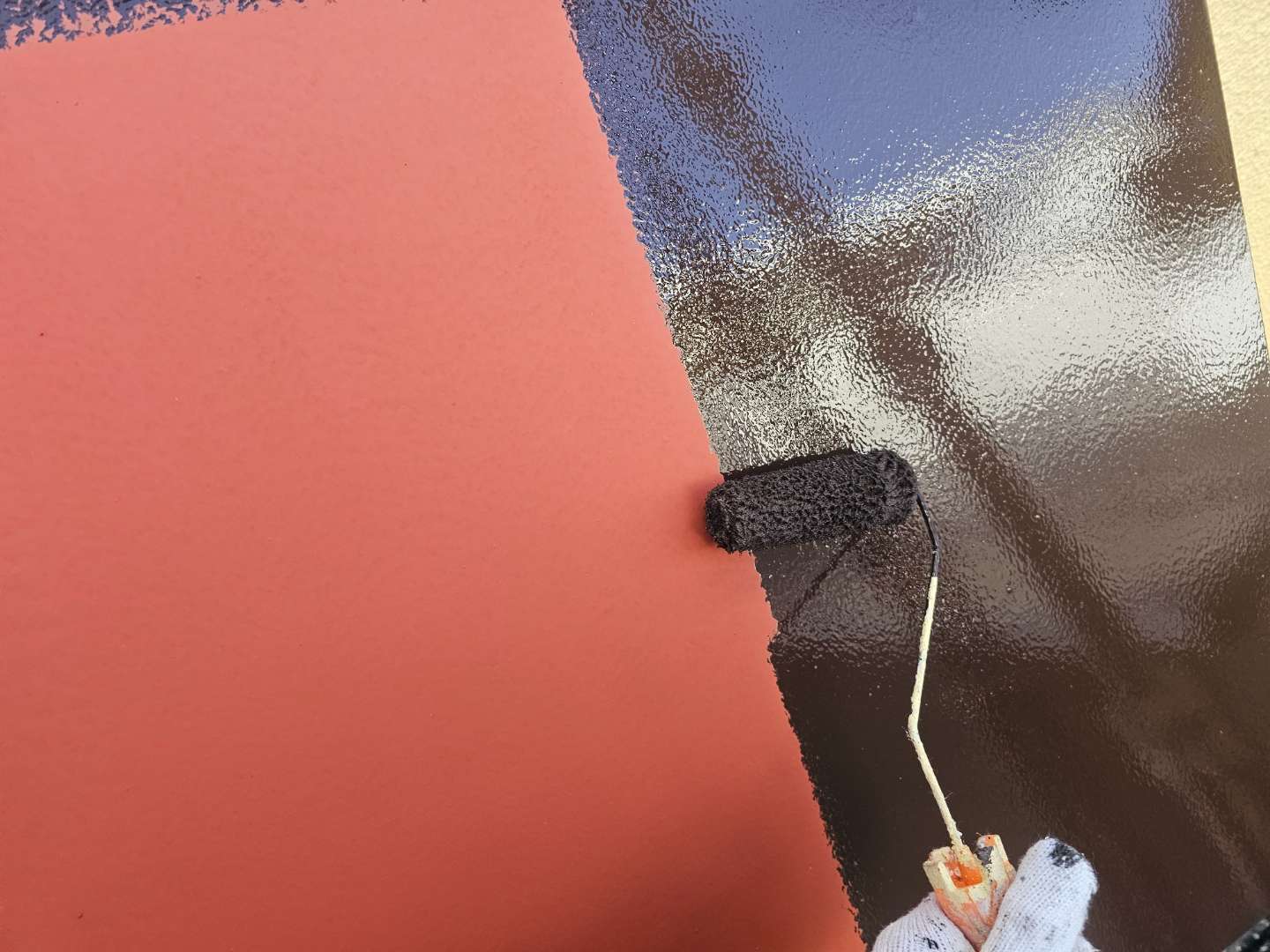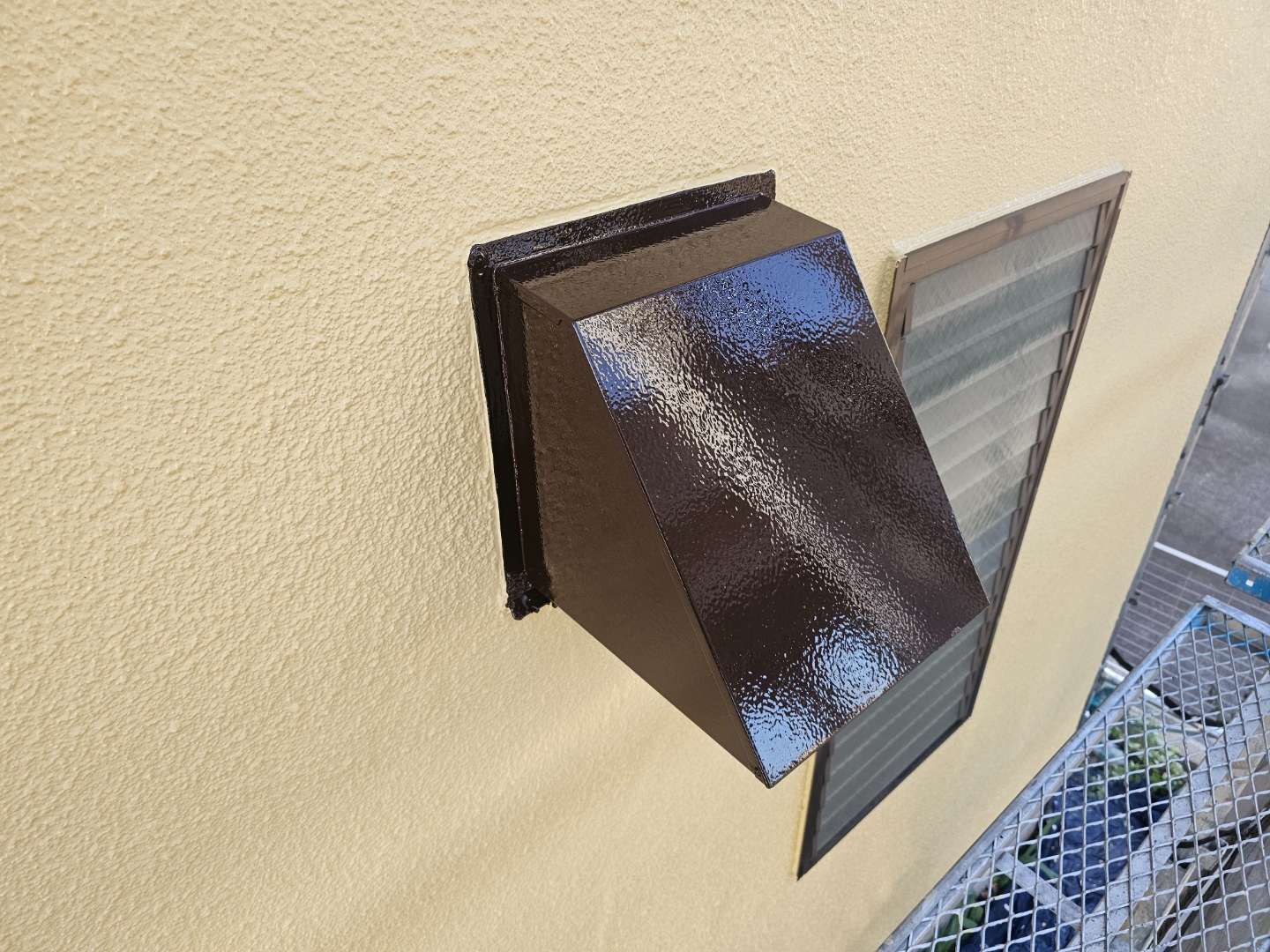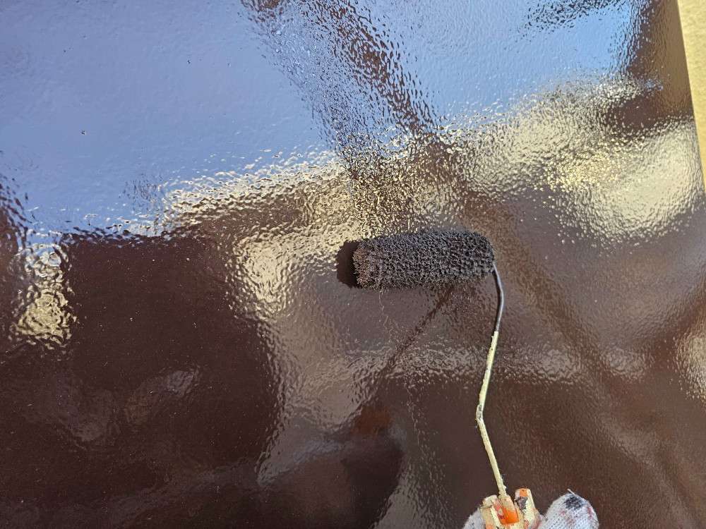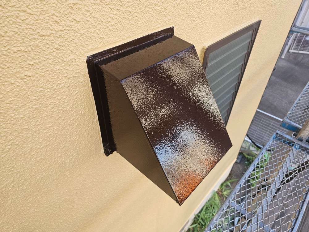 横樋・帯板・換気フード・シャッターボックスの上塗り1回目・2回目塗装作業と