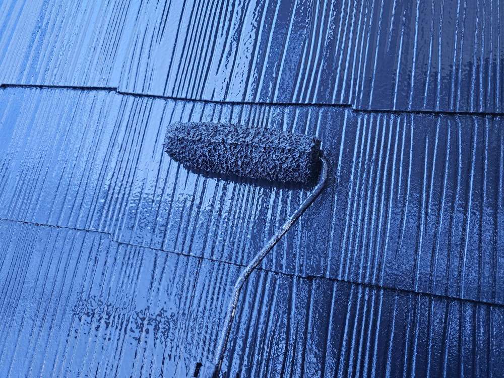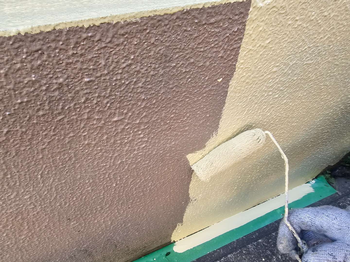縦樋の上塗り1回目塗装作業と下屋根の上塗り塗装作業と塀塗装で下塗り塗装・中塗り塗装作業を行っていました。