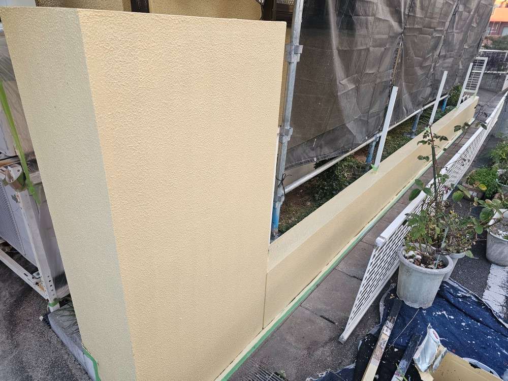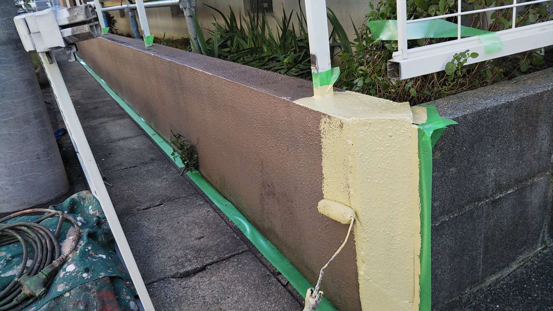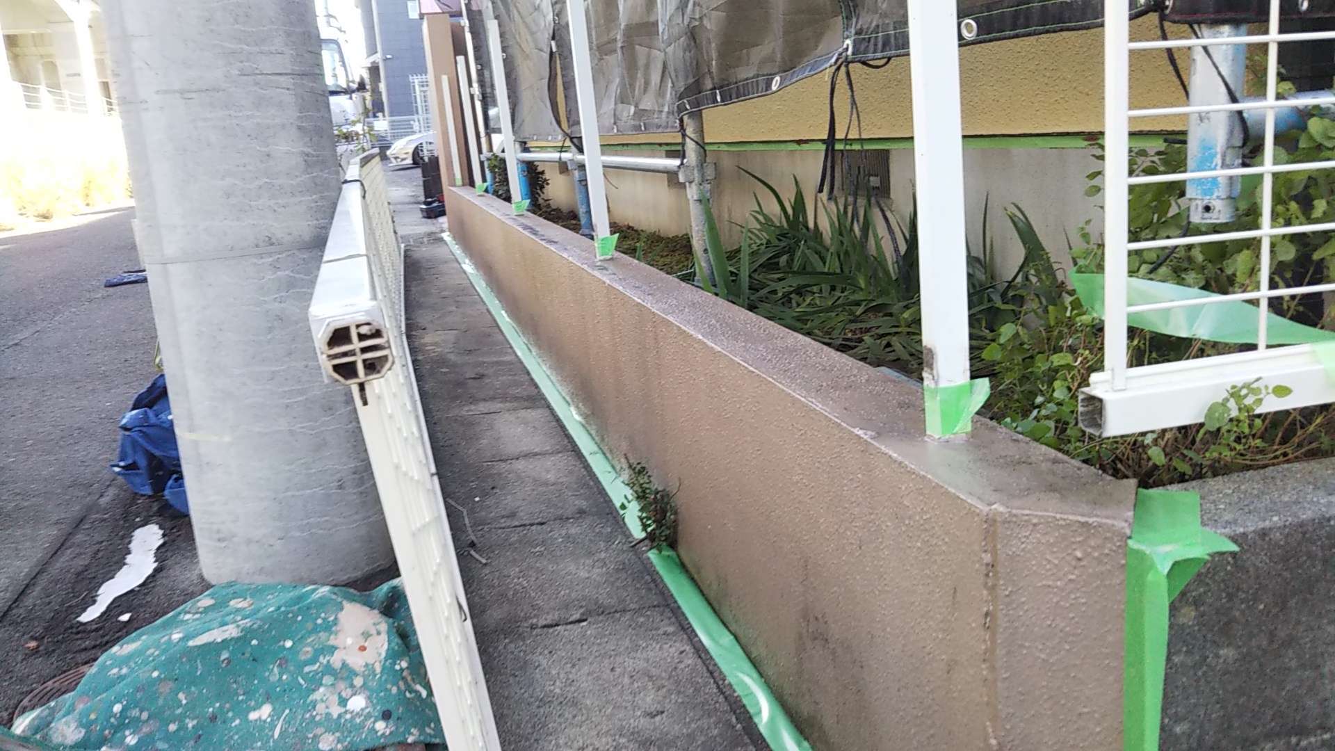 今日の作業も、引き続き付帯部塗装・塀塗装作業予定です。