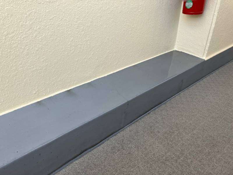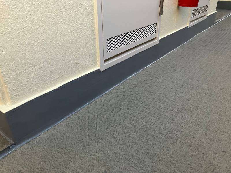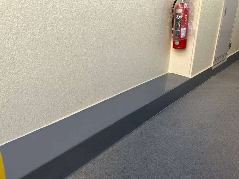 通路階段部立上り・側溝部トップコート塗装作業