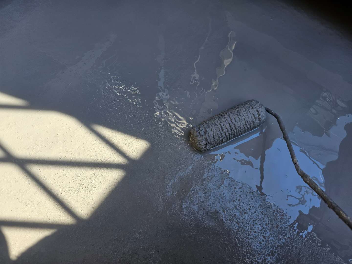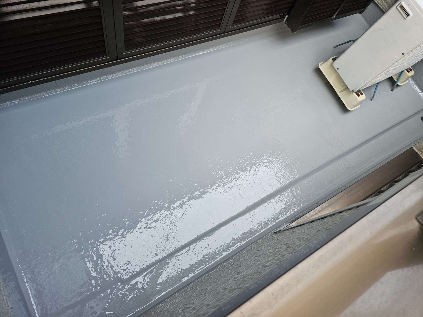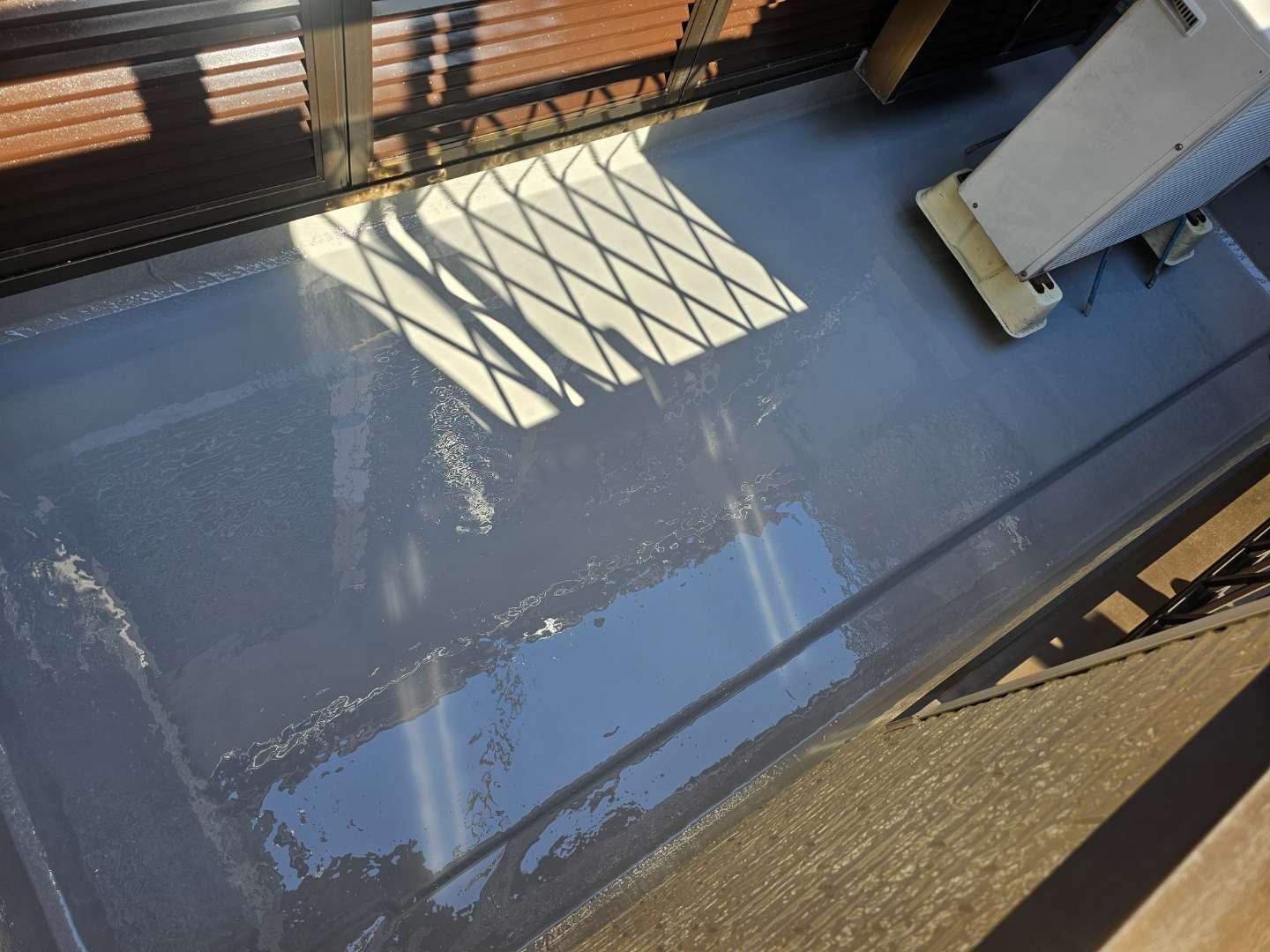 名古屋市北区W様邸の昨日の作業内容は、ベランダウレタン防水の2層目塗装とコーキング(シーリング)打ち替え工事の旧シーリング材撤去作業を行っていました。