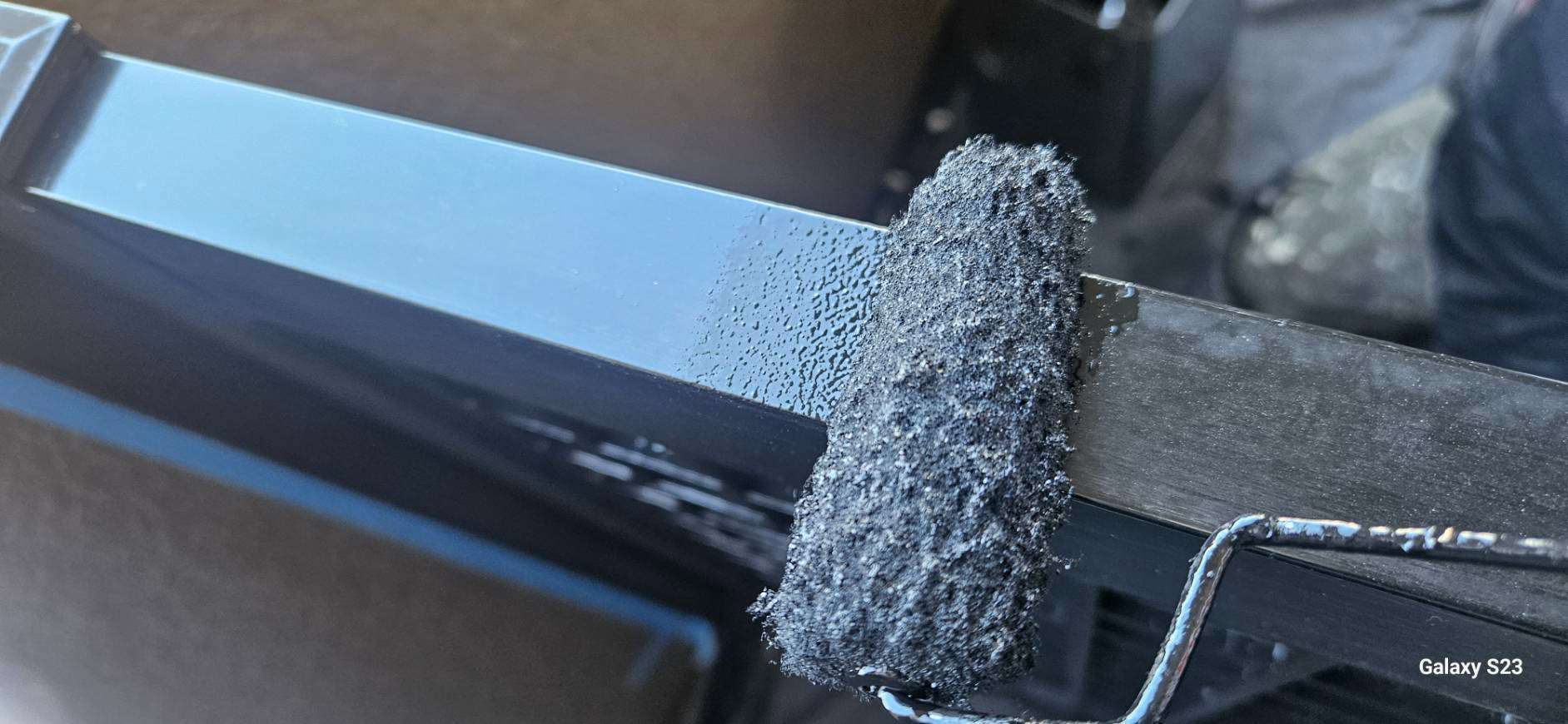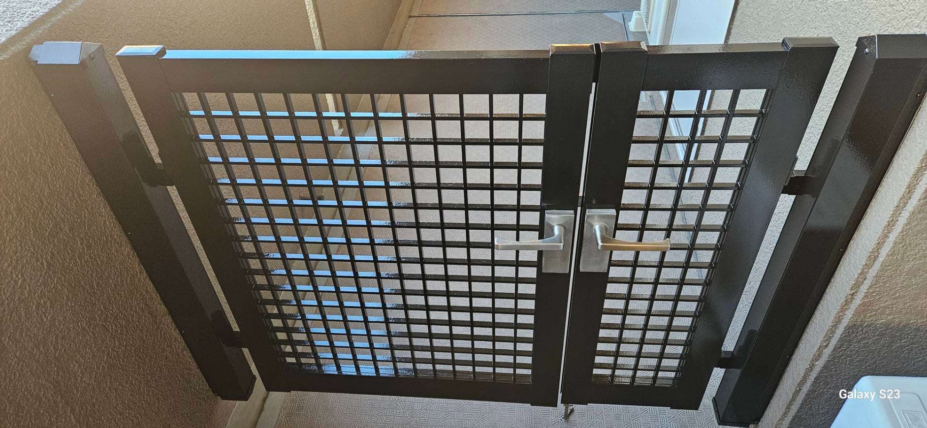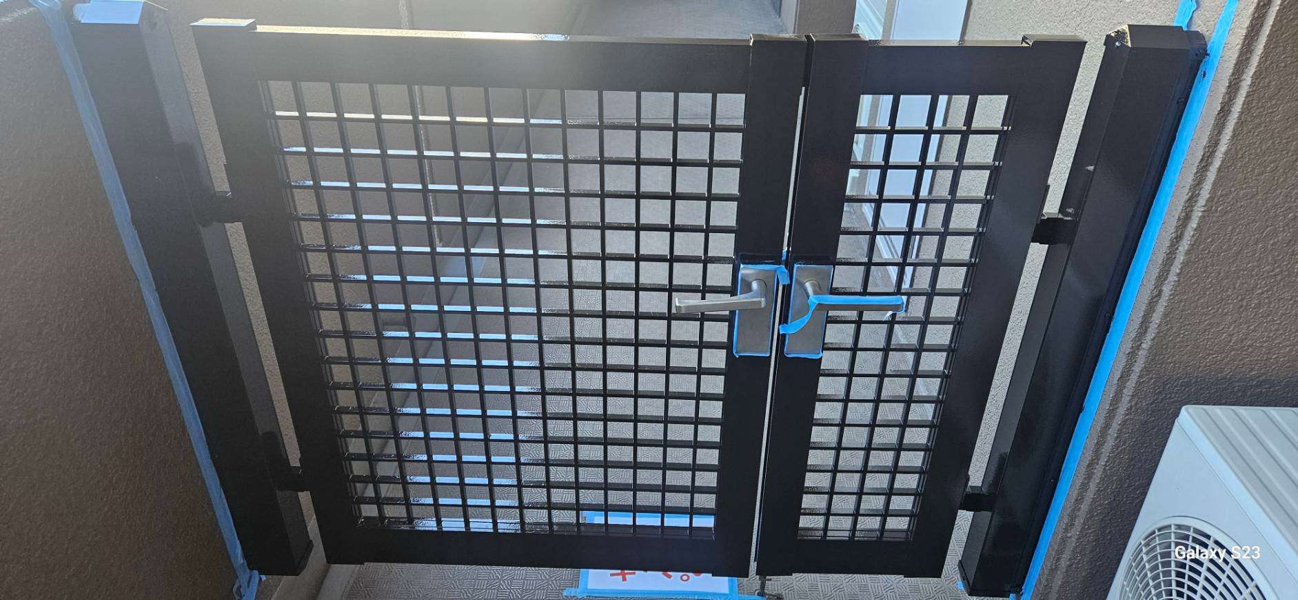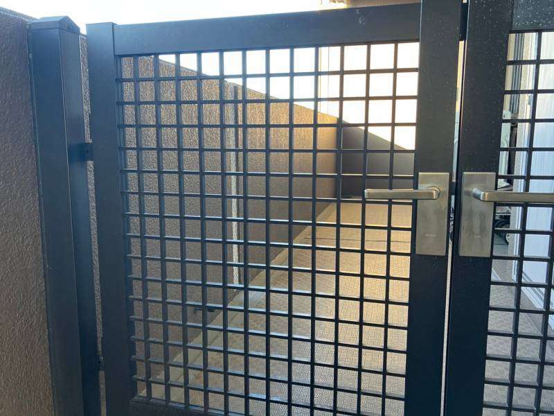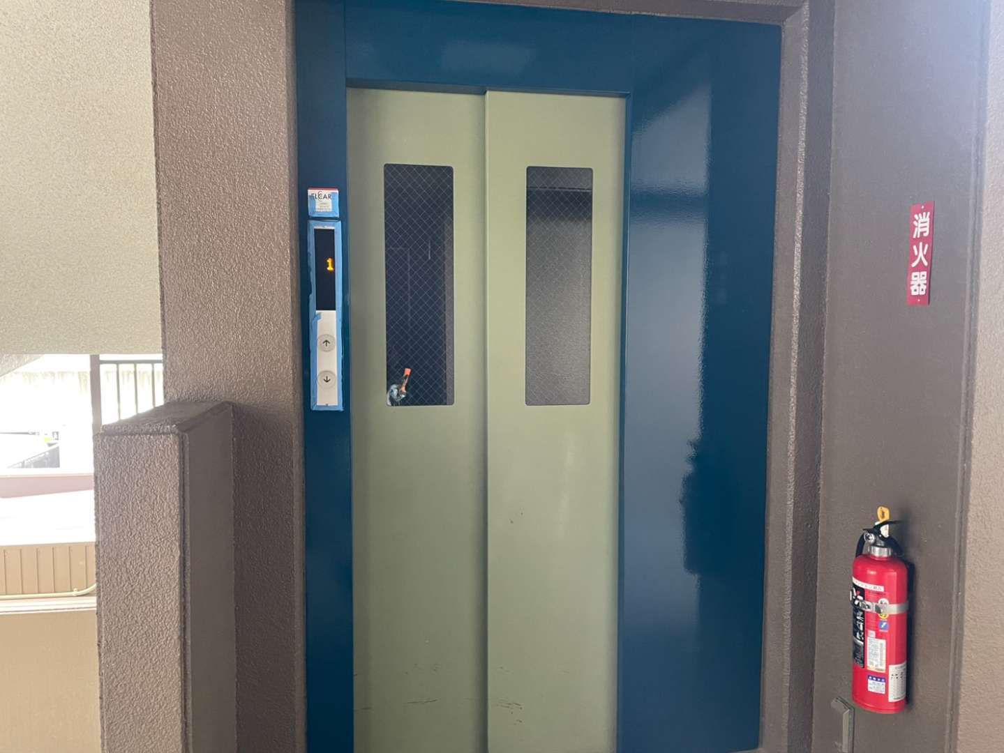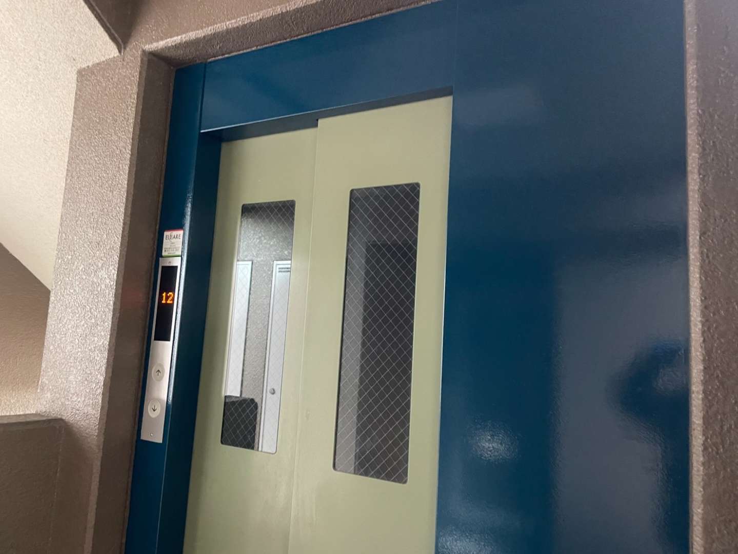 守山区のRマンション様の昨日の作業内容は、1F~4Fの鉄部(玄関ドア枠・エレベーター枠・門扉)の中塗り・上塗り塗装と5Fの鉄部のケレン作業を行いました。