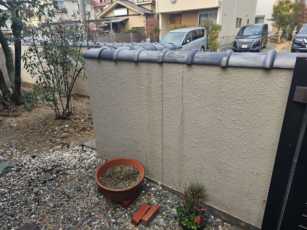 今日の作業は、塀の塗装作業予定です。
