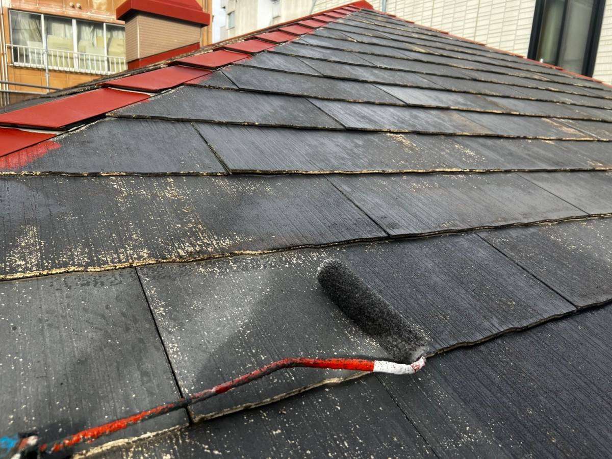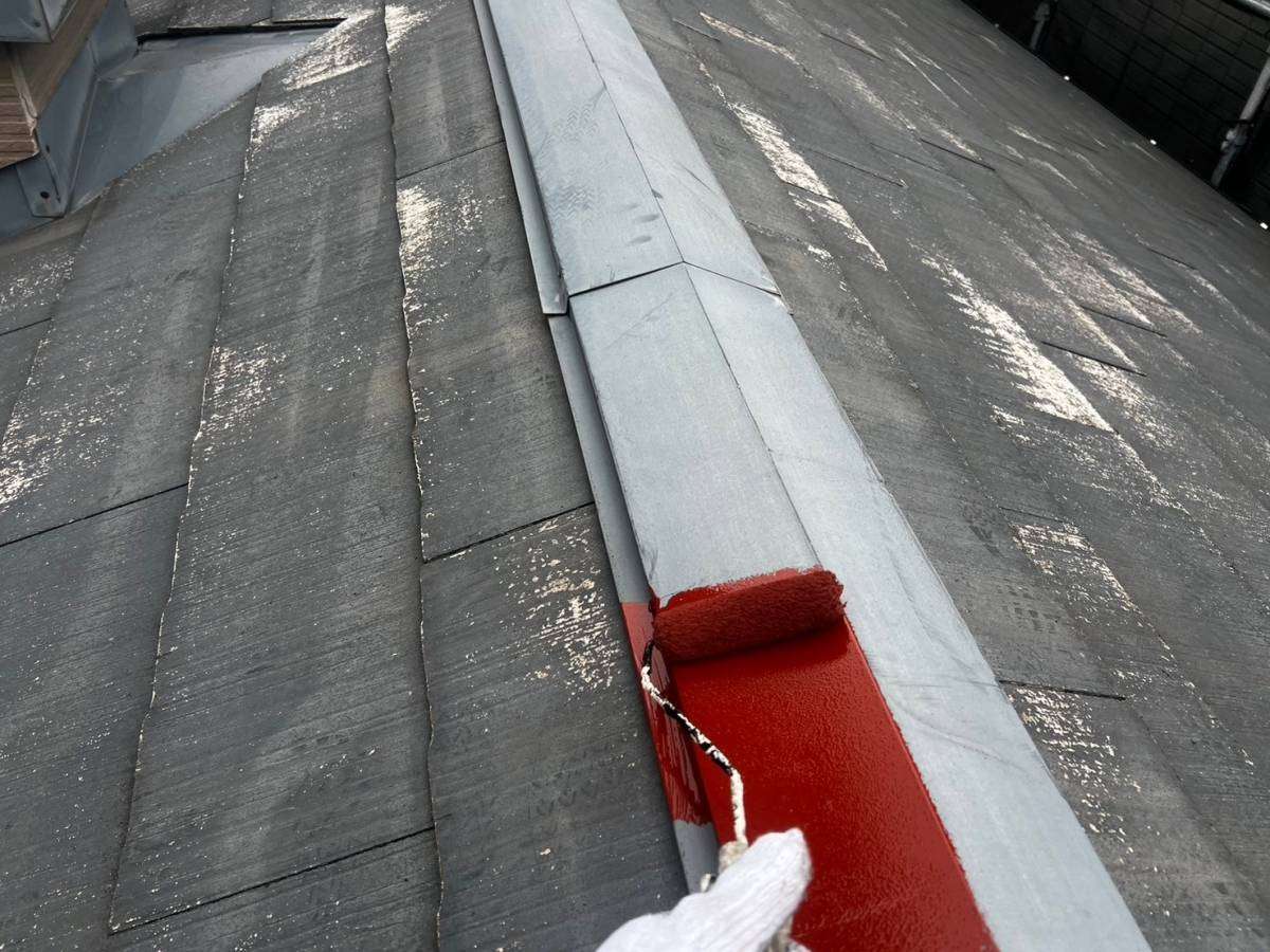 屋根下塗り塗装・棟板金サビ止め塗装作業