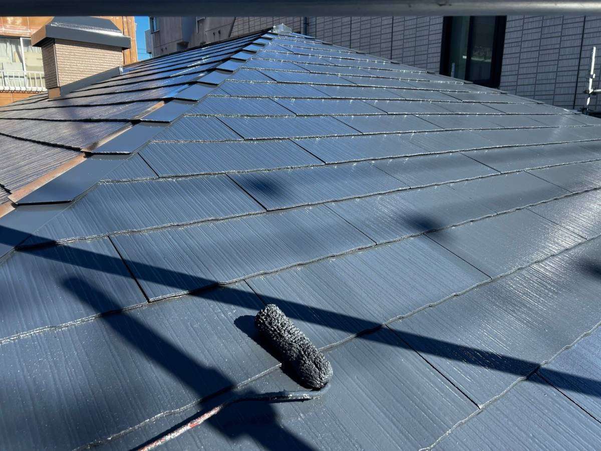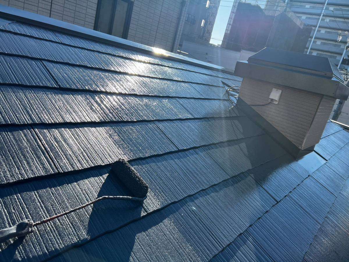 屋根上塗り塗装作業