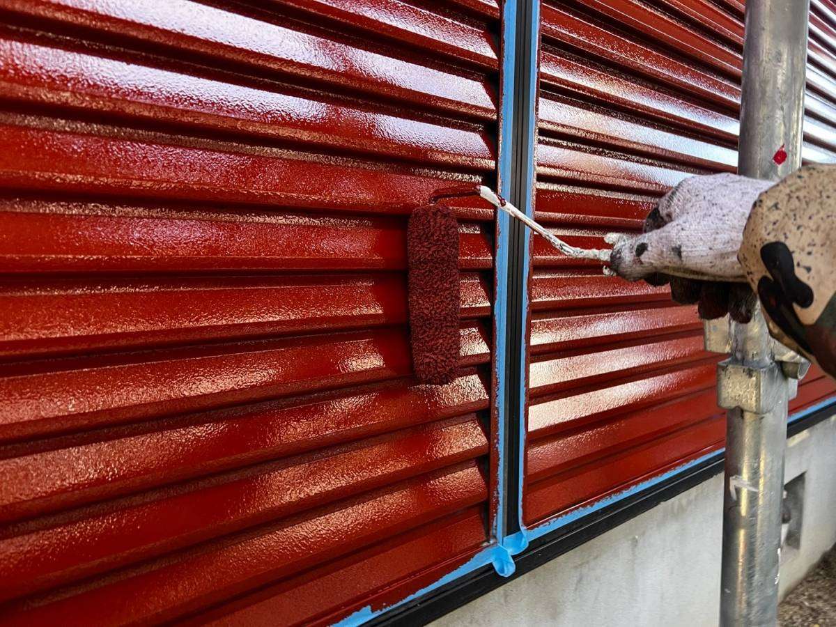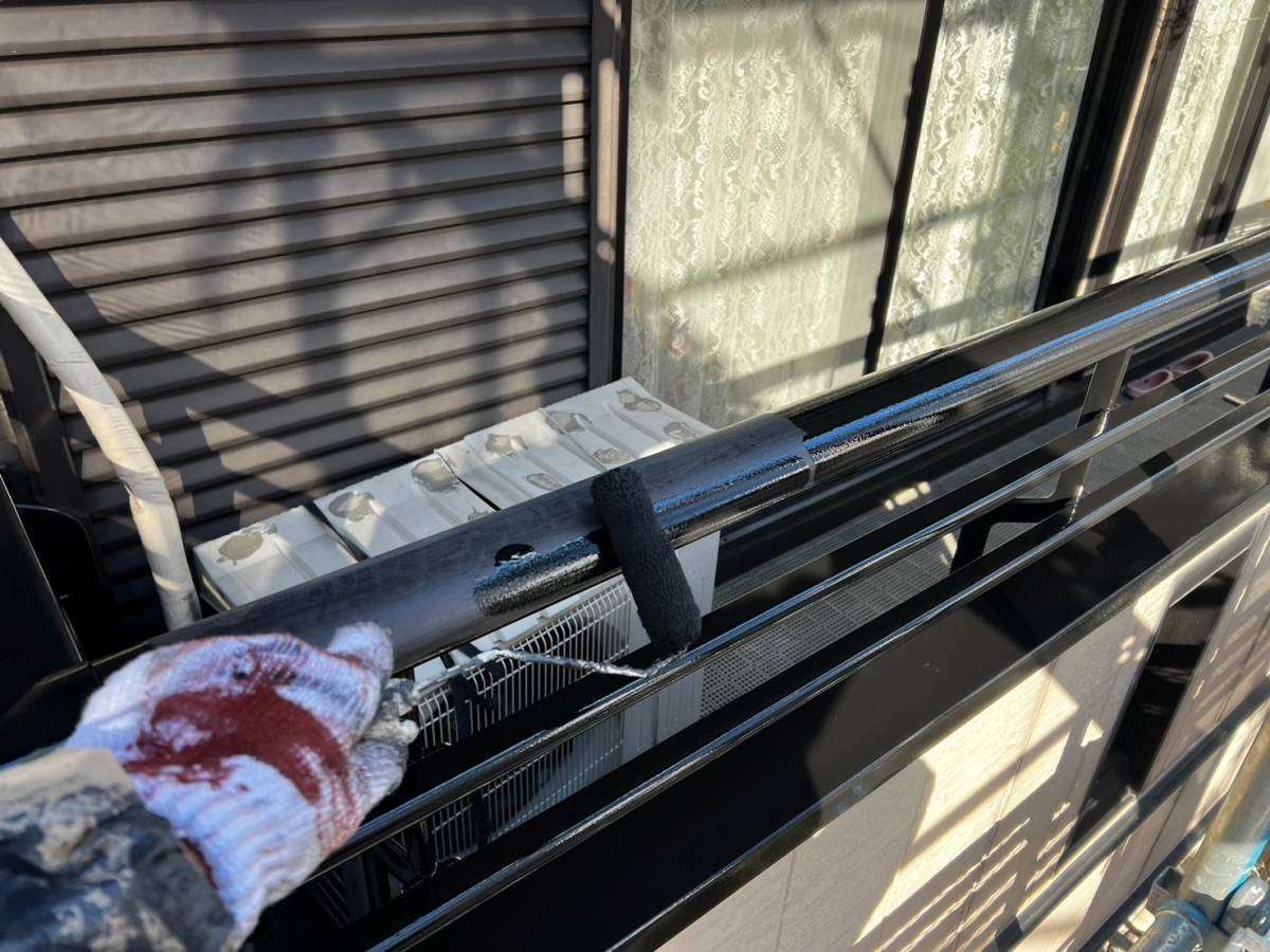 昭和区T様邸の昨日の作業内容は、屋根の上塗り塗装、手すりのプライマー塗装、上塗り1回目塗装、雨戸のさび止め塗装作業を行っています。