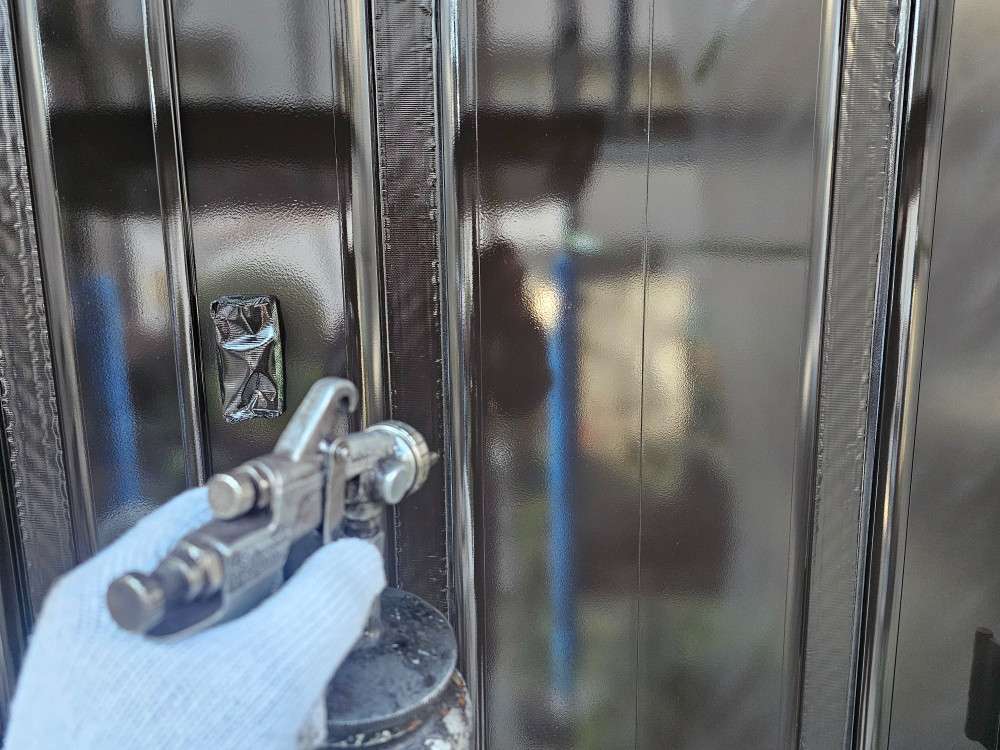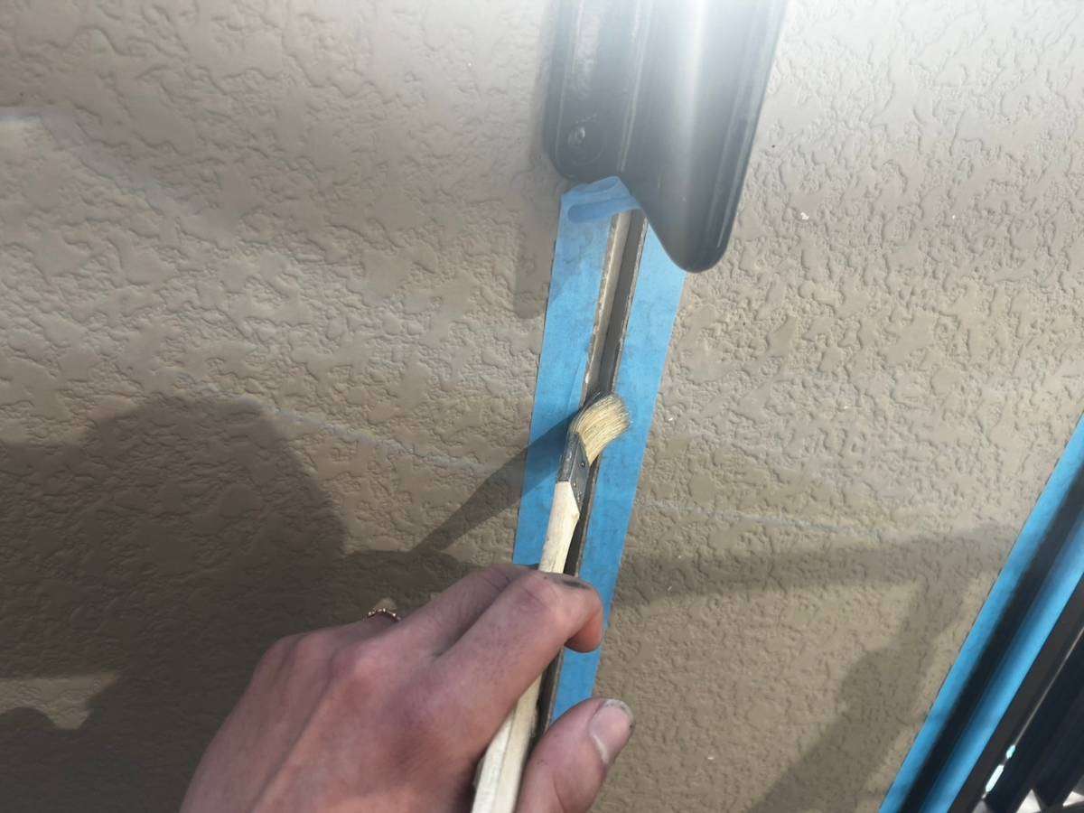 名古屋市昭和区のT様邸の昨日の作業内容は、目地劣化部のコーキング補修(増打ち・打替え)作業と玄関ドア(プライマー・中塗り・上塗り)塗装作業と手摺り上塗り塗装・雨戸の中塗り・上塗り塗装作業を行っていました。