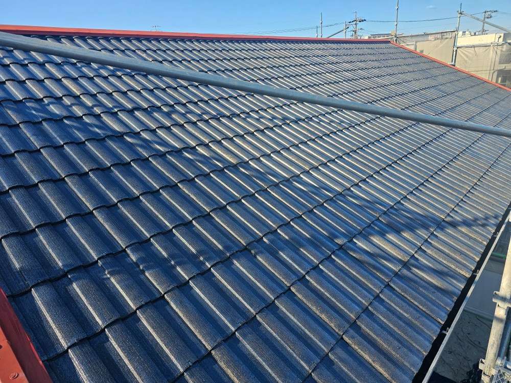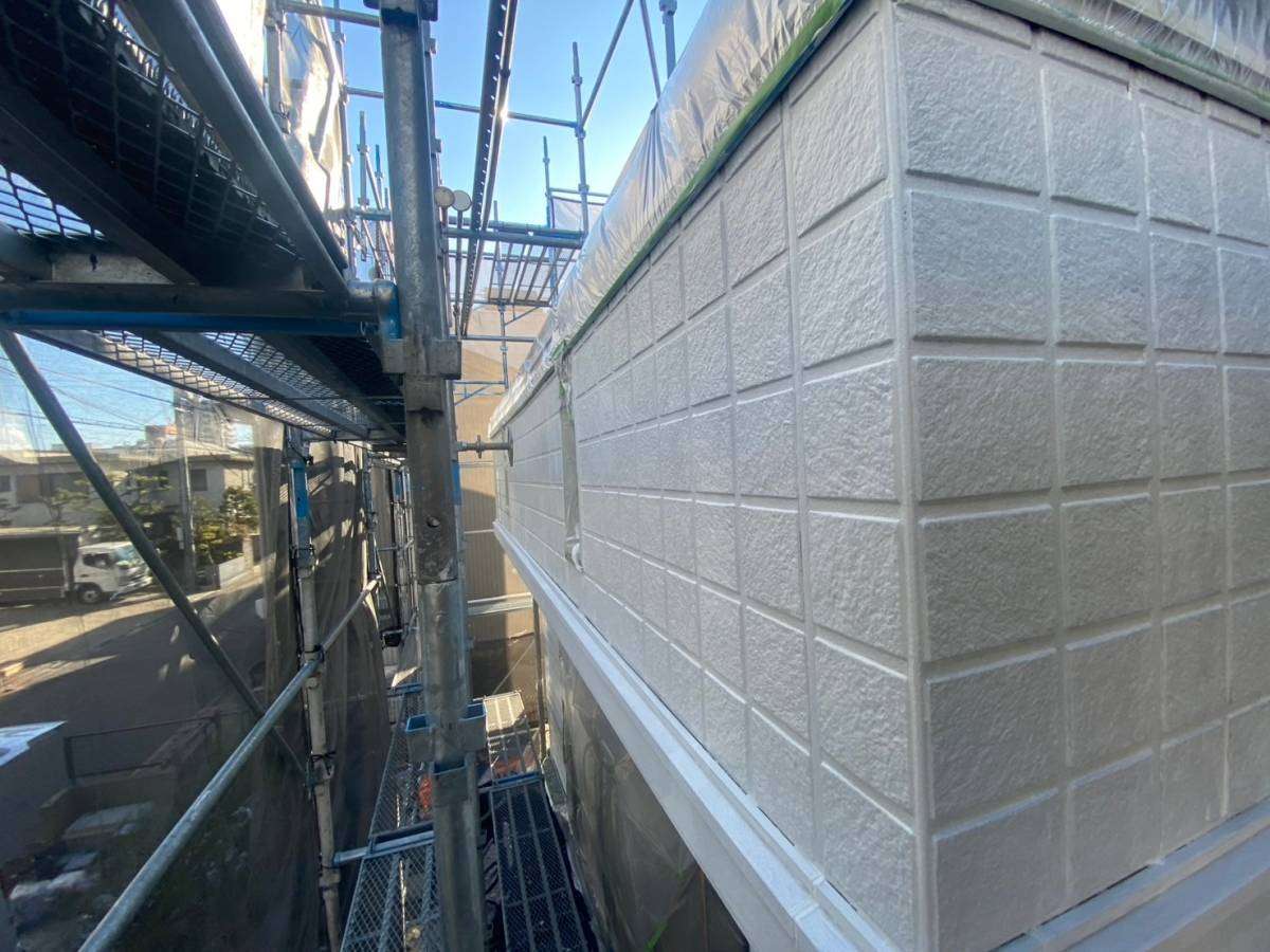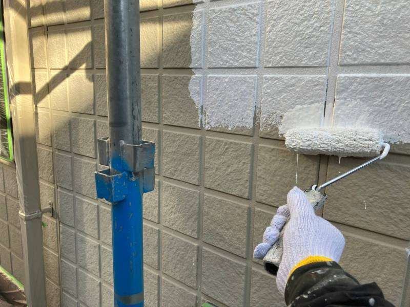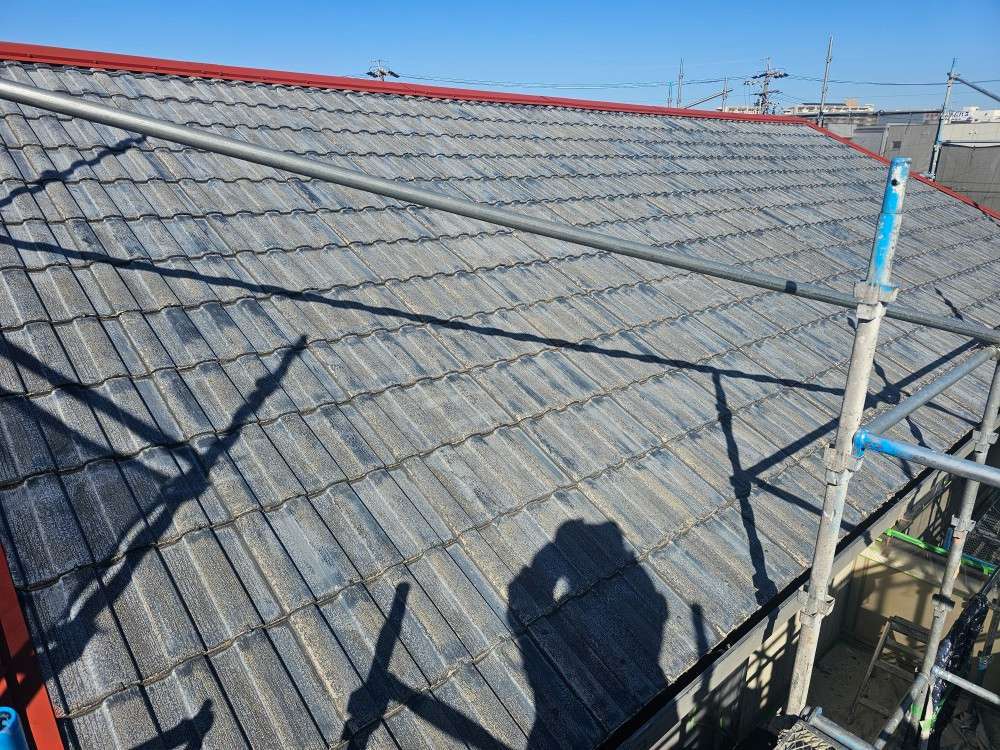 名古屋市東区のU様邸の昨日の作業内容は、外壁の下塗り塗装と屋根の下塗り1回目・2回目塗装と前日に続き軒天の1回目塗装作業を行いました。