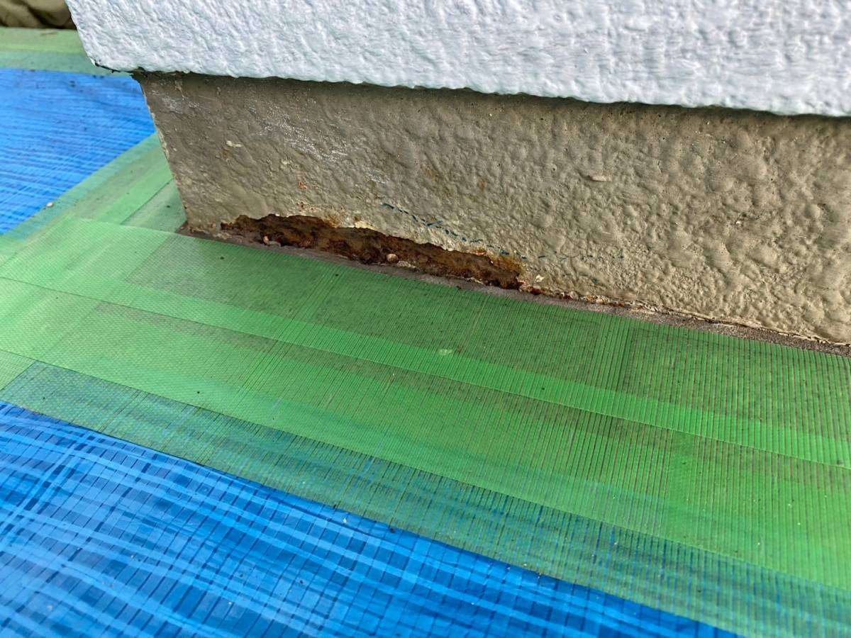 玄関の柱の腐食部のケレン・下塗り塗装作業も完了しています。
