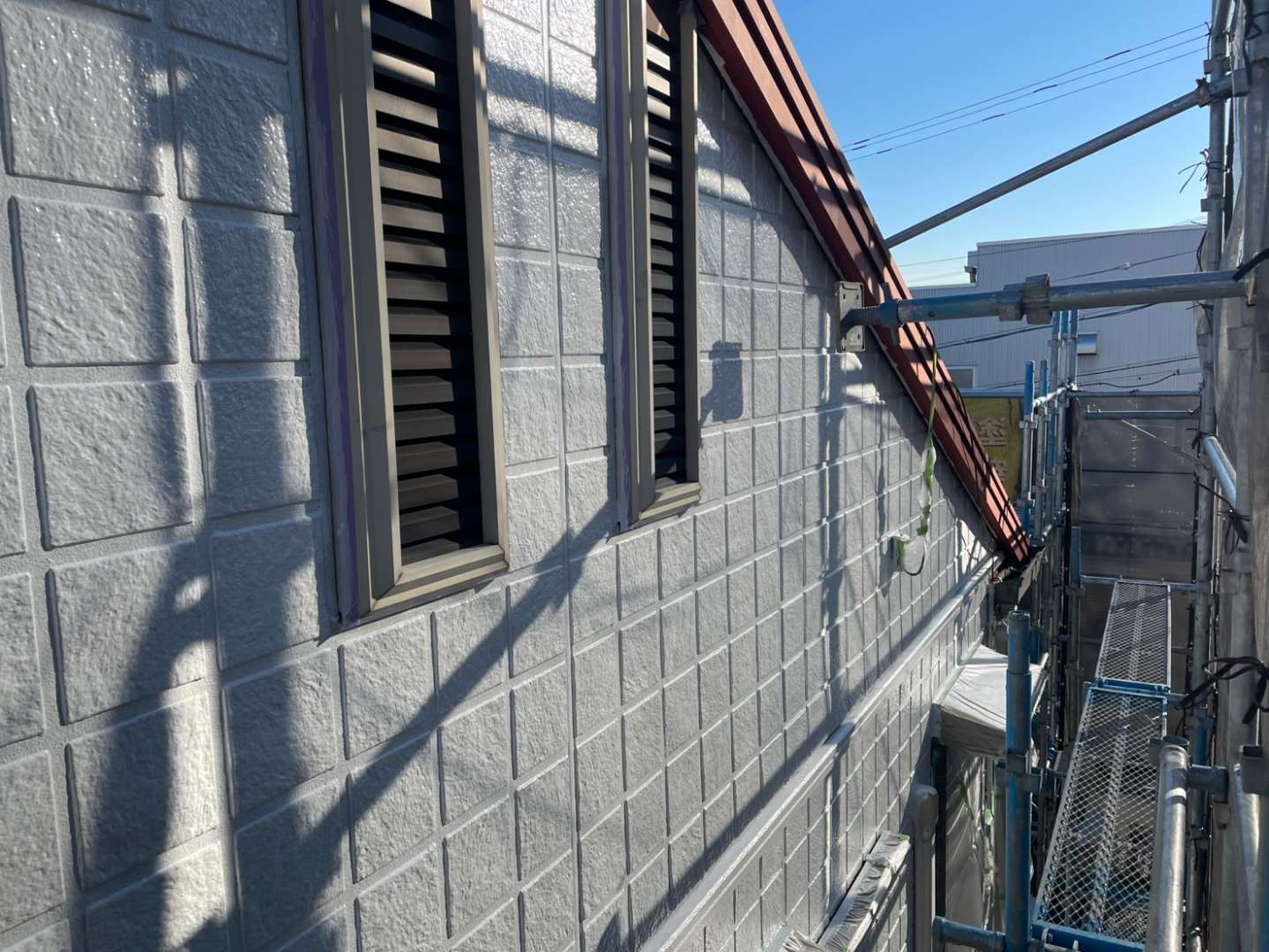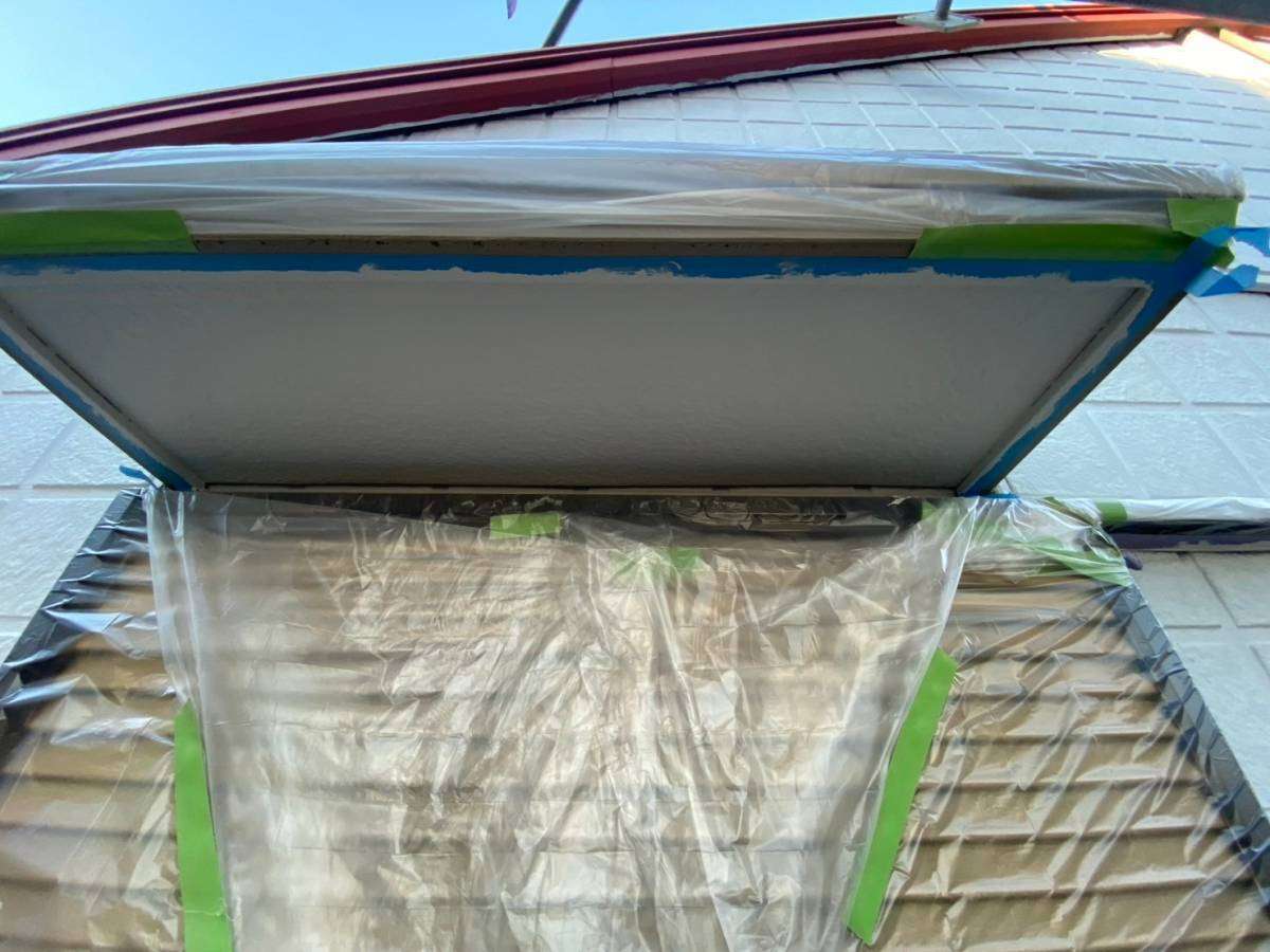今日の作業は、外壁と屋根の中塗り塗装作業と軒天2回目塗装作業予定です。