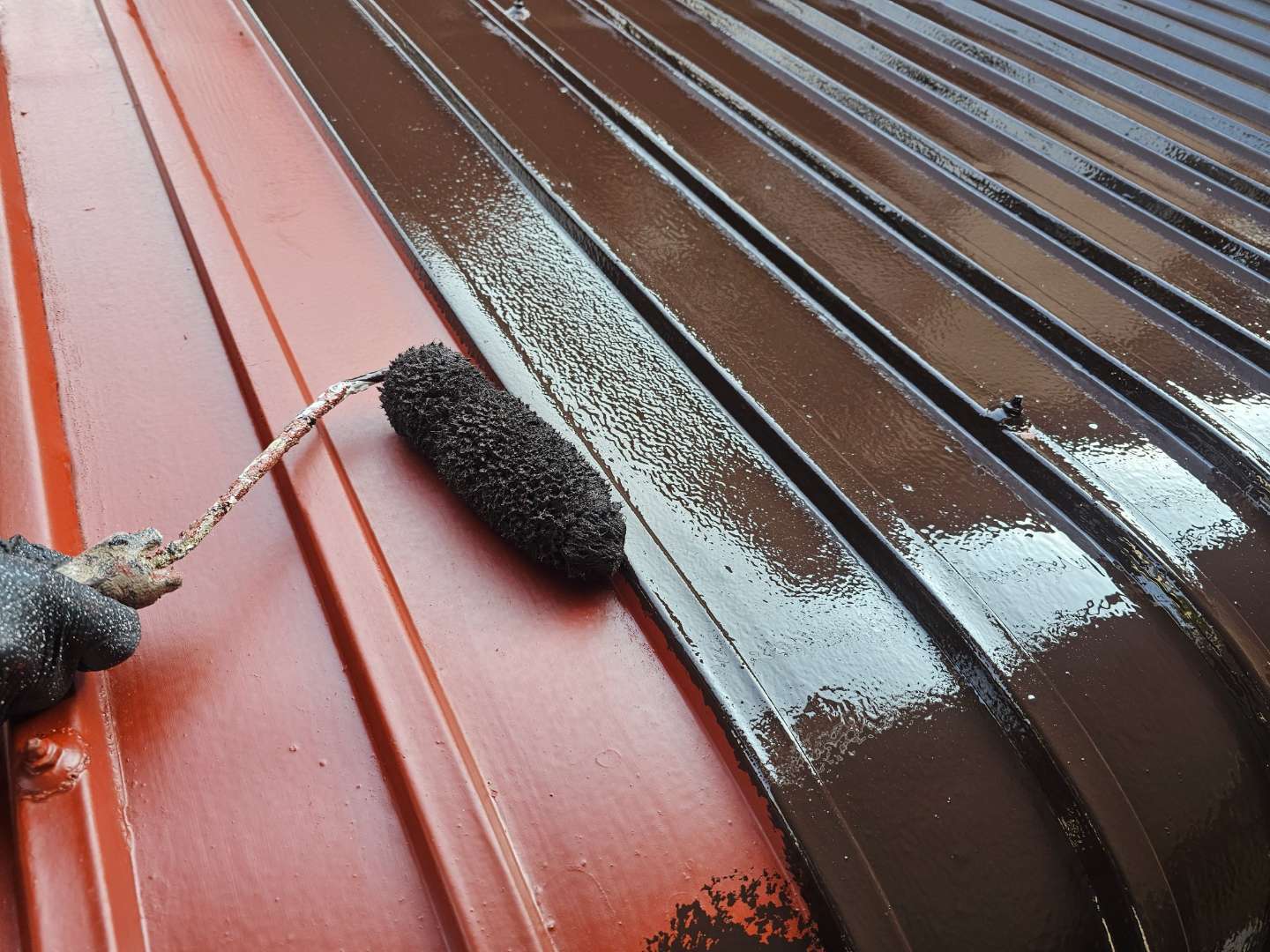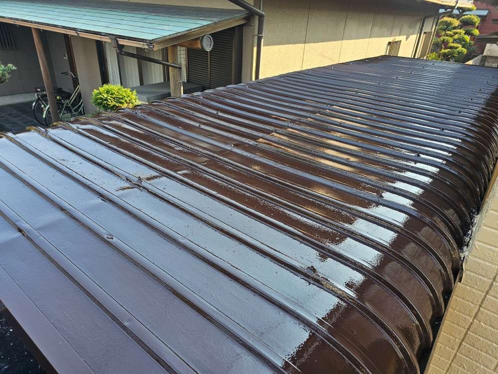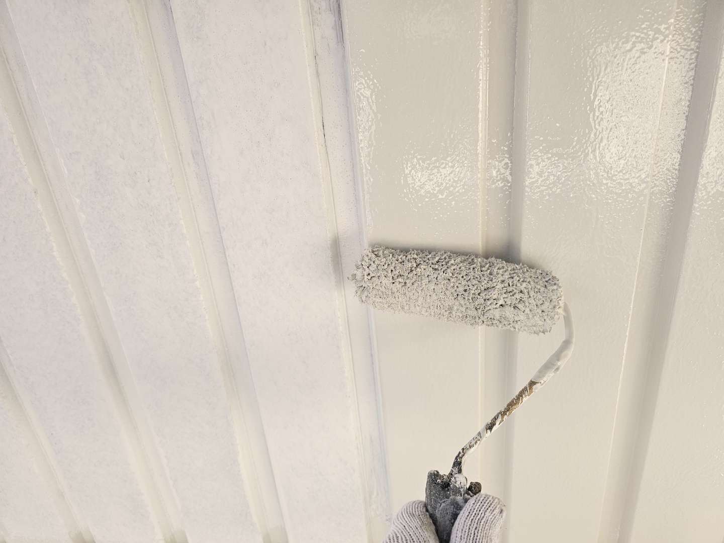 春日井市のU様邸の昨日の作業内容は、駐輪場塗装(サビ止め・中塗り・上塗り)作業を