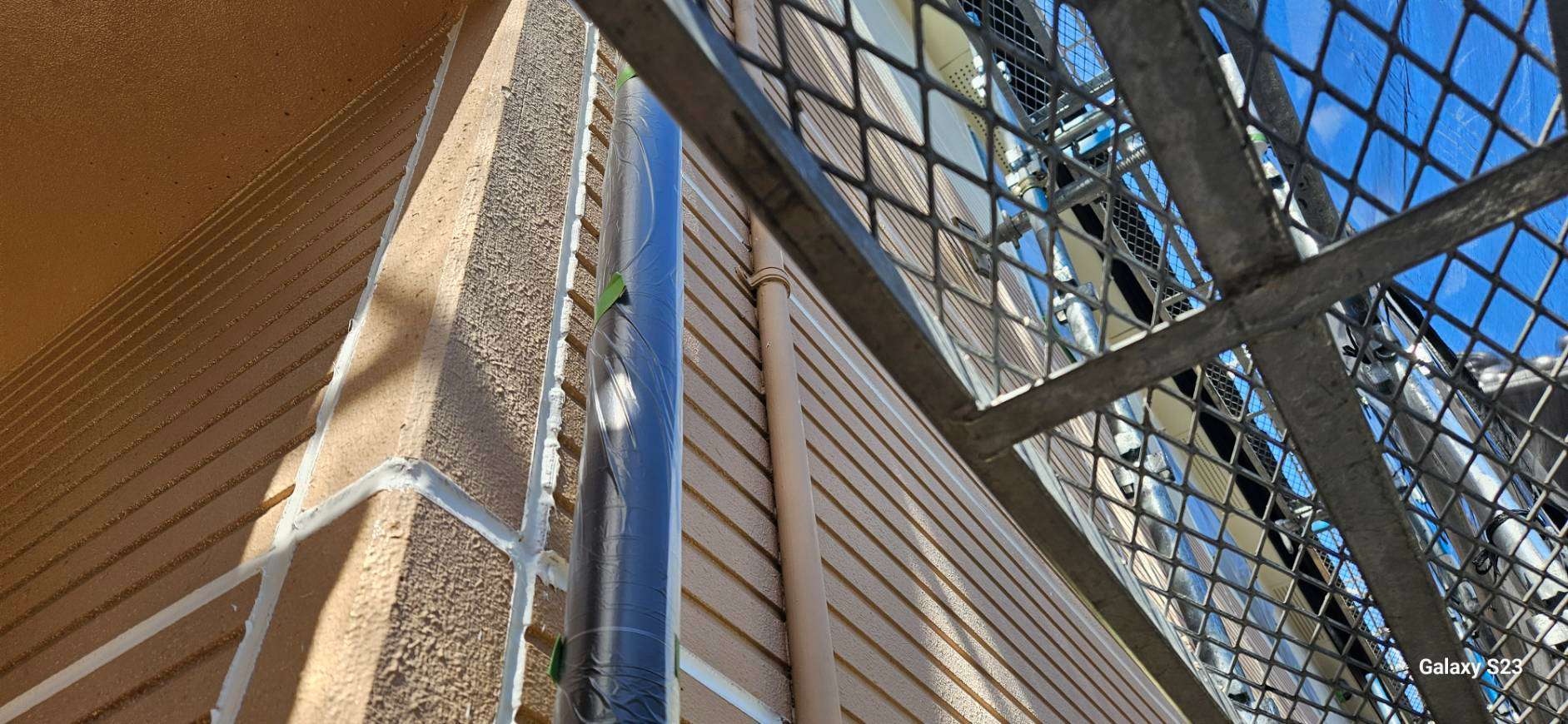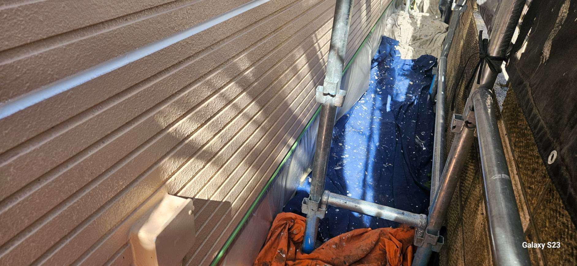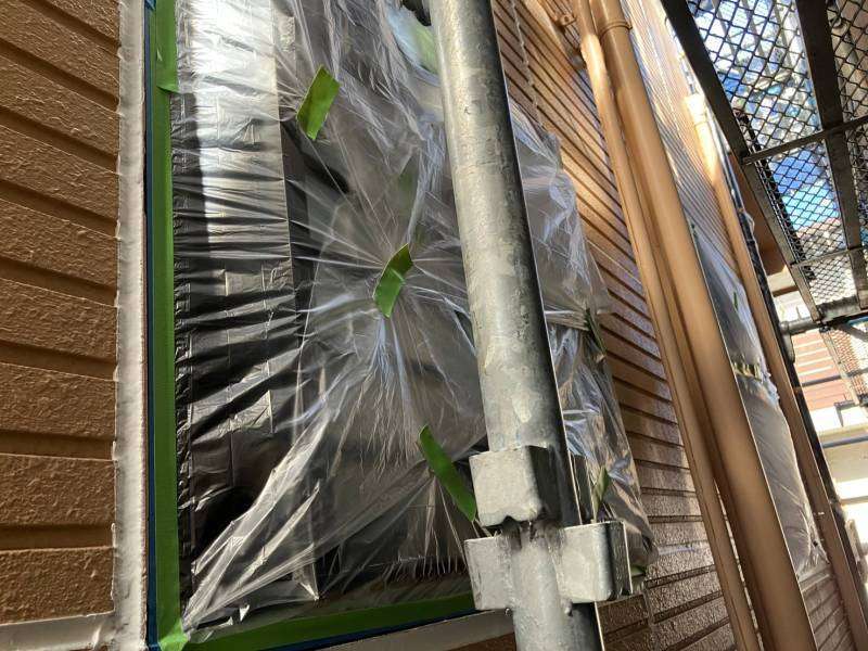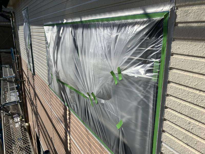 今日のB様邸の作業は、昨日のシーリング打替え部分の養生作業予定です。