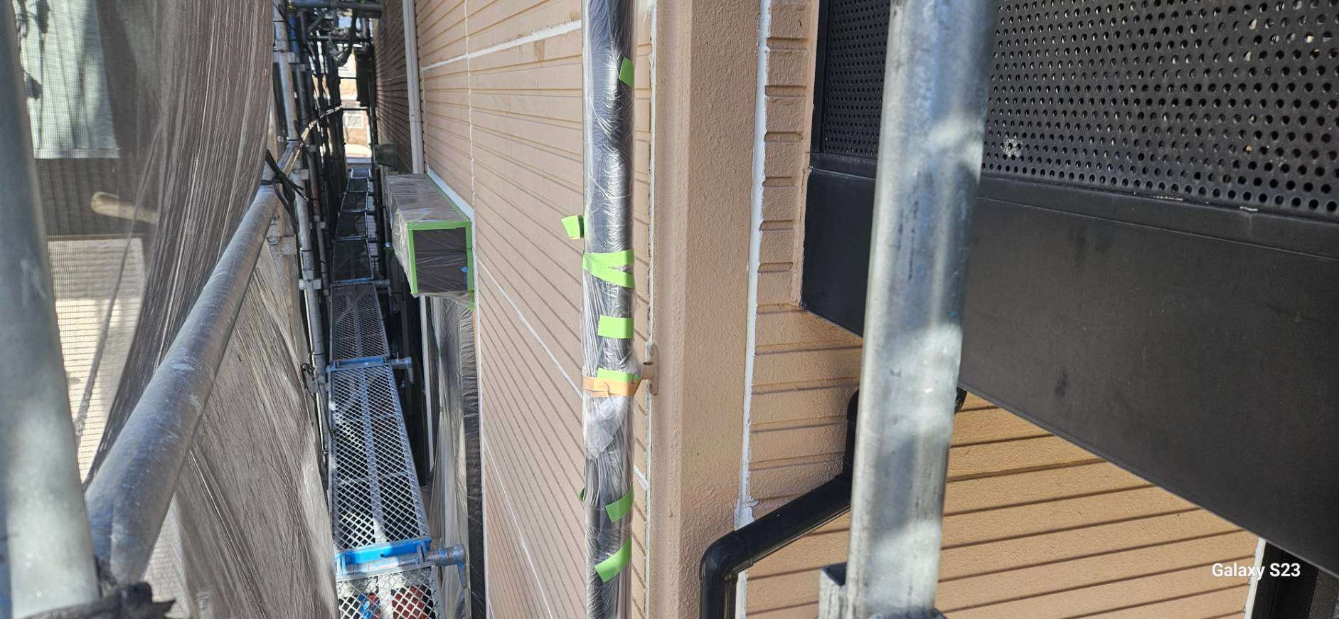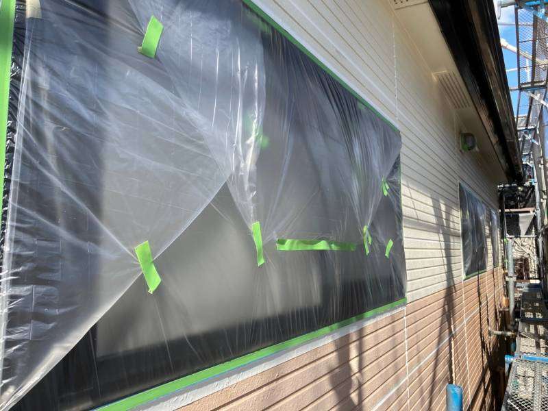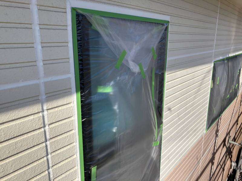 岩倉市B様邸の昨日の作業内容は、コーキング(シーリング)作業と、非塗装部分の養生作業を行っています。