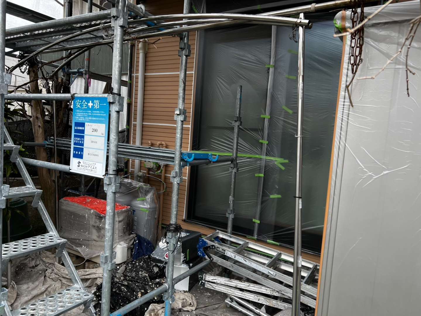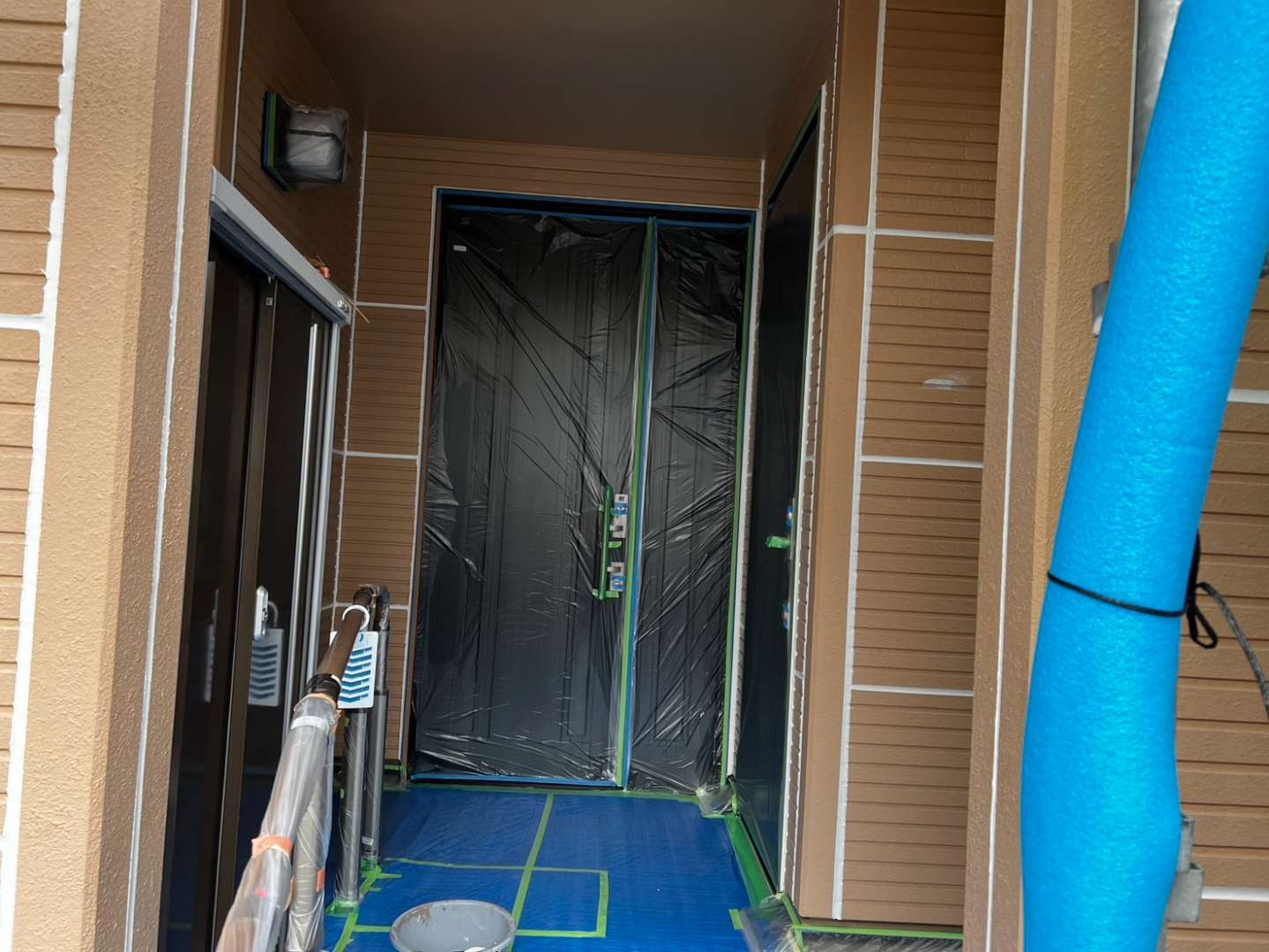 昨日のB様邸の作業内容は、引き続き養生作業を行っていました。