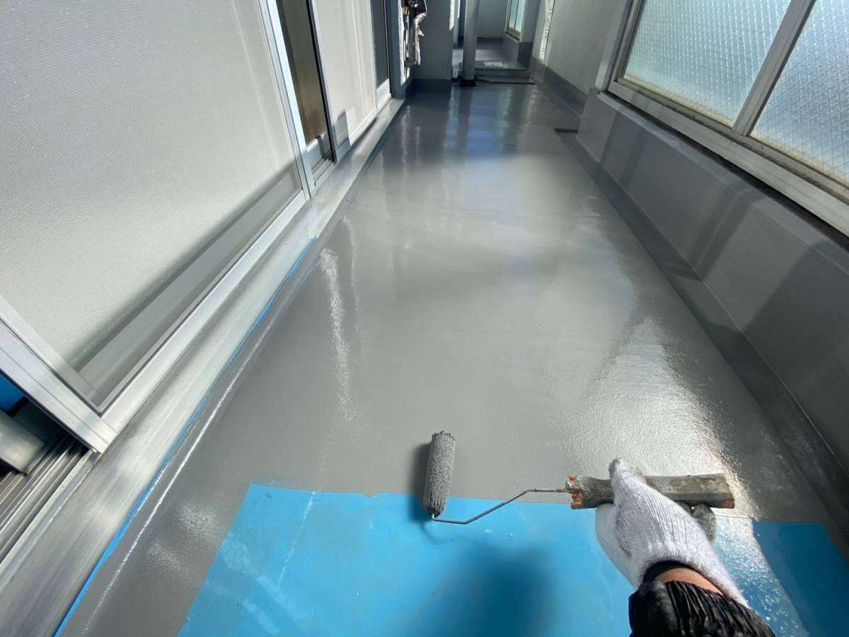 ベランダトップコート塗装作業